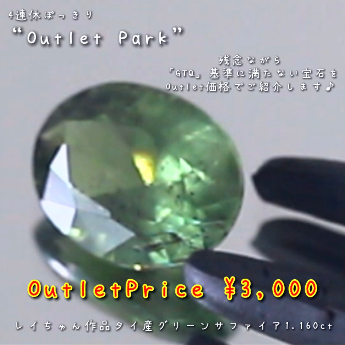 こちらは“OutletPark”💎タイ産グリーンサファイア1.160ct🔮残念ながら「GTQ」基準に満たない宝石を思い切った『OutletPrice』でご紹介です❗️