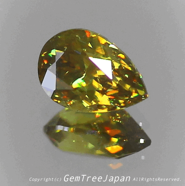 光を受けると、丁寧に仕上げられたペアシェイプの先端まで、