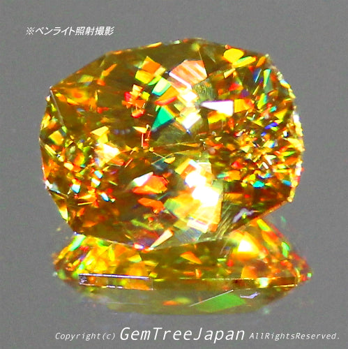 ファンシーカットでありながら、万華鏡レベルの凄いファイアーが全面に飛び交う姿は、「これぞスフェーン!」と思っていただけることでしょう。