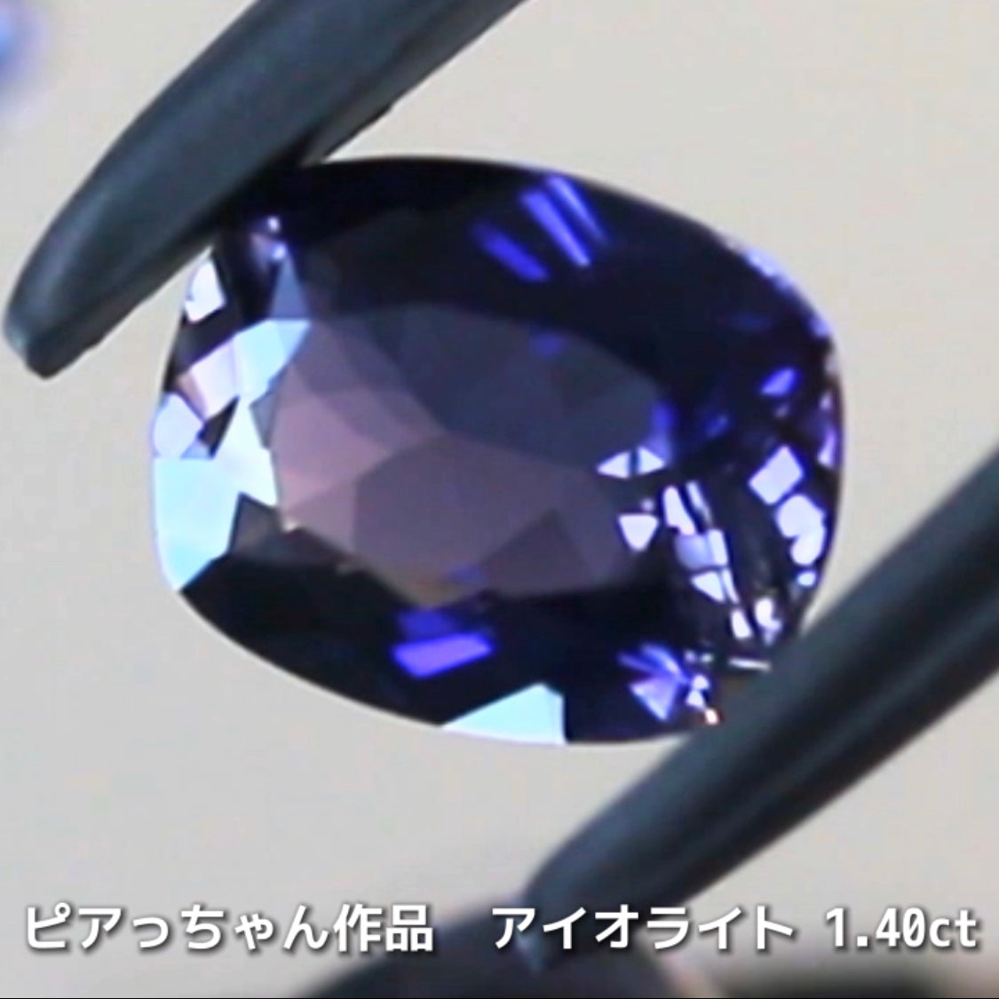 当店自慢のメインカッター「ピアっちゃん」が仕上げた端正なクッションのアイオライト。
