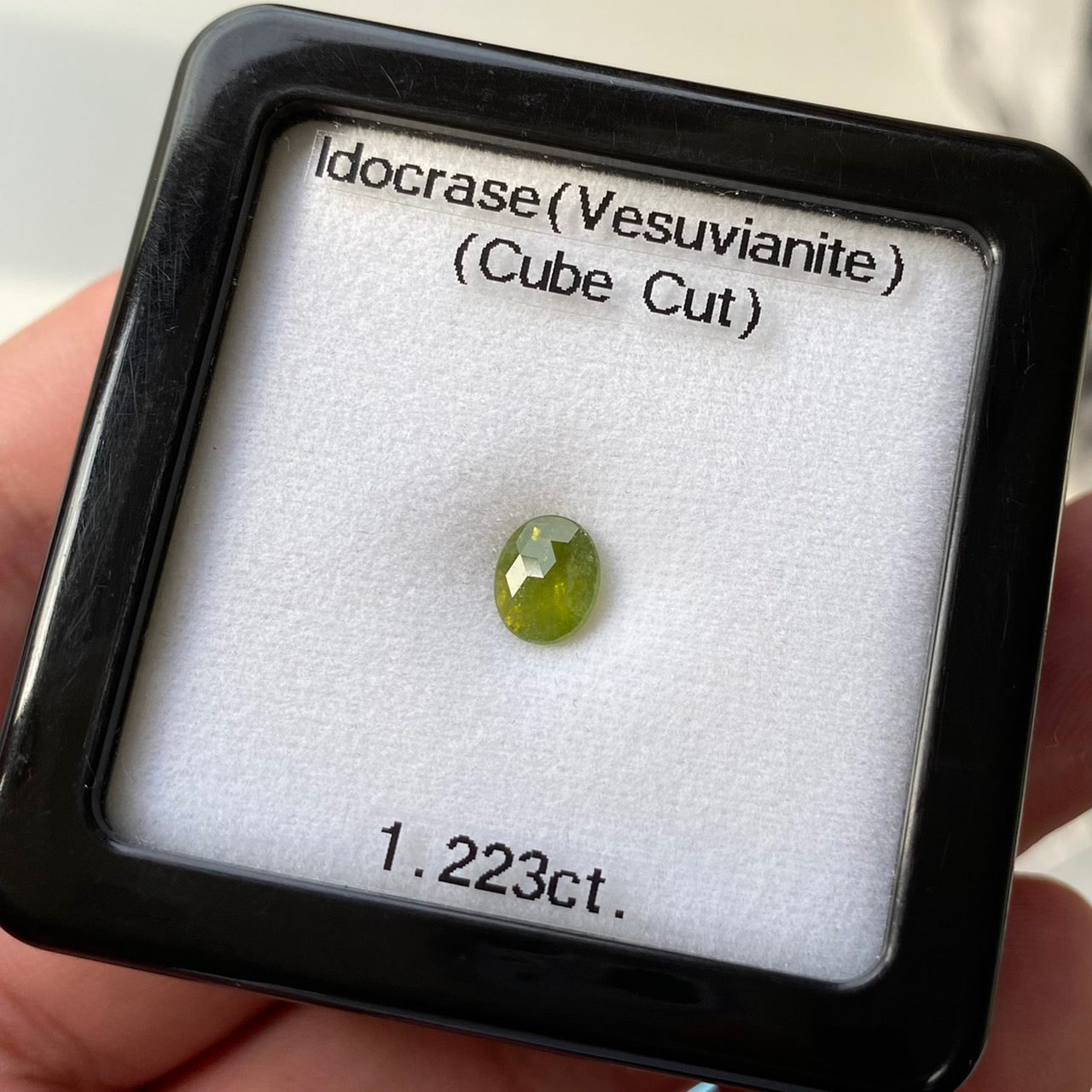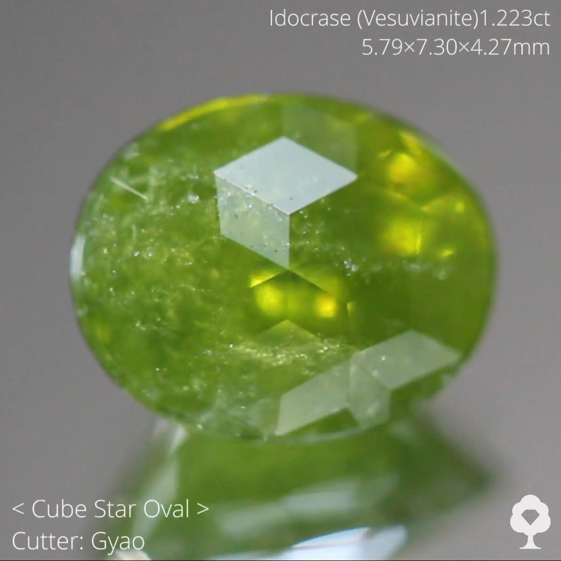 現在世界でただ1人、バンコクにいる独創的天才カッター"ゲオちゃん"が生み出せる、立方体の箱と中心に星が浮き上がる【キューブスターカット】ですが、今回はレストーンであるアイドクレース(ベスビアナイト)のキューブスターをご紹介いたします。