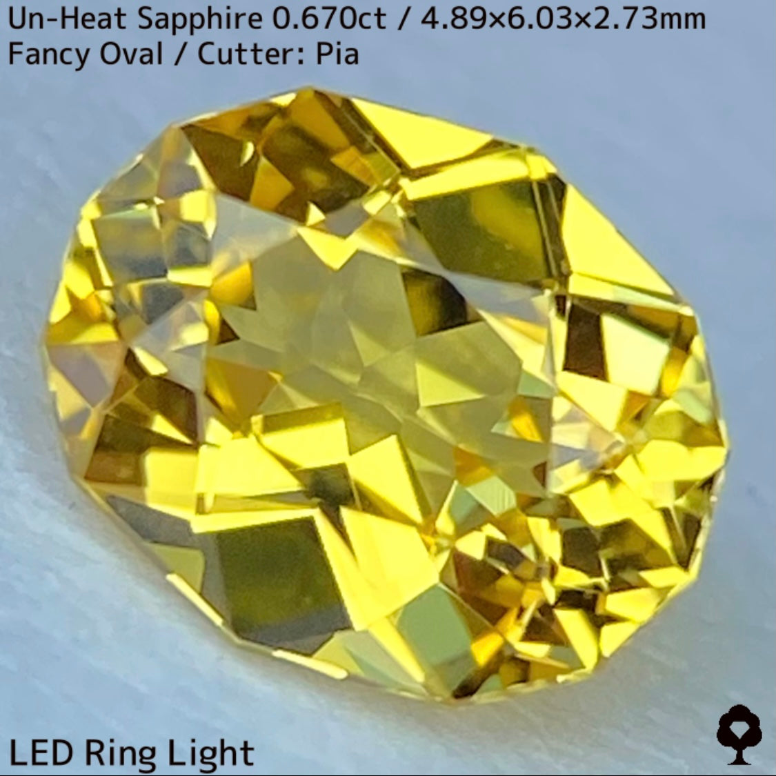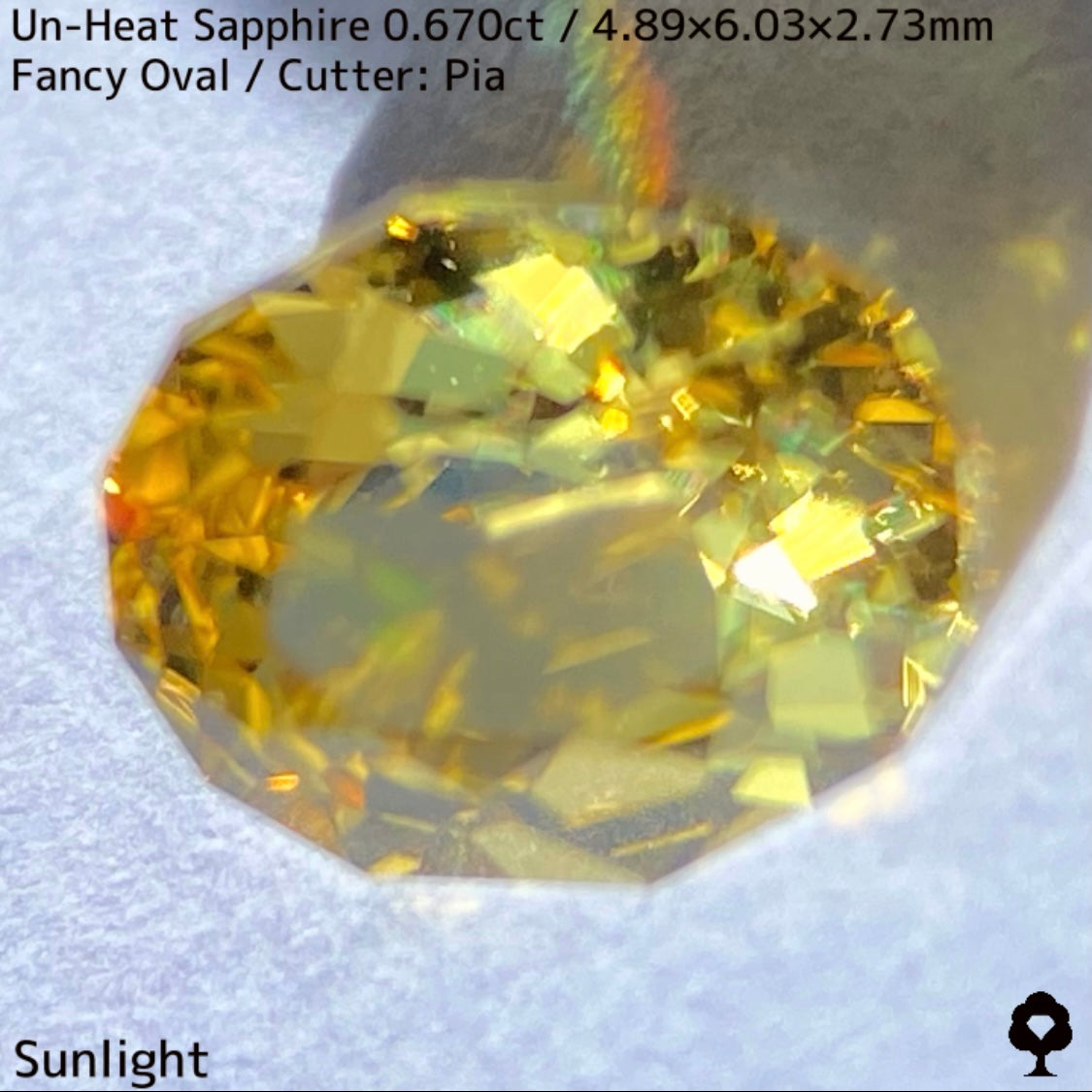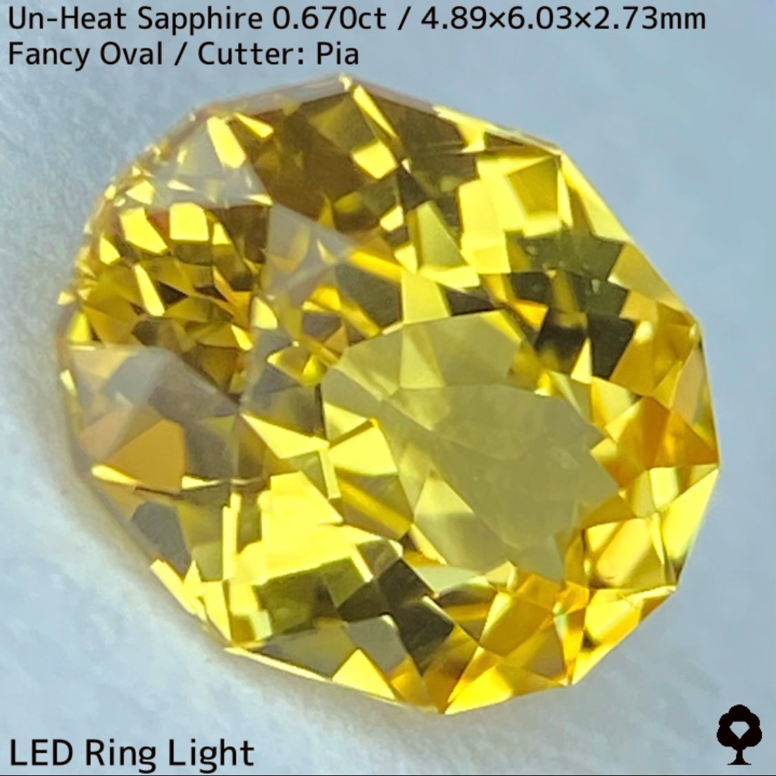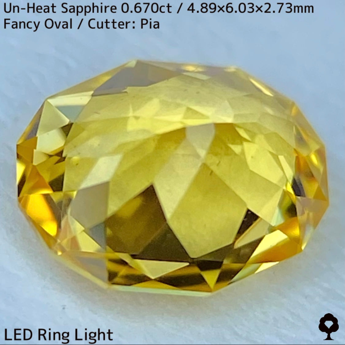 カンチャナブリー産非加熱イエローサファイア0.670ct★ファイアーチラつく煌めき抜群の明るめ非加熱イエロー