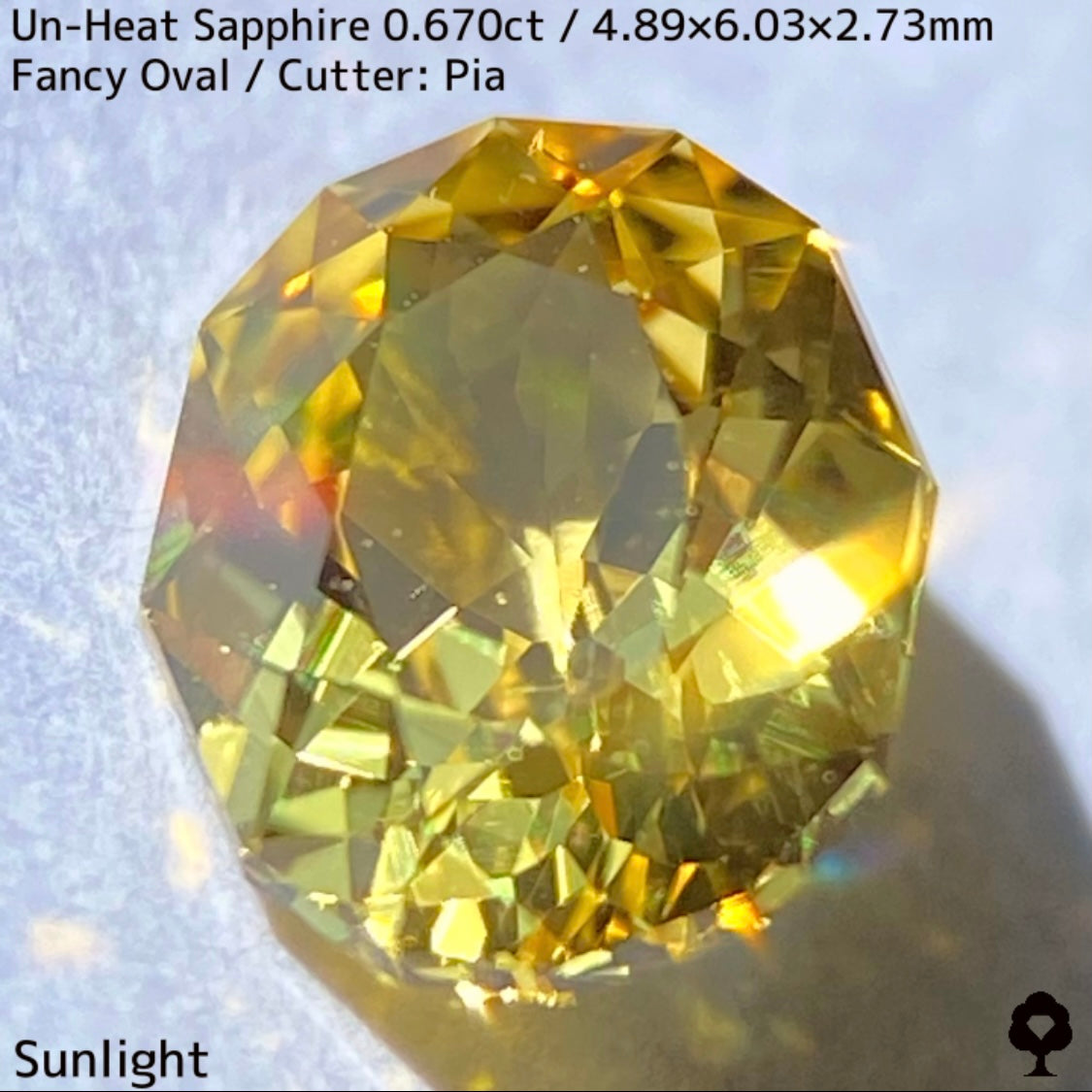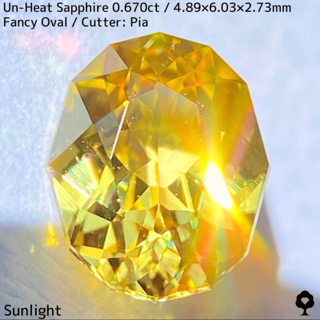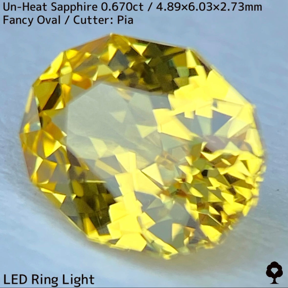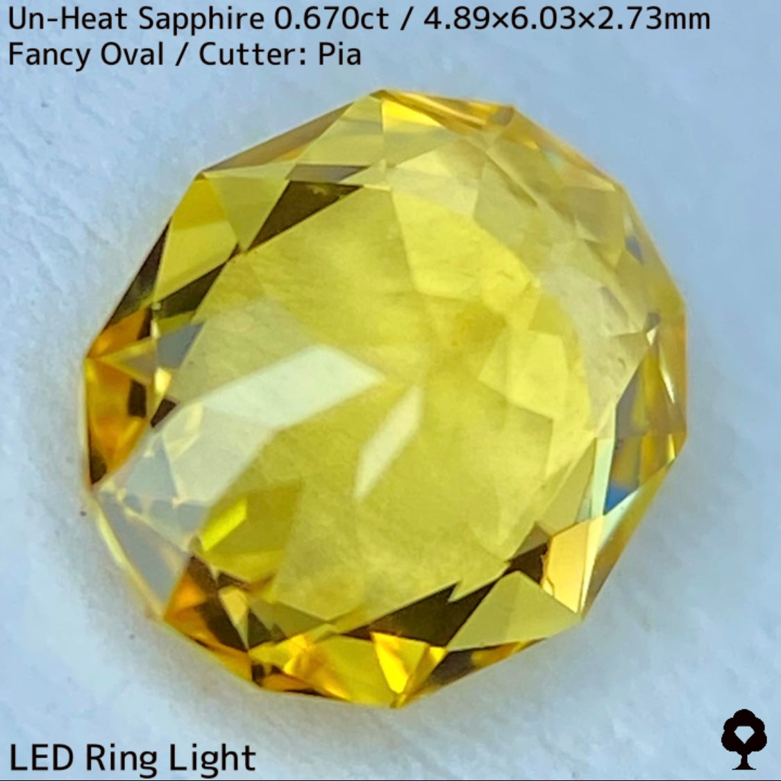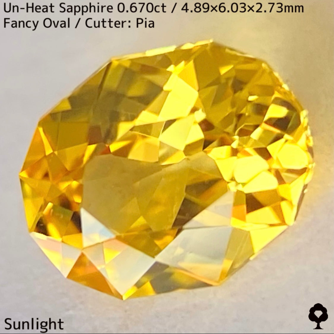 カンチャナブリー産非加熱イエローサファイア0.670ct★ファイアーチラつく煌めき抜群の明るめ非加熱イエロー