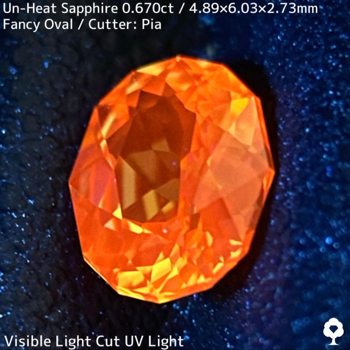明るめのイエローの内包物の無い美しい結晶の非加熱サファイアです。