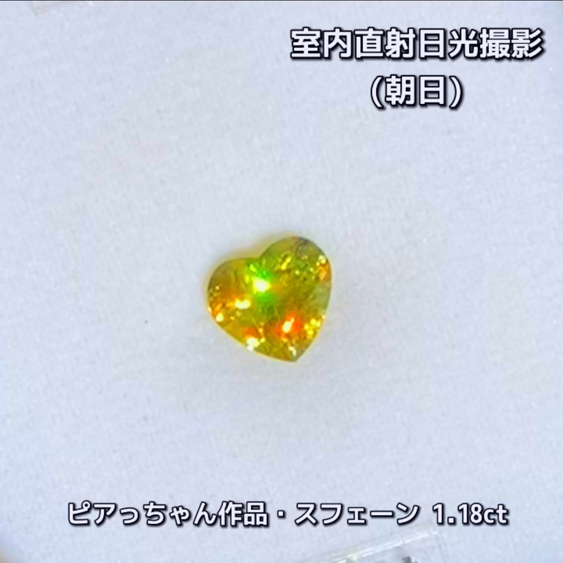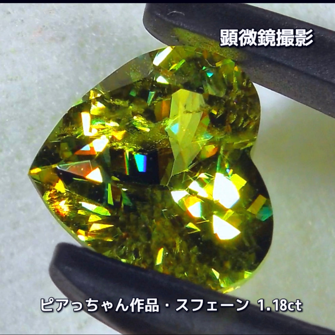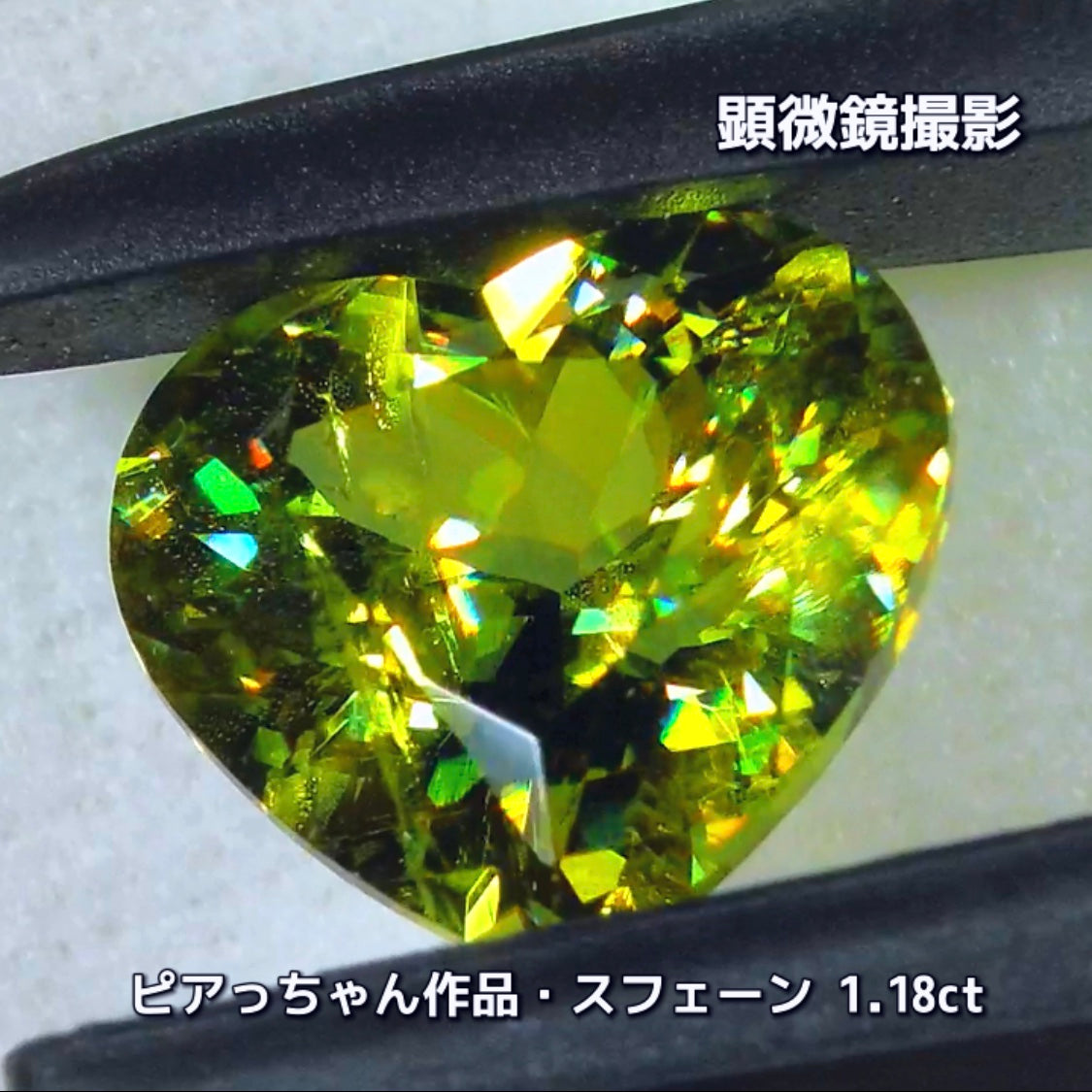 綺麗なグリーンのスフェーンは、ゴールドやブラウン系のものと比べると、どうしてもファイアーが弱く感じてしまいますが、こちらのスフェーンはグリーンの発色も良く、そしてファイアーが強いところがまた魅力です❗️