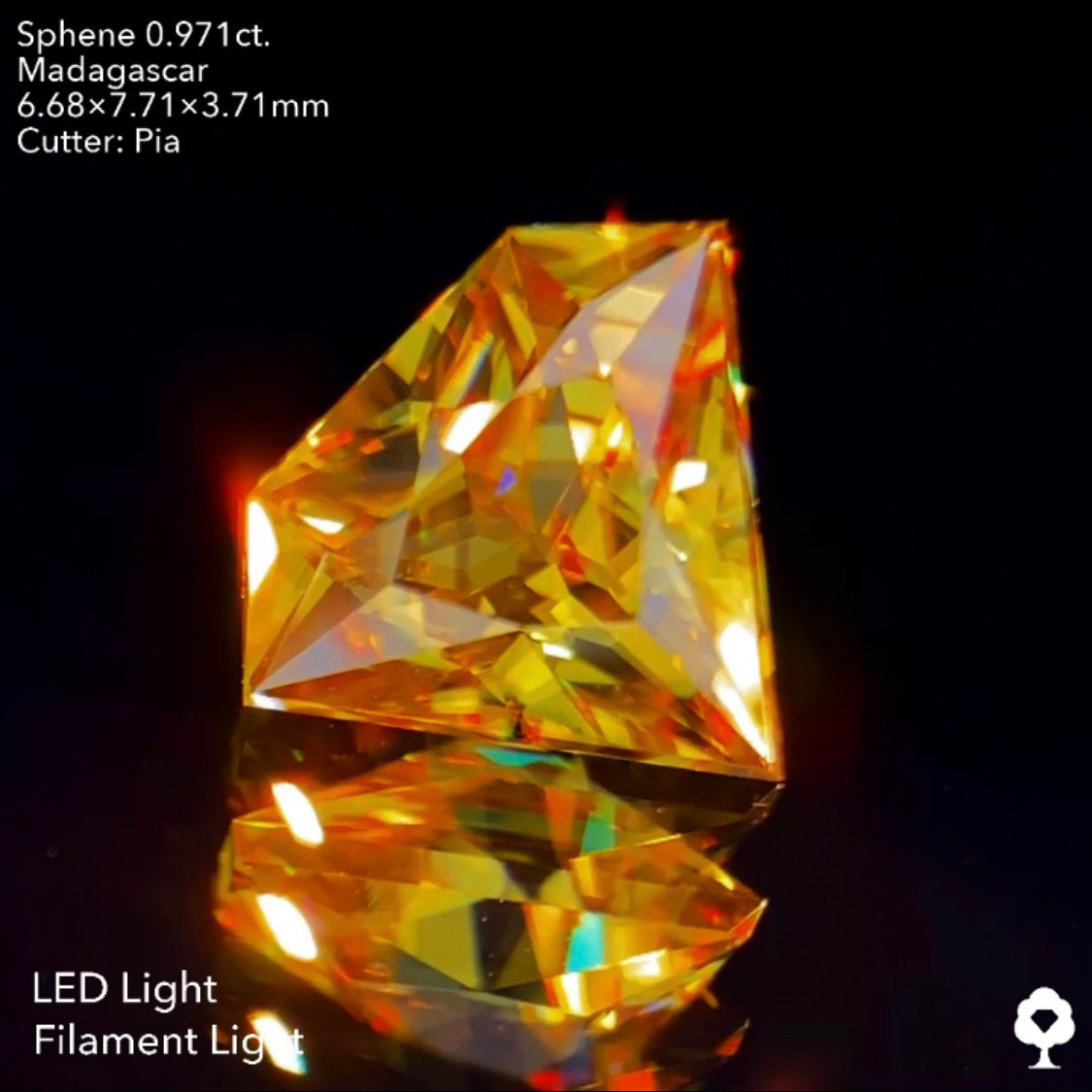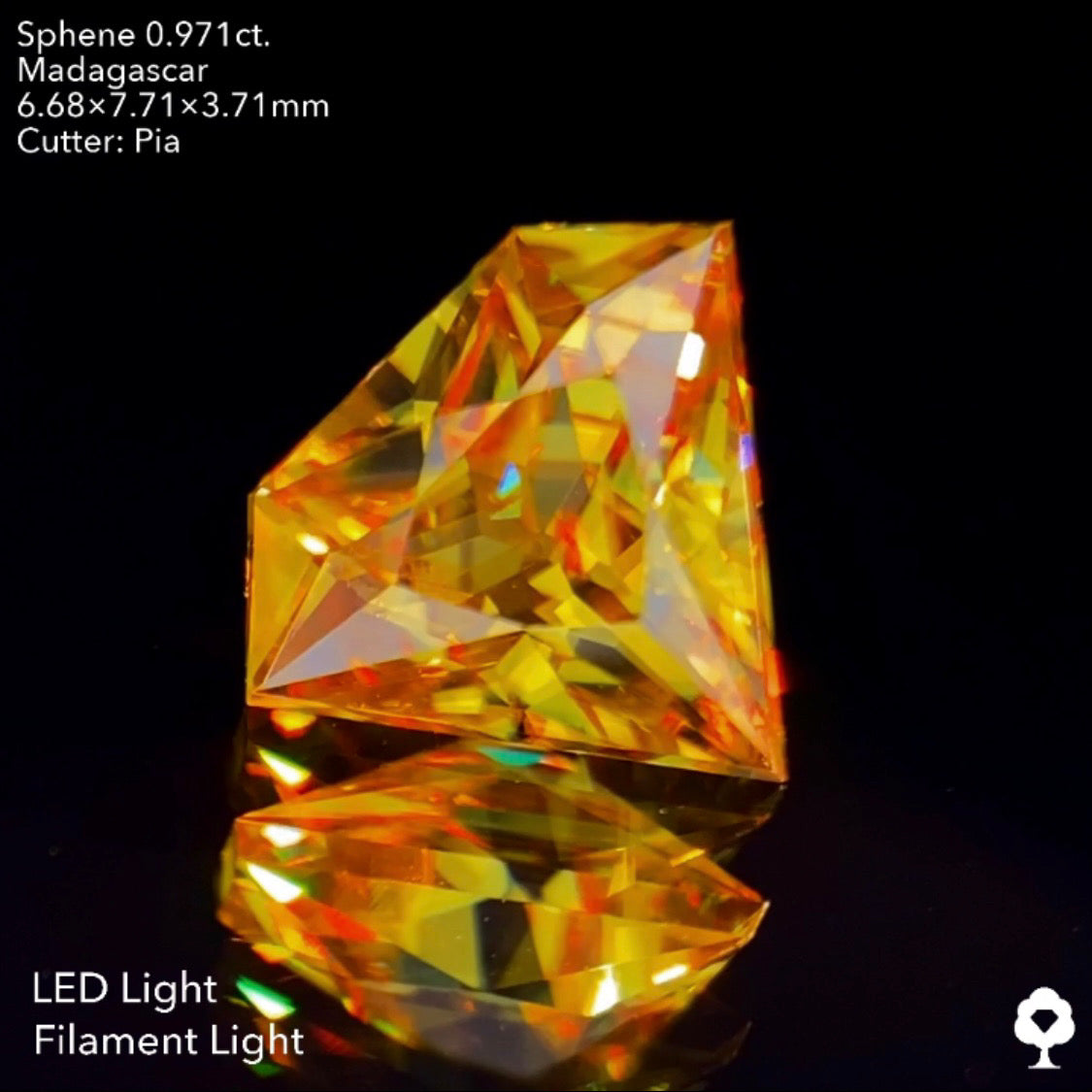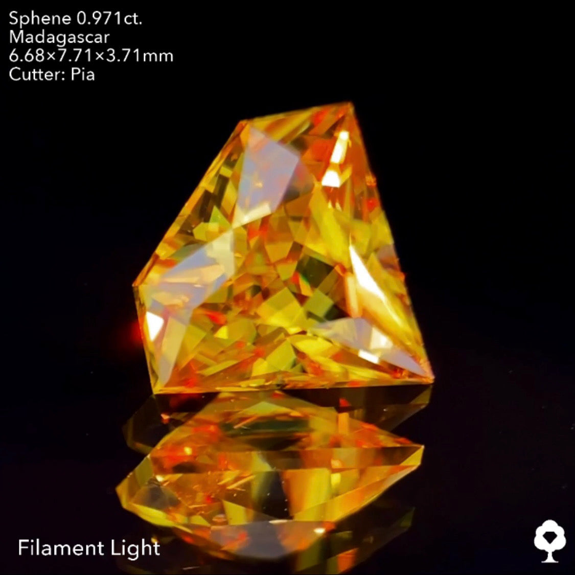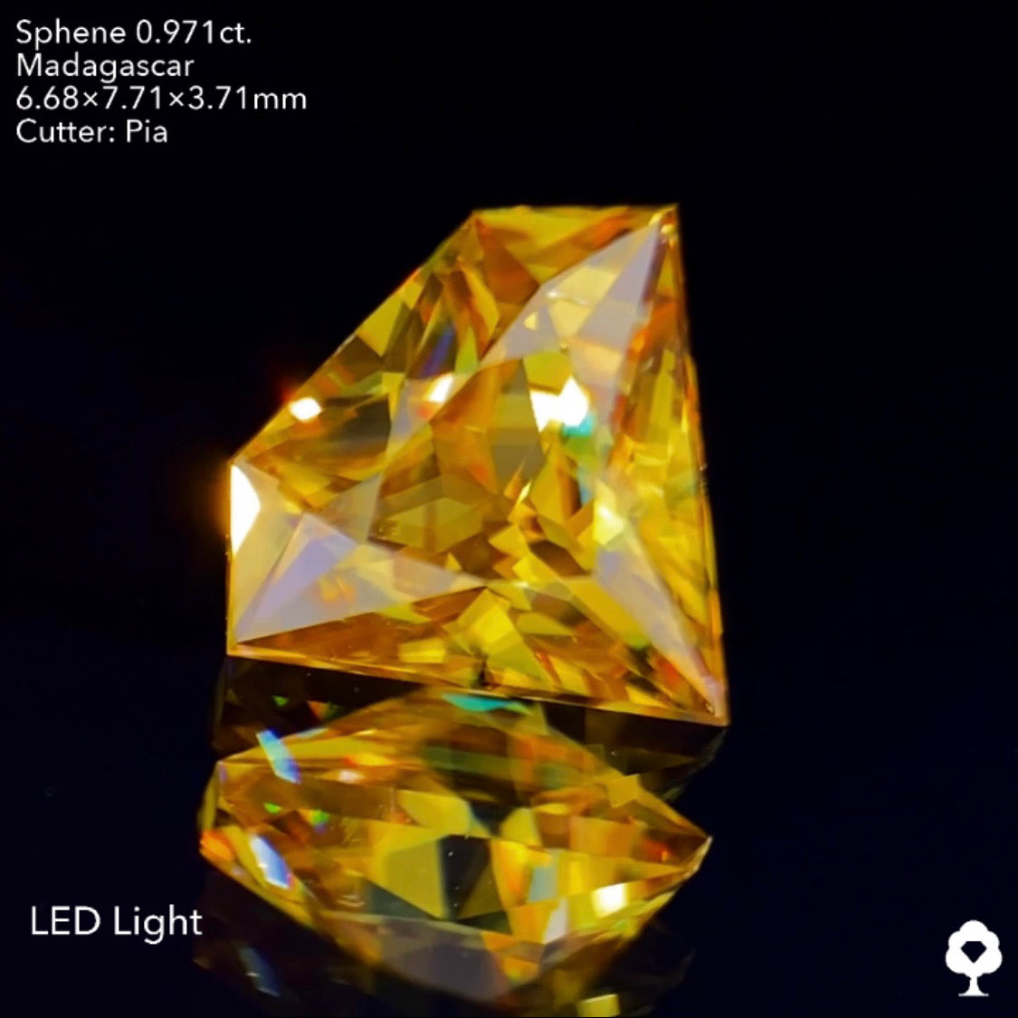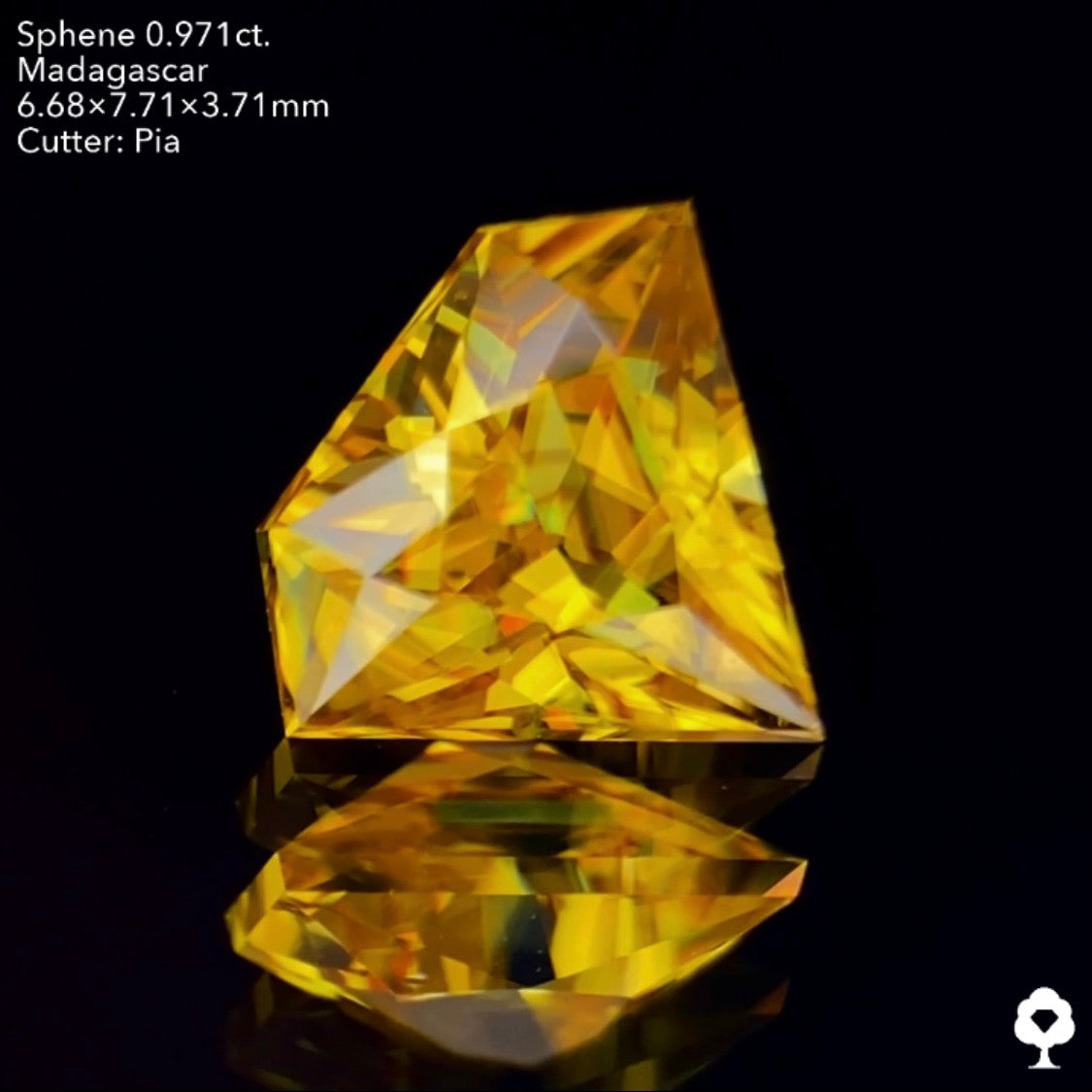 コレぞマダガスカルゴールドといえる煌めき抜群の宝石形★マダガスカルスフェーン0.971ct. ピアッちゃん作品