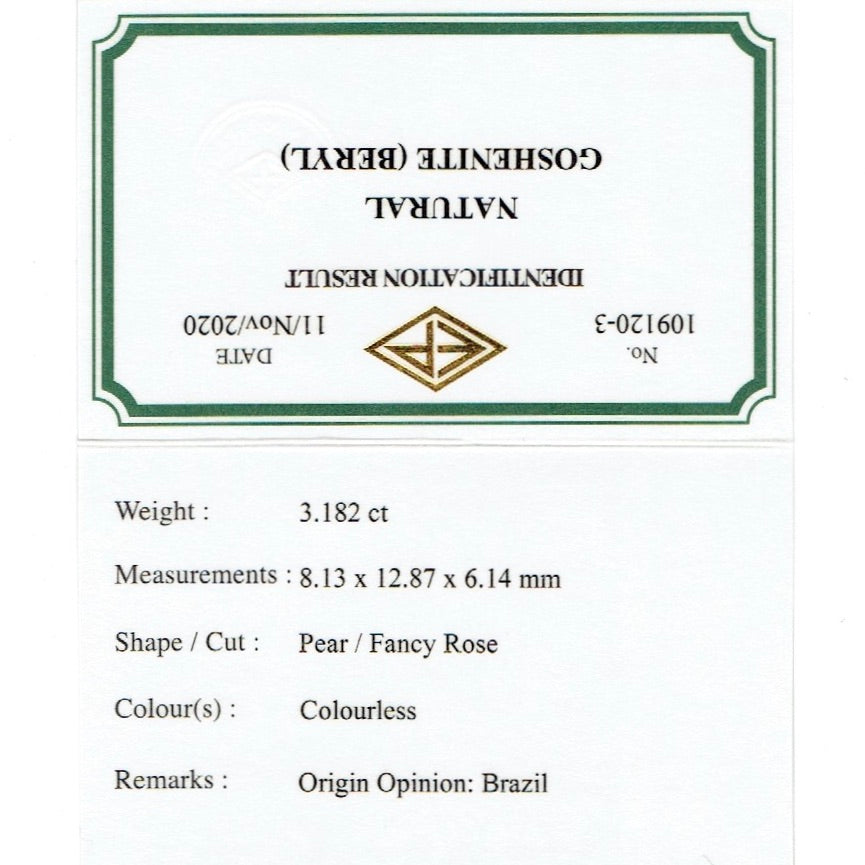 ゴッシェナイト(カラーレスベリル) 3.182ct✨11/17お昼Live配信商品⚡️ピアっちゃん作品💎✨