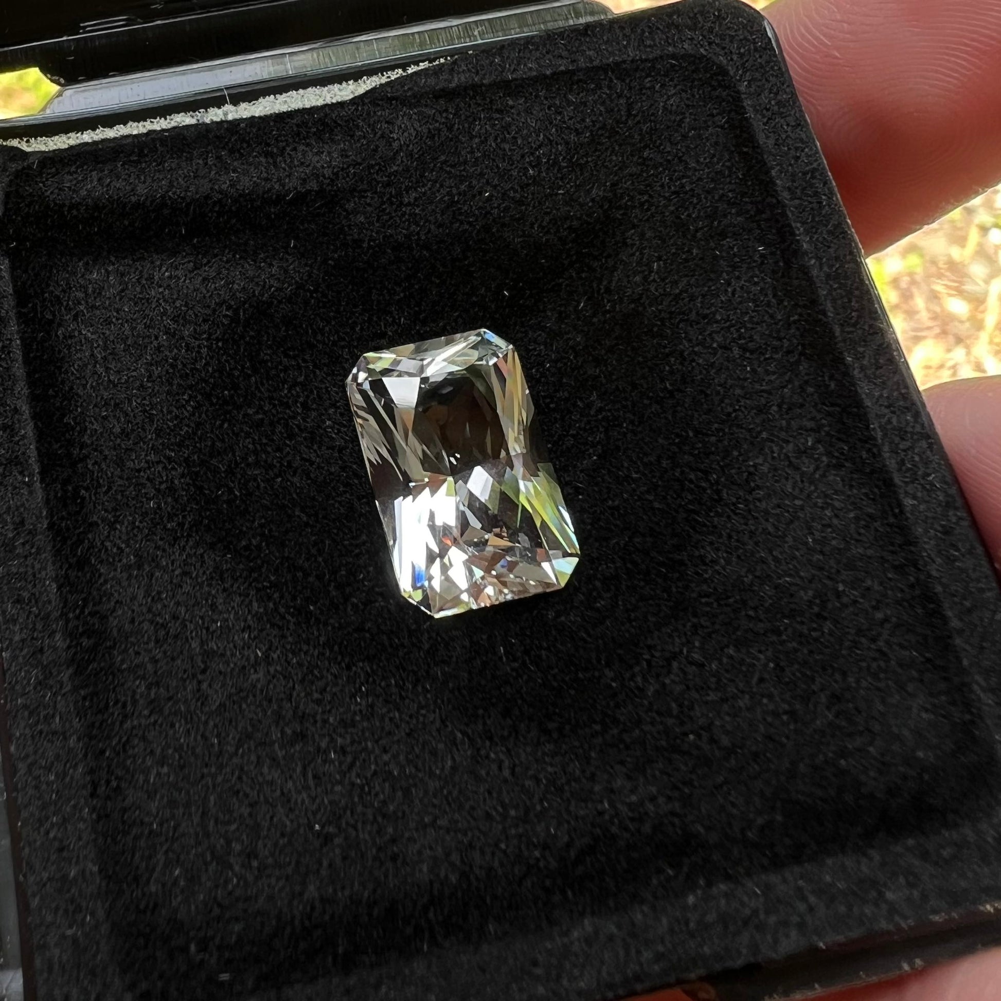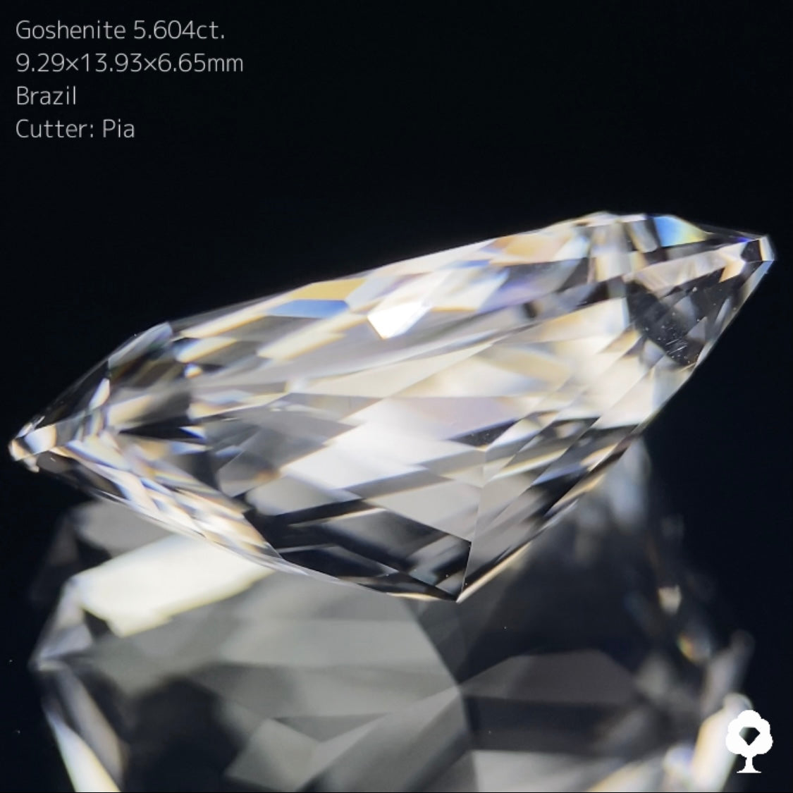 GTJメインカッターの【ピアッちゃん】の得意のカットのひとつ、パビリオン側にリボンの見える鋭い輝きを放つオクタゴンですが、コチラの作品は5ctアップの大きさを生かして、ファセット数が多く施され、シャープで複雑な強い煌めきを放ちます。