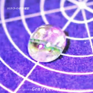 良く良く見ればカラーレスのガーネット(リューコガーネット)の中を、2本のグリーンのラインが走っているようにも見えるカボションです♬
