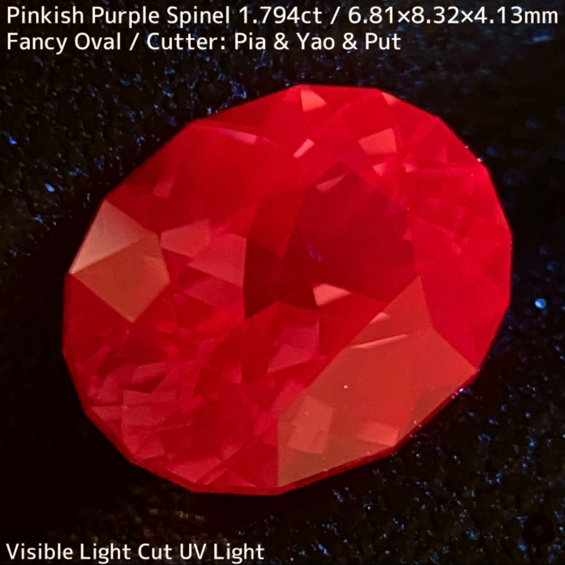 ピンクとパープルを基調とした深みのある地色から華やかで鮮やかなピンクの煌めきを放つ1.7ctとなかなかの大きさのスピネルで、肉眼で目立つ内包物のない美結晶です。