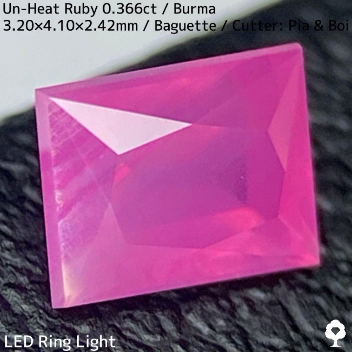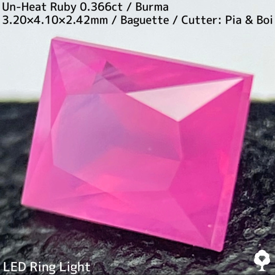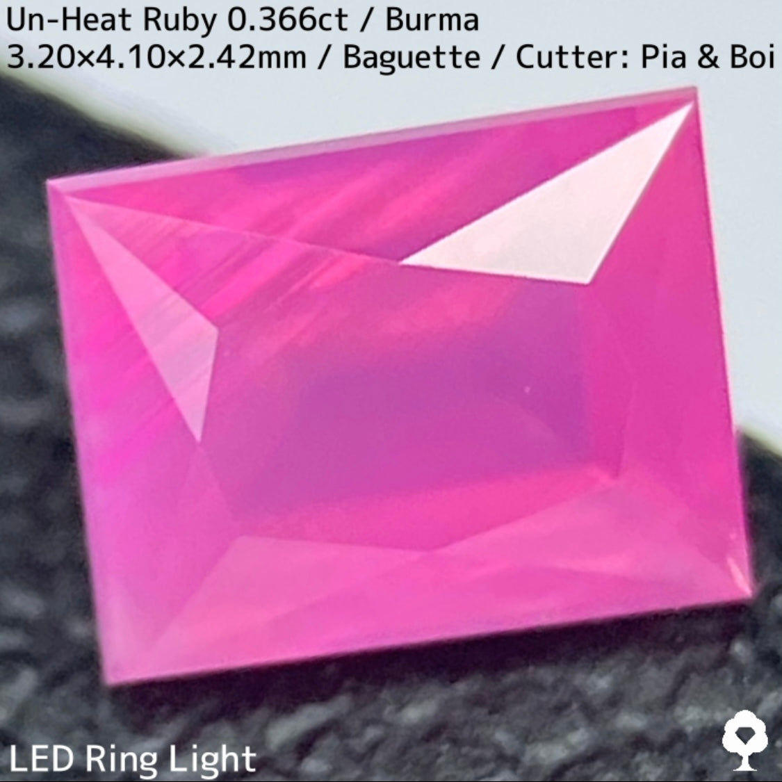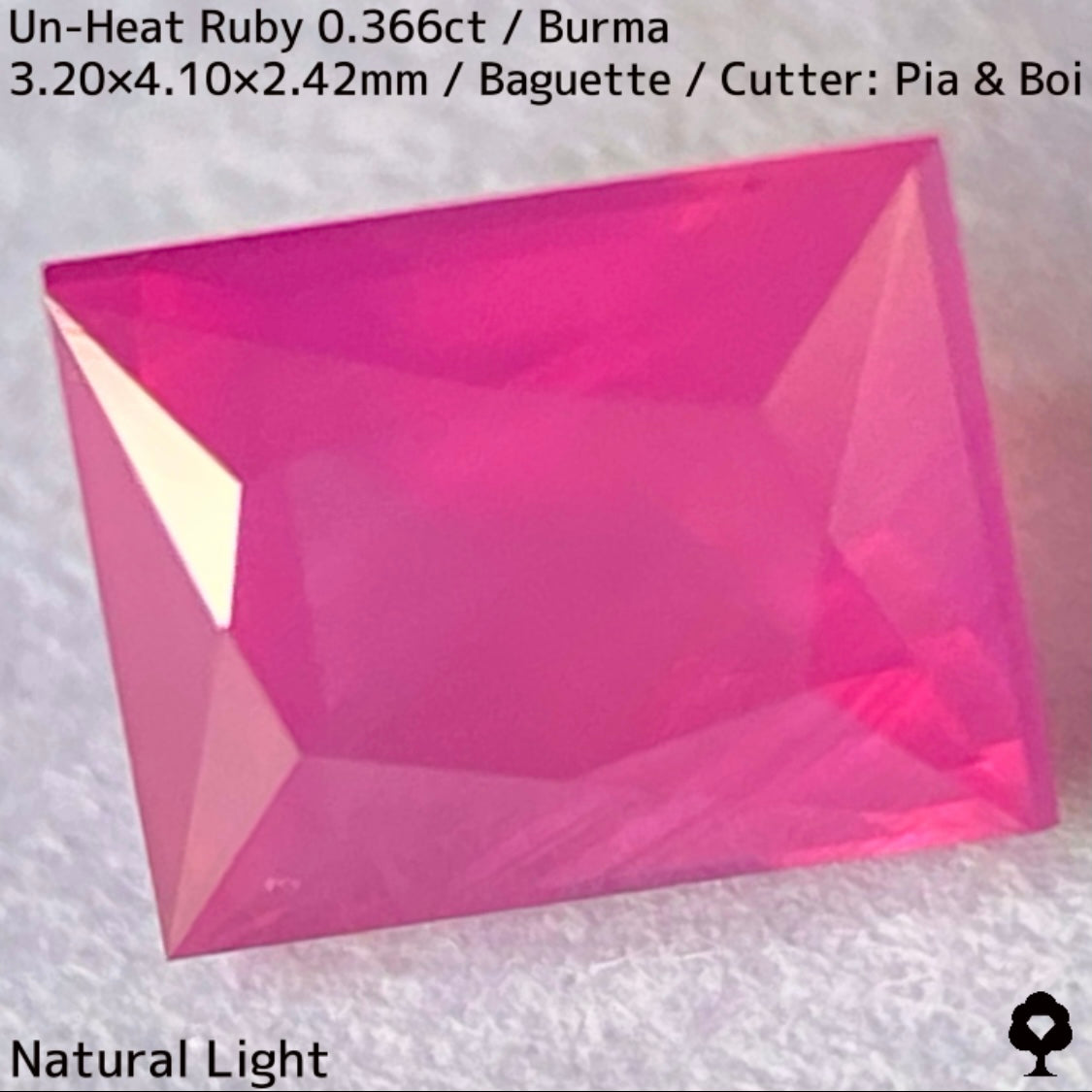 ビルマ産非加熱ルビー0.366ct★超可愛い柔らかなシルキーピンクのシャープなバゲット