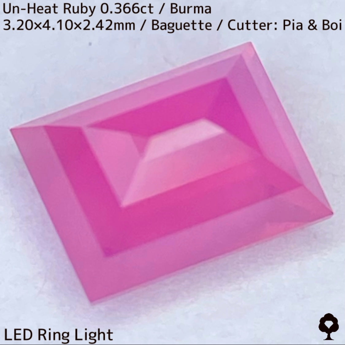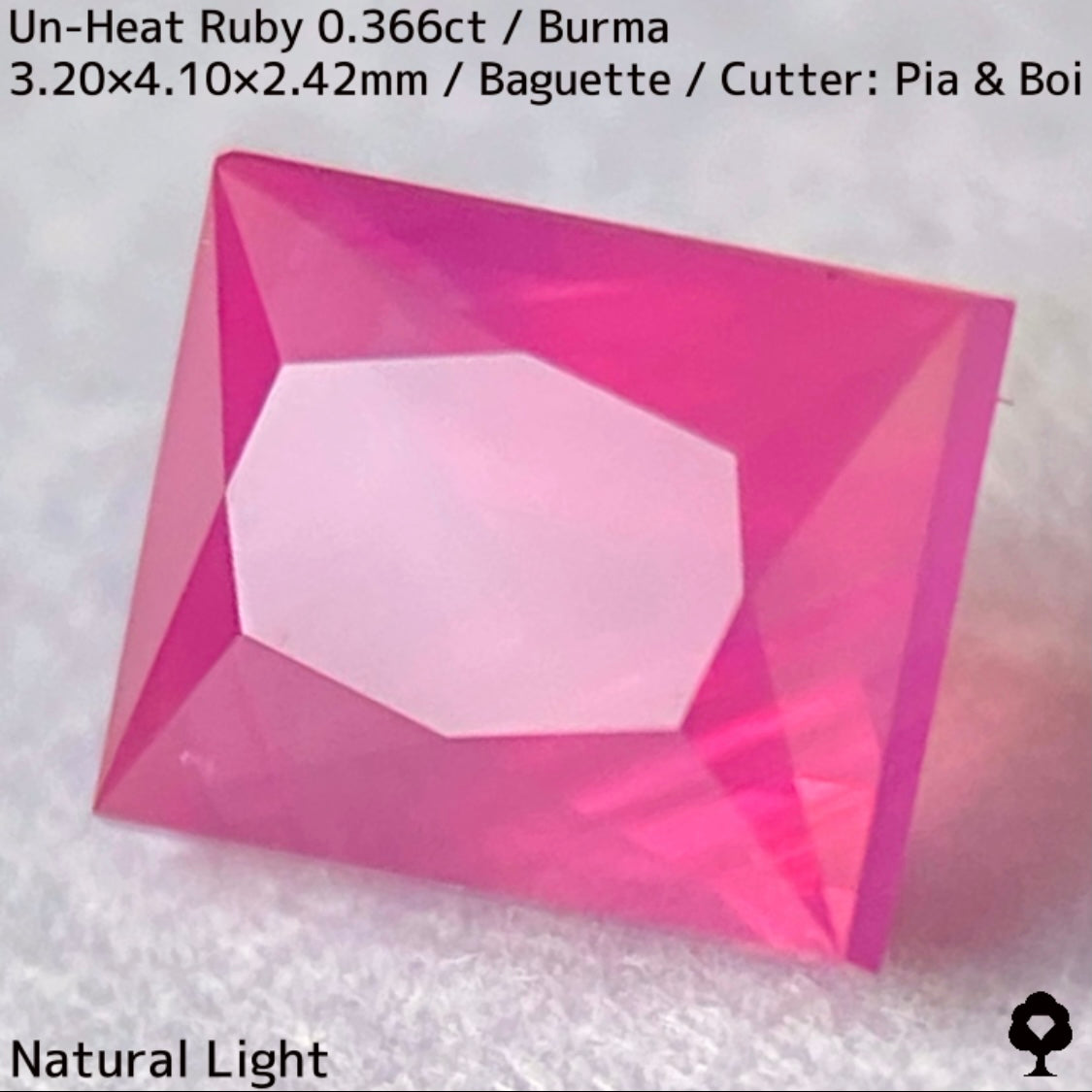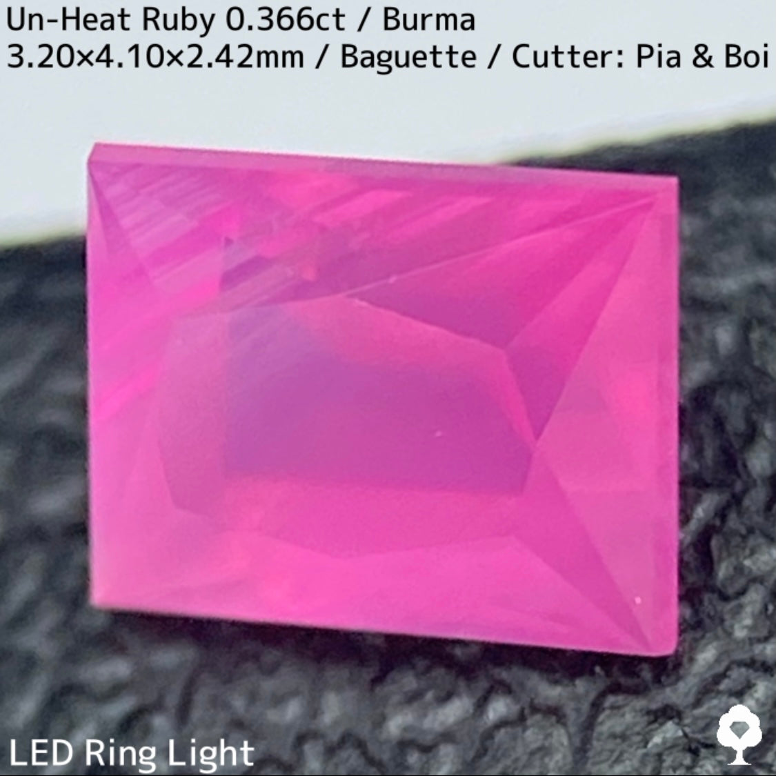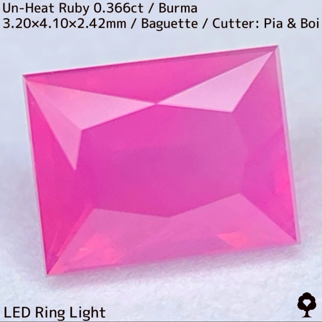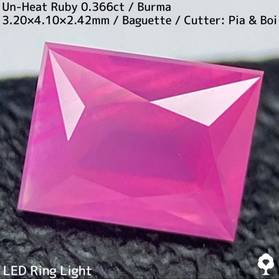 ビルマ産非加熱ルビー0.366ct★超可愛い柔らかなシルキーピンクのシャープなバゲット