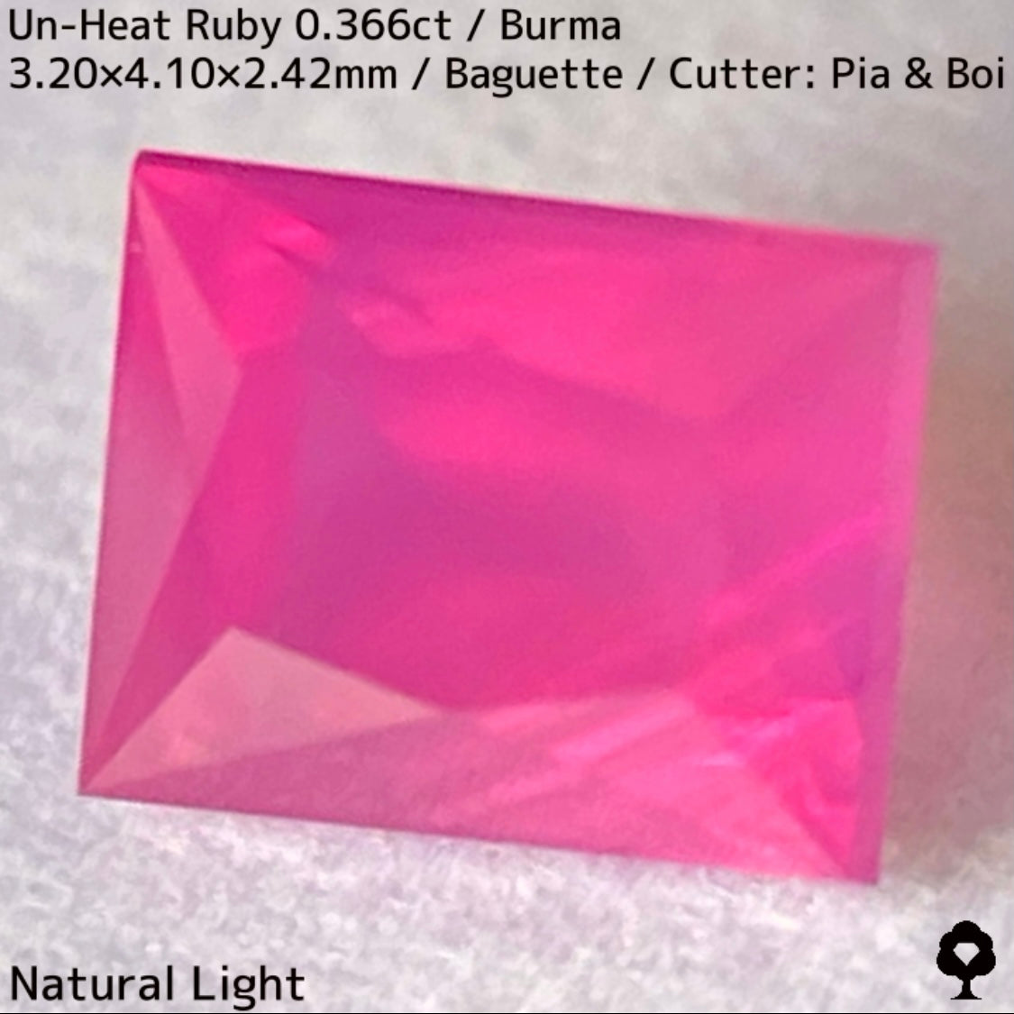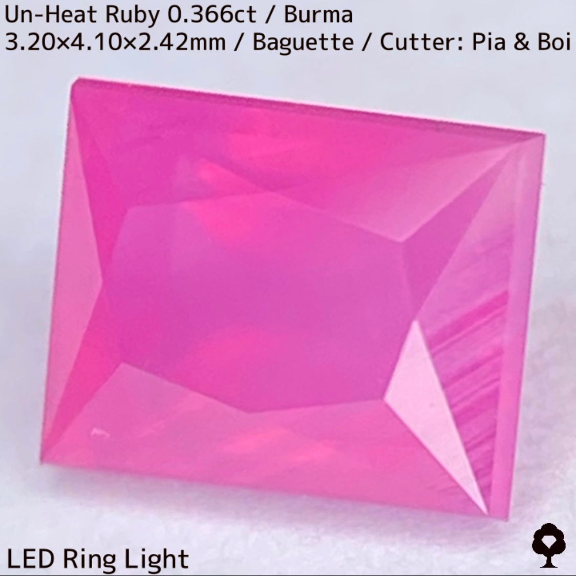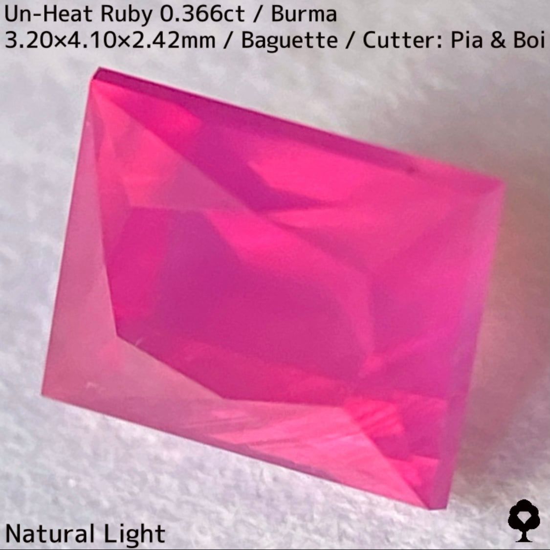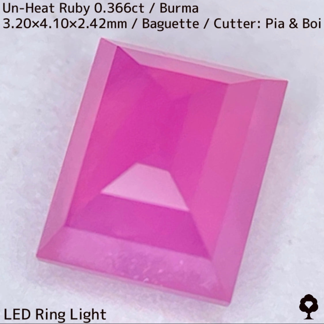 ビルマ産非加熱ルビー0.366ct★超可愛い柔らかなシルキーピンクのシャープなバゲット