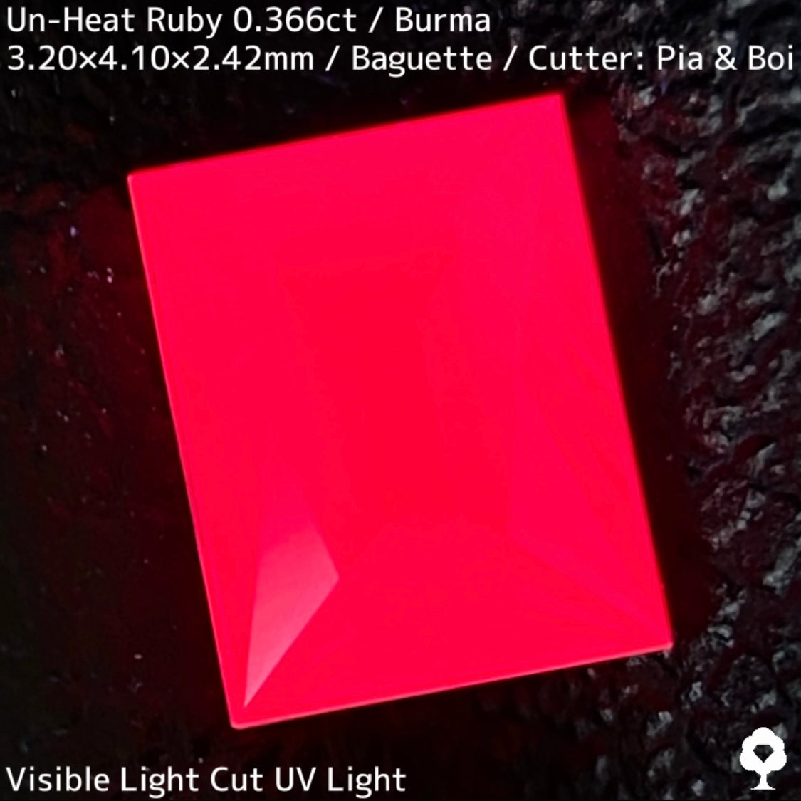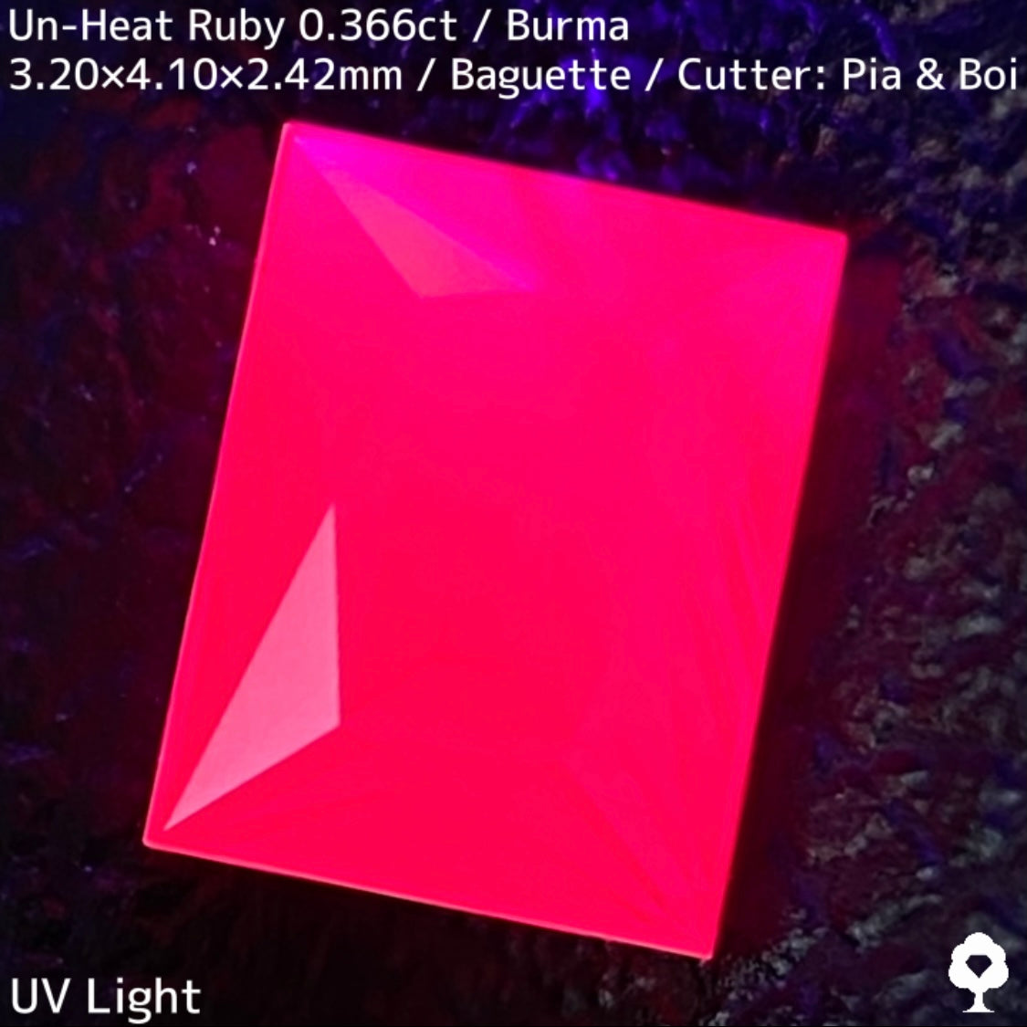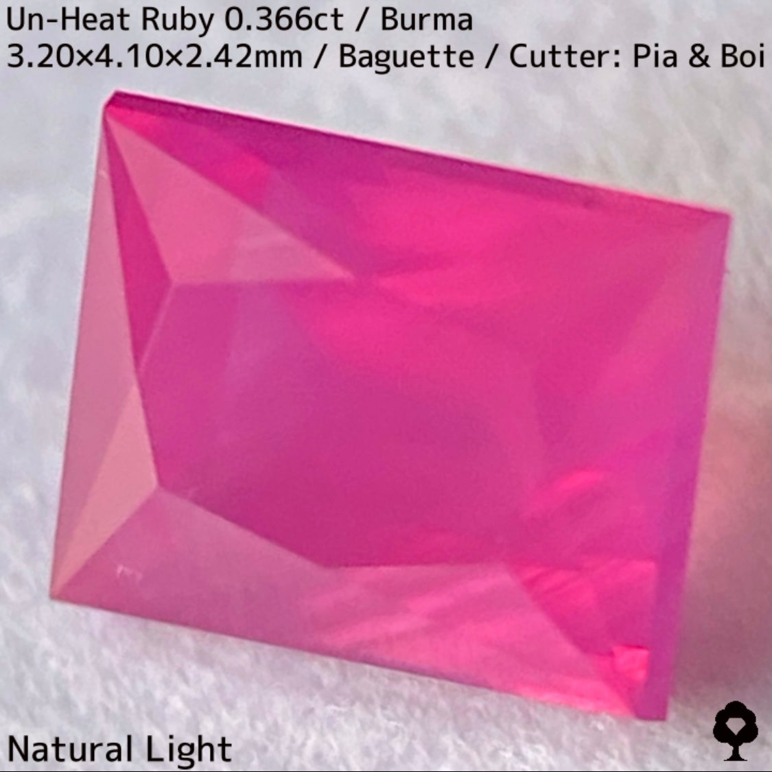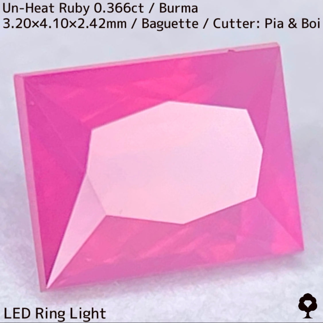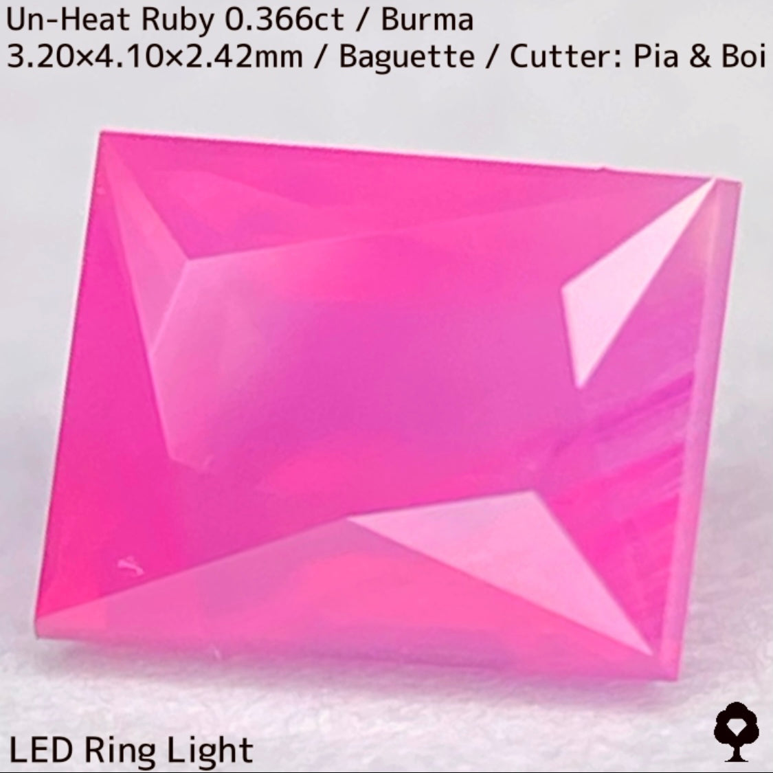 ビルマ産非加熱ルビー0.366ct★超可愛い柔らかなシルキーピンクのシャープなバゲット
