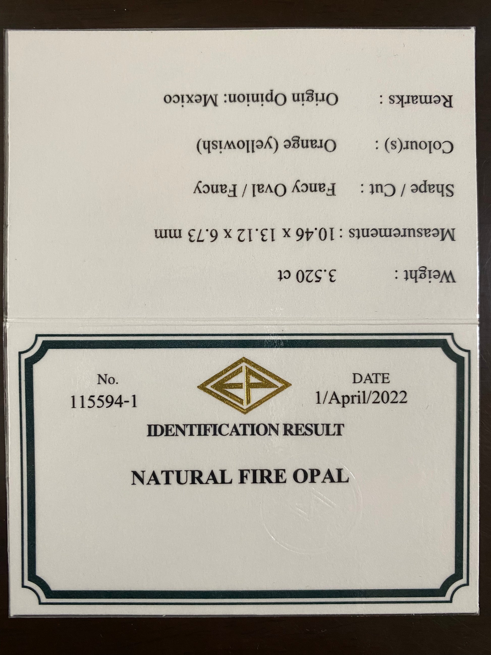 柔らかな美色マンダリンカラー★ファイアーオパール3.520ct ピアッちゃん作品