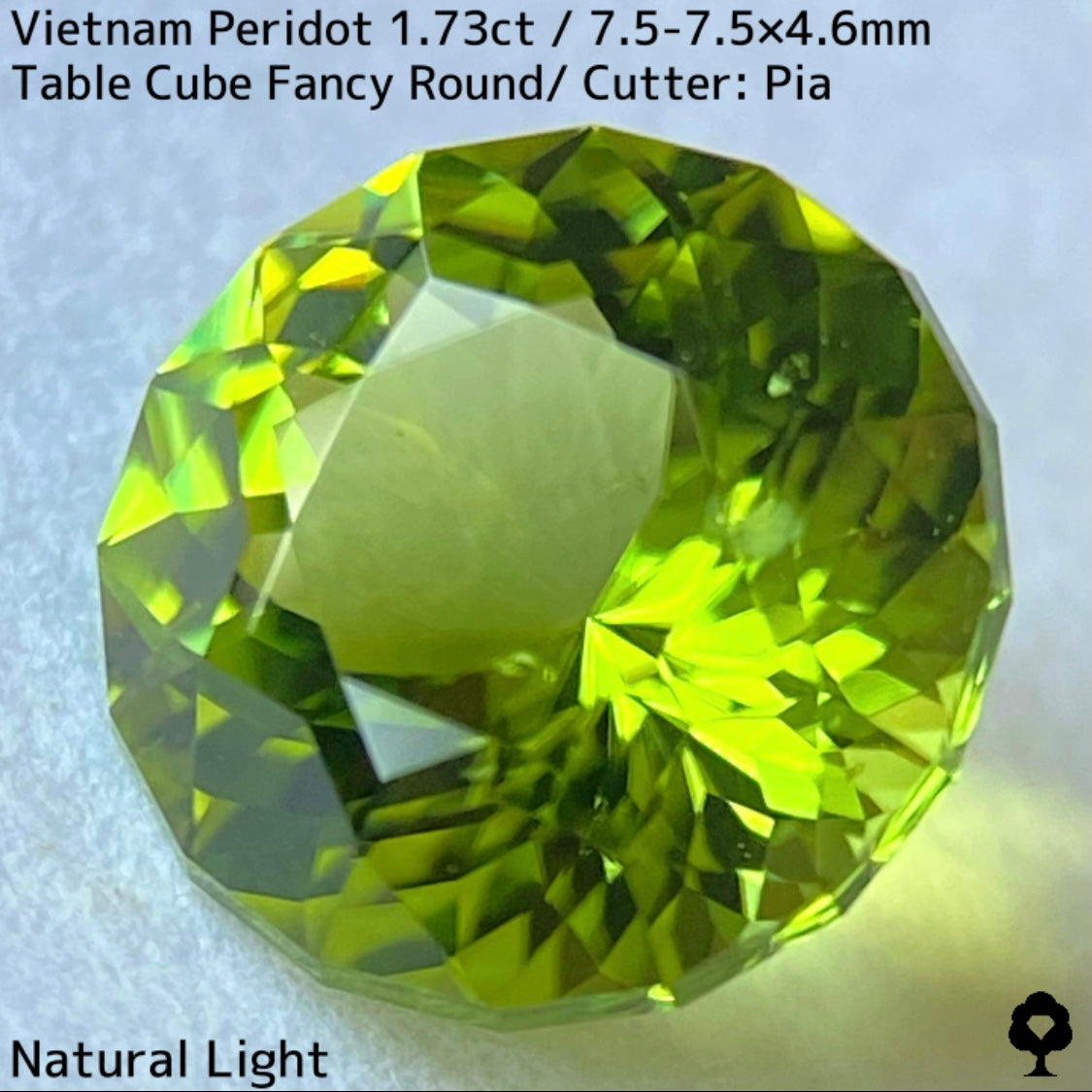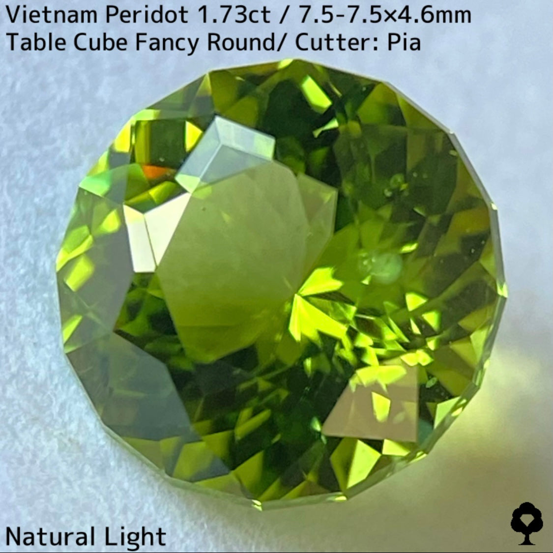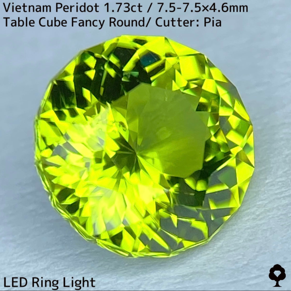 ベトナム産ペリドット1.73ct★リリーパッド浮かぶ万華鏡のような美しいフラワーカット美色結晶
