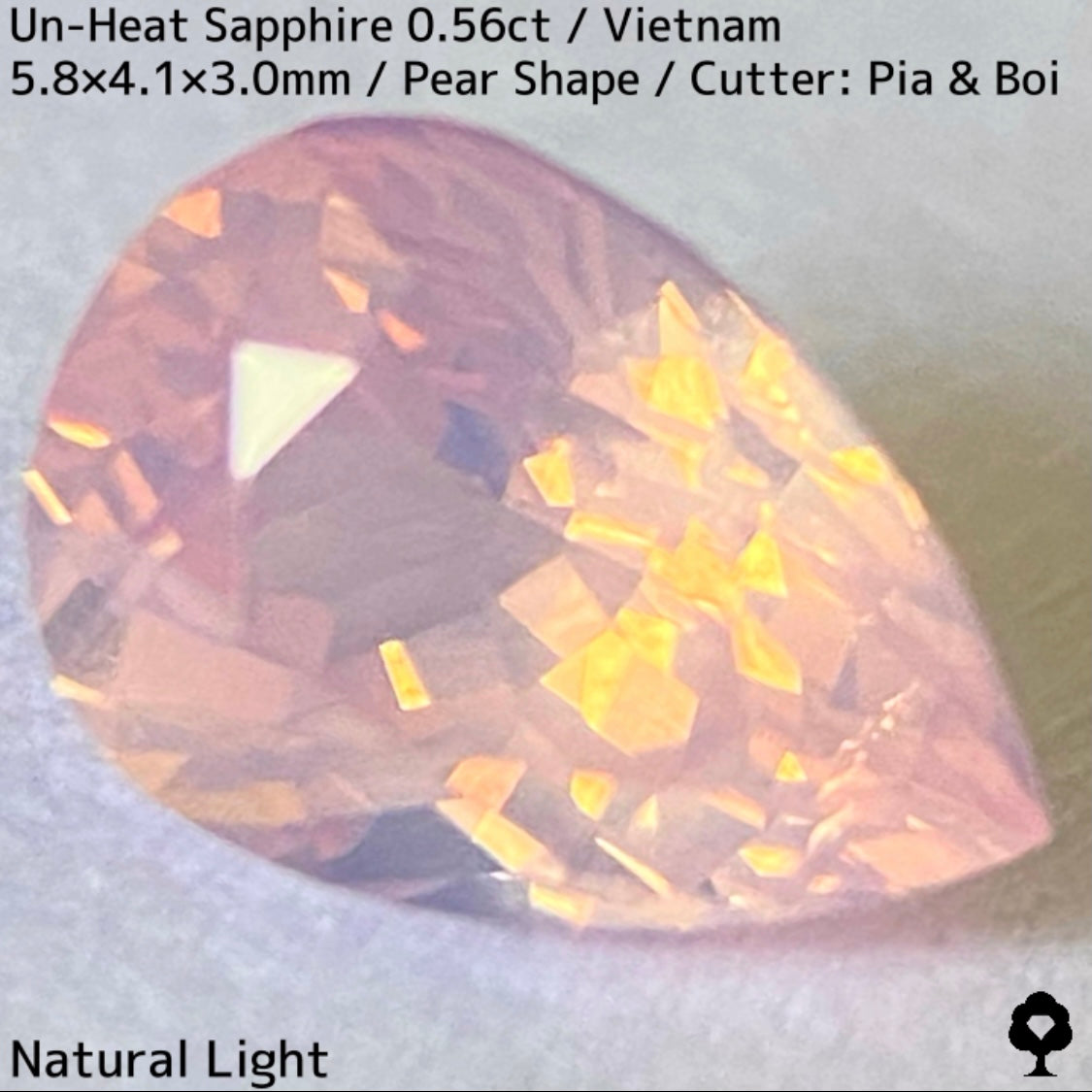 ベトナム産非加熱サファイア0.56ct★天国を思わせる品のある柔らかなシルキーパープリッシュピンクからシャンパンゴールドの煌めき
