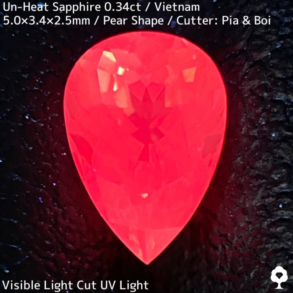 ベトナム北部産らしいシルキーな石質の、繊細なピンクからシャンパンゴールドの煌めきを放つ非加熱サファイアです。