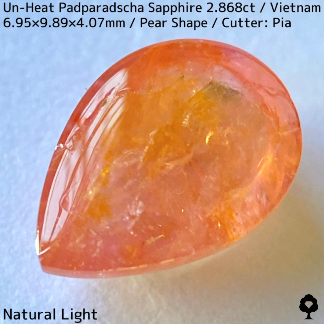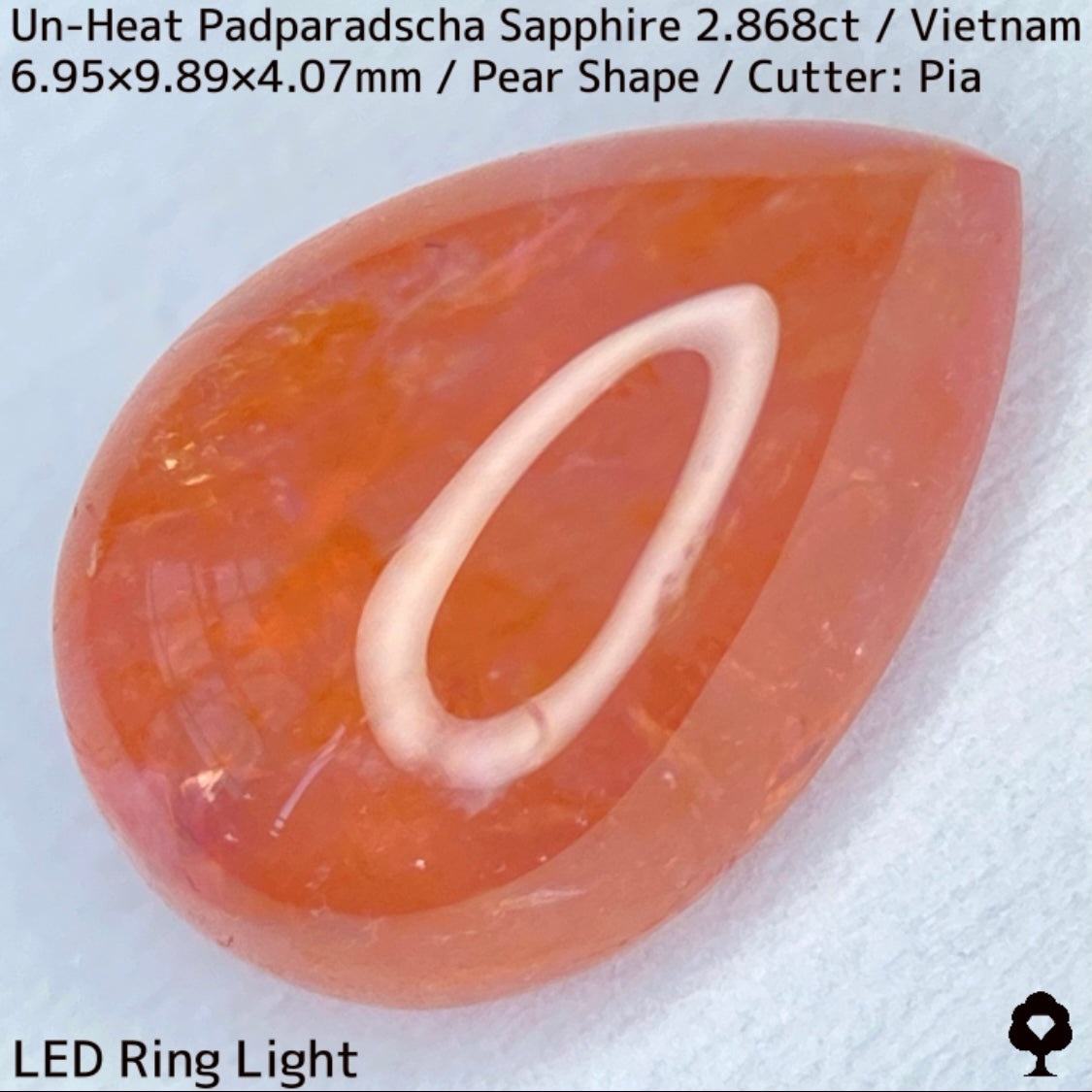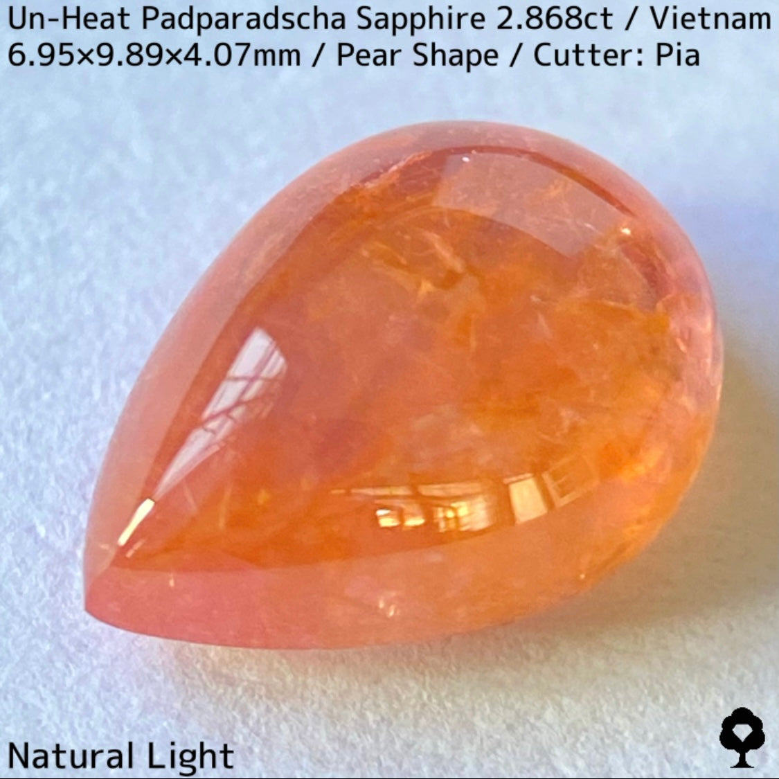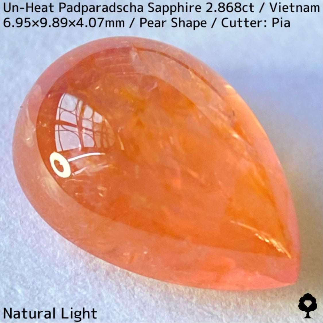 ベトナム産非加熱パパラチァサファイア2.868ct★柔らかなギリギリパパラチァのツヤツヤで可愛すぎるペアシェイプ