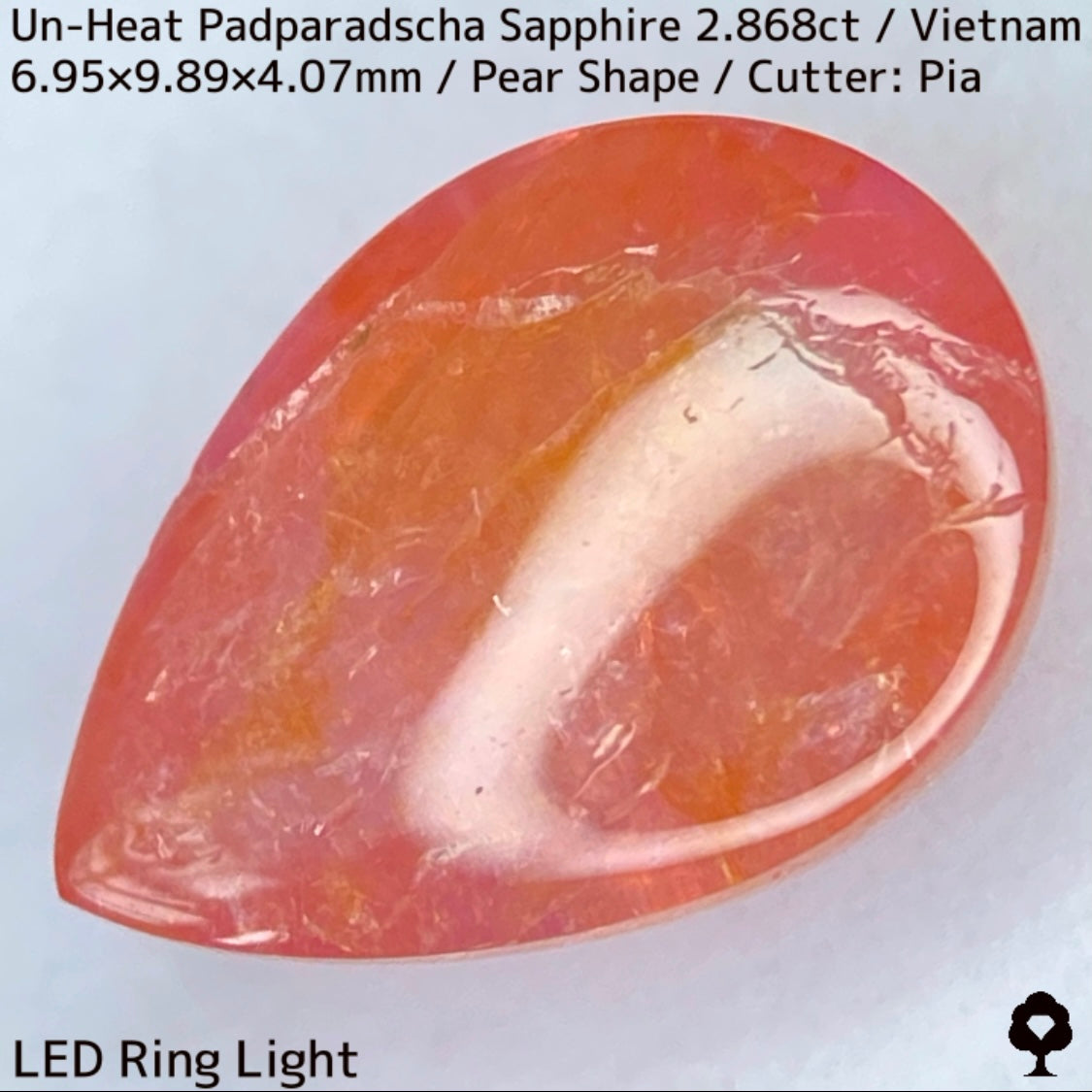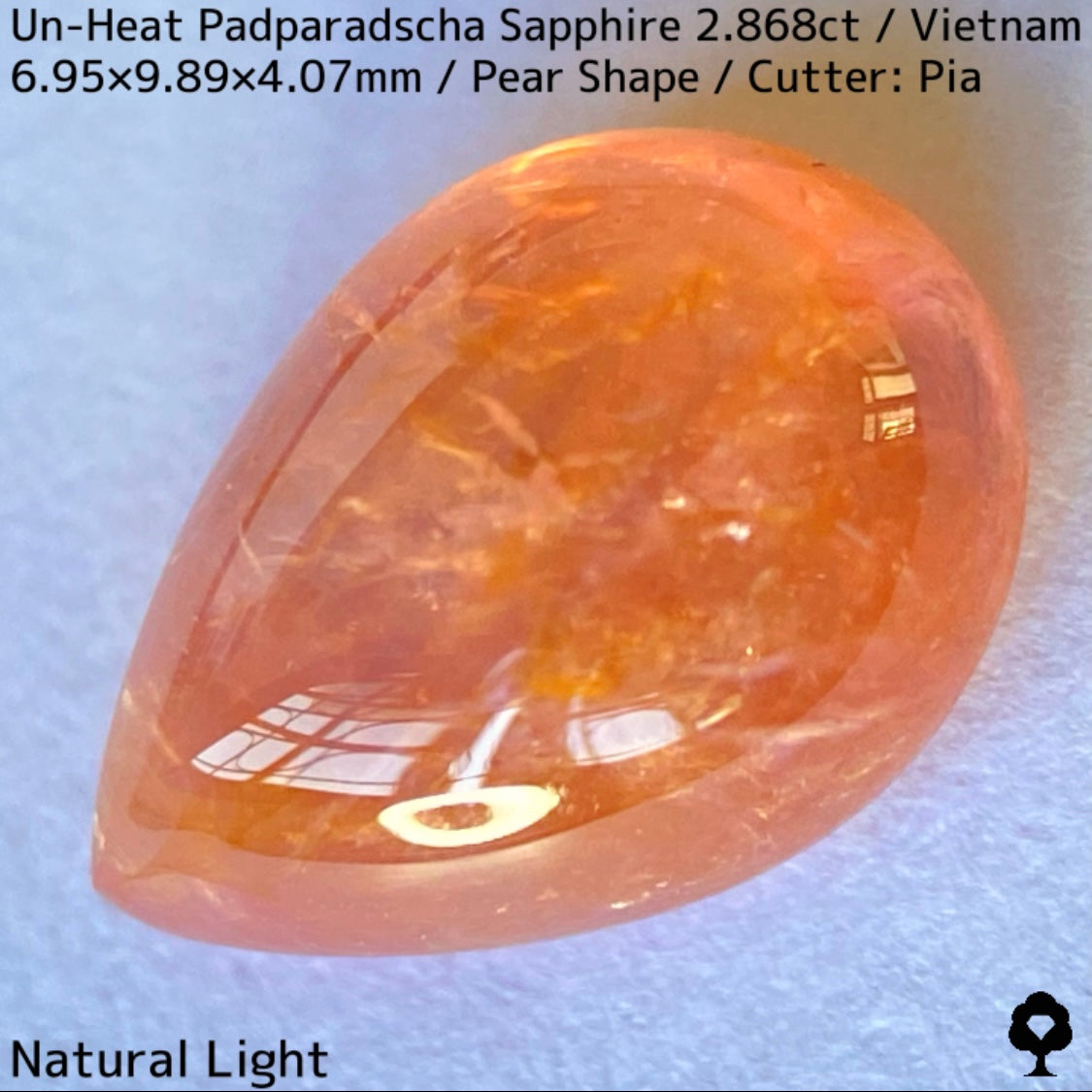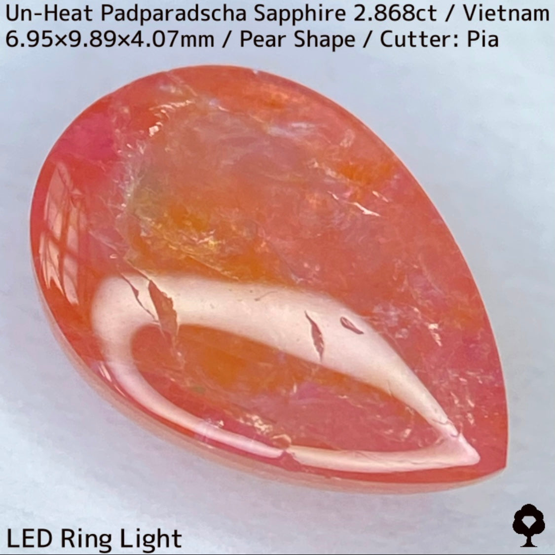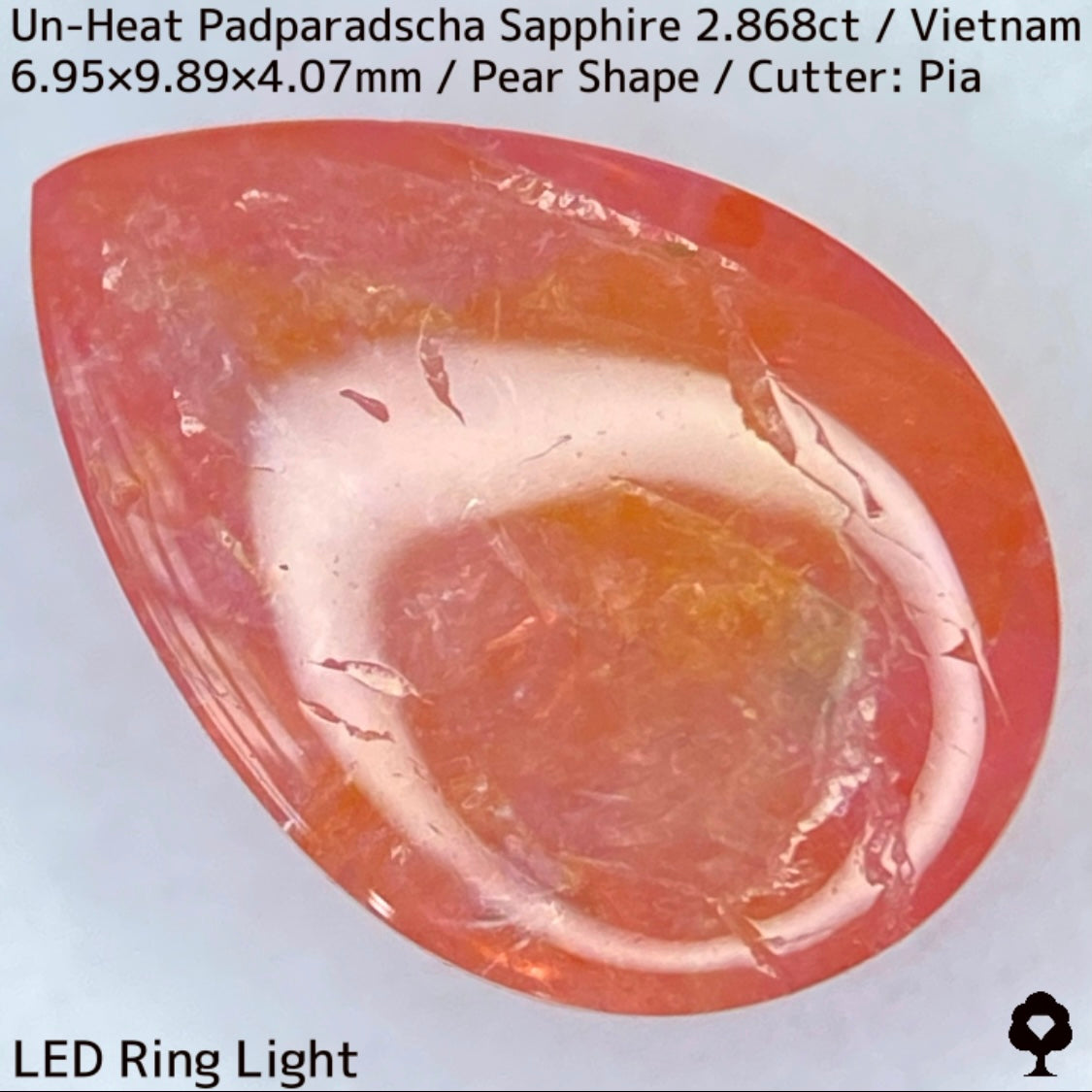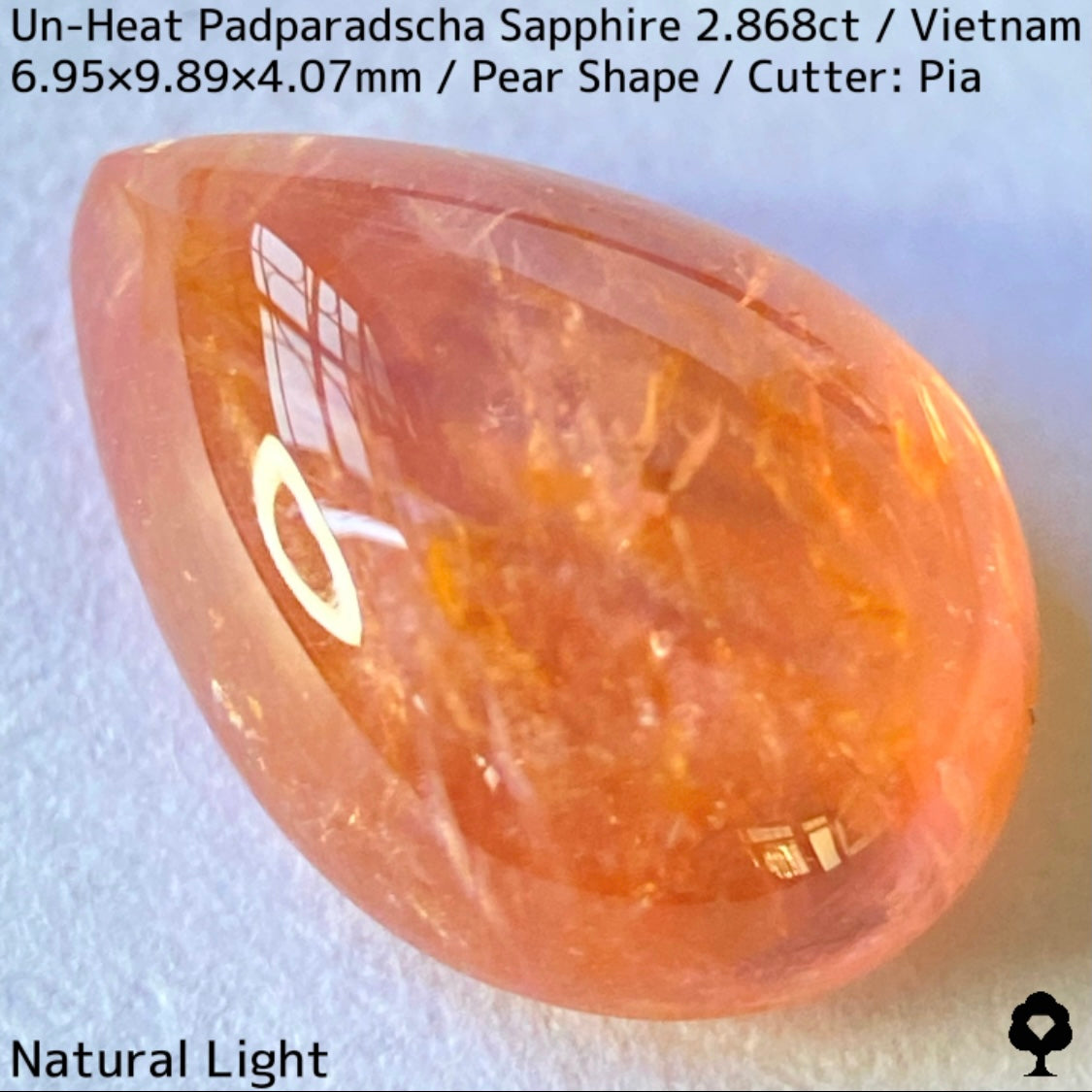 ベトナム産非加熱パパラチァサファイア2.868ct★柔らかなギリギリパパラチァのツヤツヤで可愛すぎるペアシェイプ