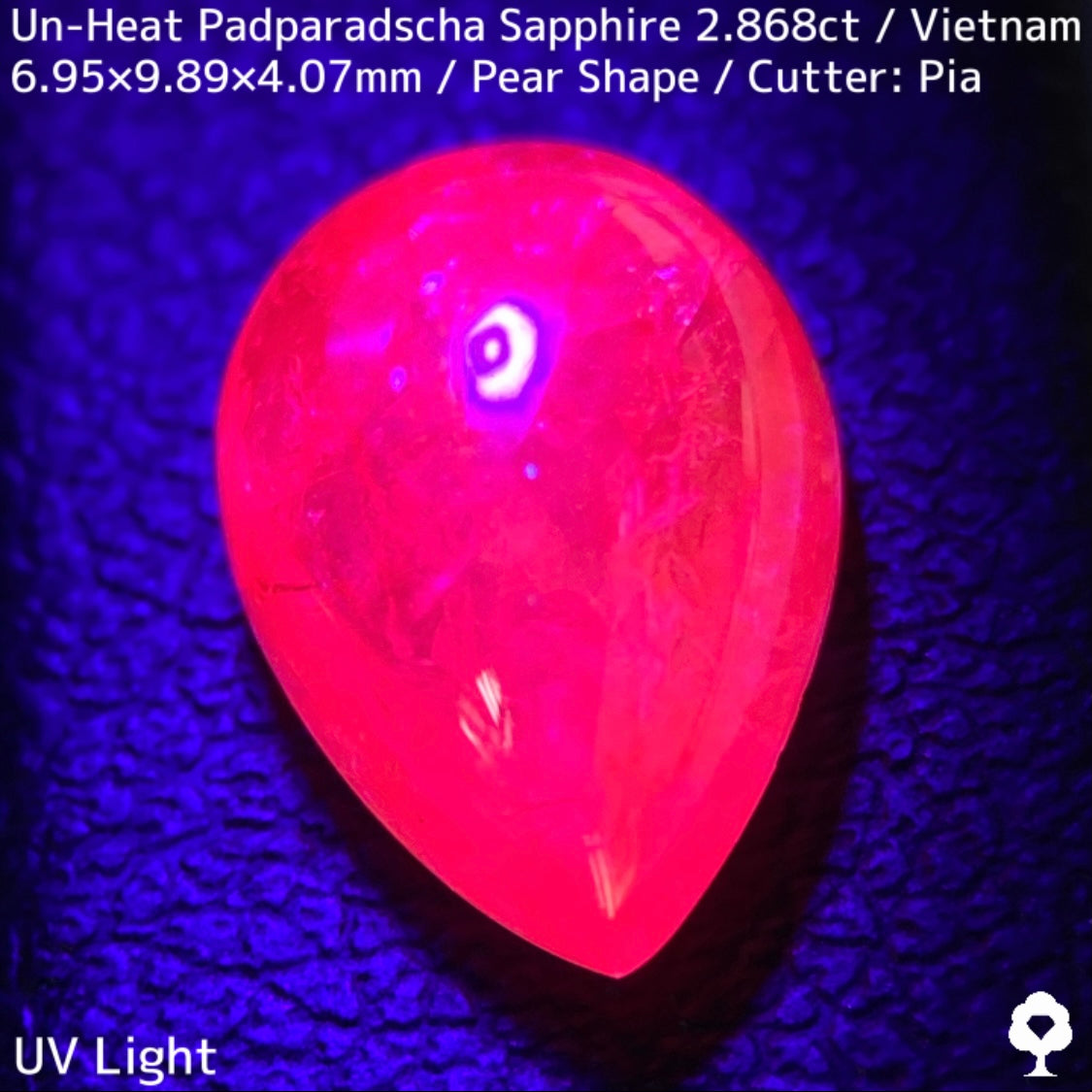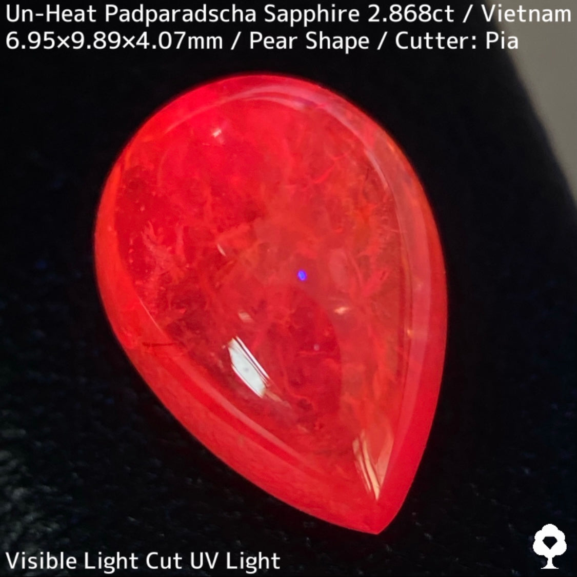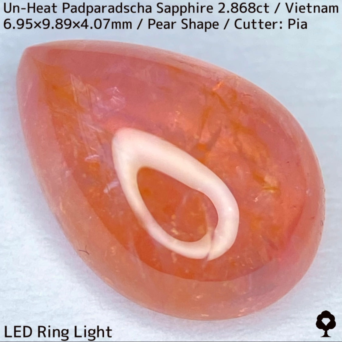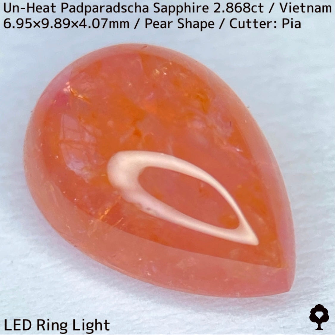 ベトナム産非加熱パパラチァサファイア2.868ct★柔らかなギリギリパパラチァのツヤツヤで可愛すぎるペアシェイプ
