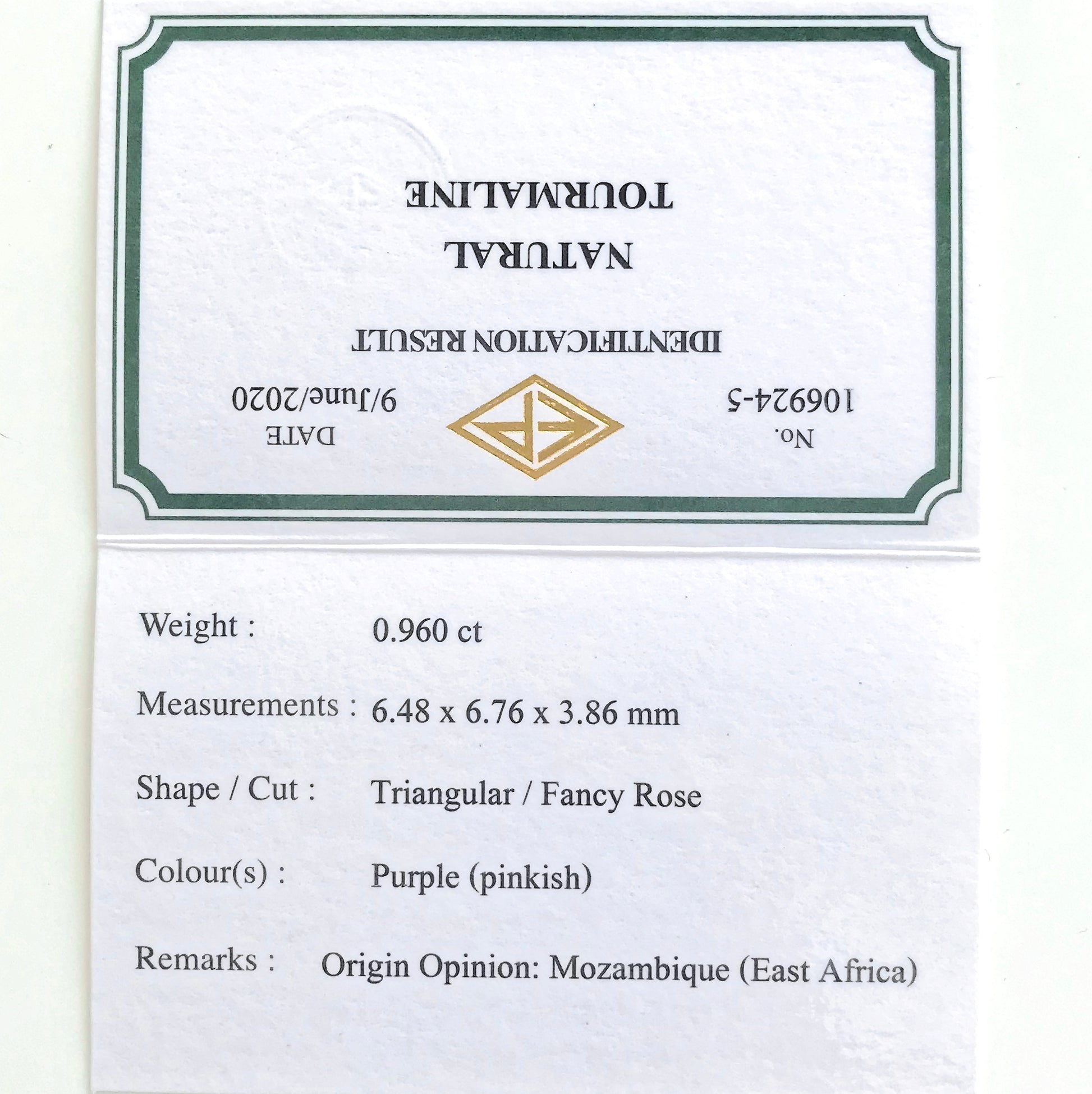 トリリアントカットのピンクトルマリン0.960ct(6.48×6.76×3.86mm)