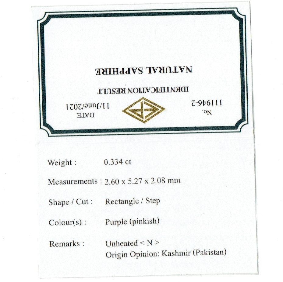 完璧なバゲットシェイプの非加熱カシミールサファイア0.334ct