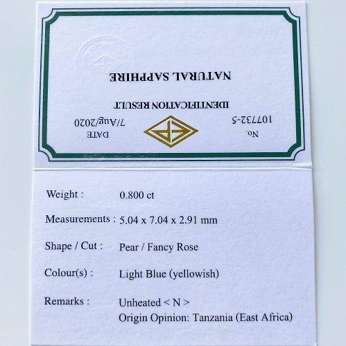 先端のみ色着いたカラーレス0.800ctタンザニア産非加熱サファイア💎