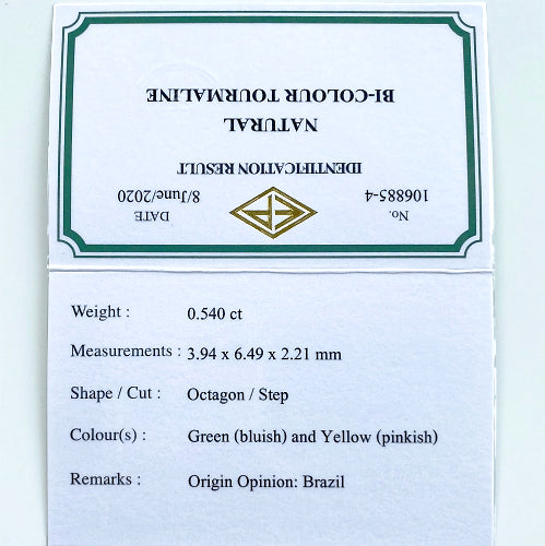 いかにも「バイカラートルマリン」と言う、雰囲気抜群のオクタゴン0.540ct✨