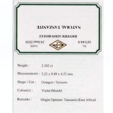 オクタゴン・通称「アコーディオン」タンザ2.202ctは、7月7日(火曜日)20:00終了で、GemTree名物の“時短オークション”でご紹介します。