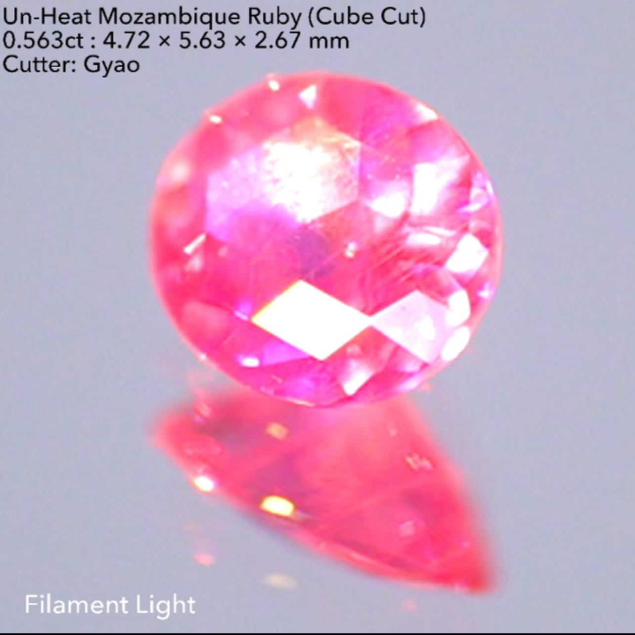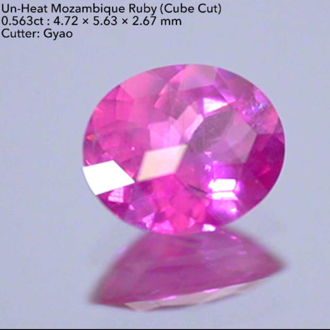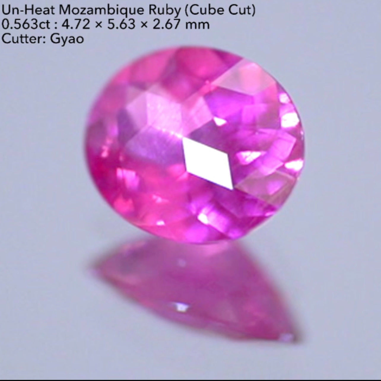 ✅【ピンクの色合いと煌めく“シーン”も魅力的】キューブカットで仕上げた非加熱モザンビーク産ルビー0.563ct (マンダリンオリエンタル個展開催特別出品)