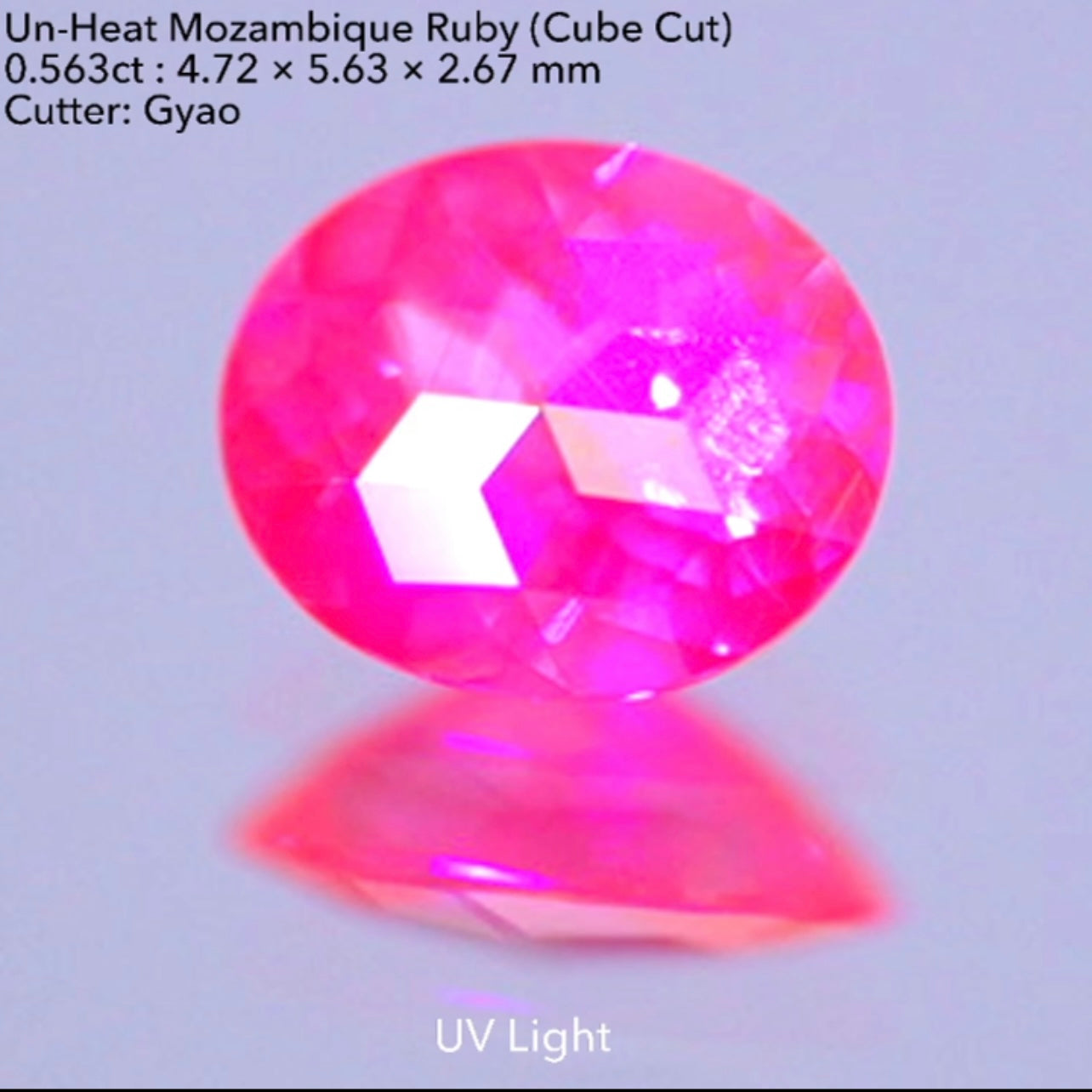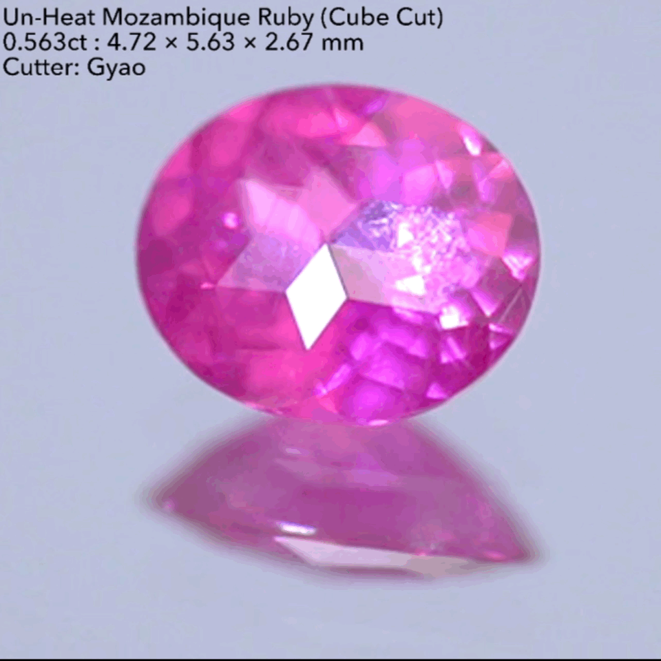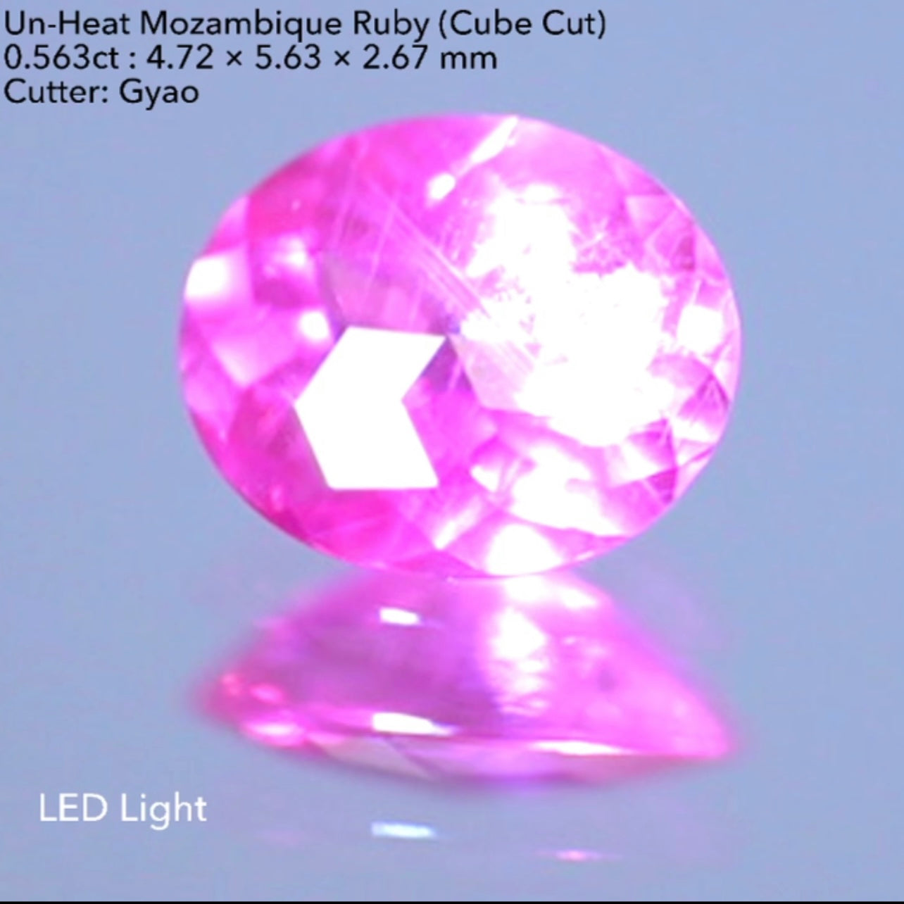 ✅【ピンクの色合いと煌めく“シーン”も魅力的】キューブカットで仕上げた非加熱モザンビーク産ルビー0.563ct (マンダリンオリエンタル個展開催特別出品)