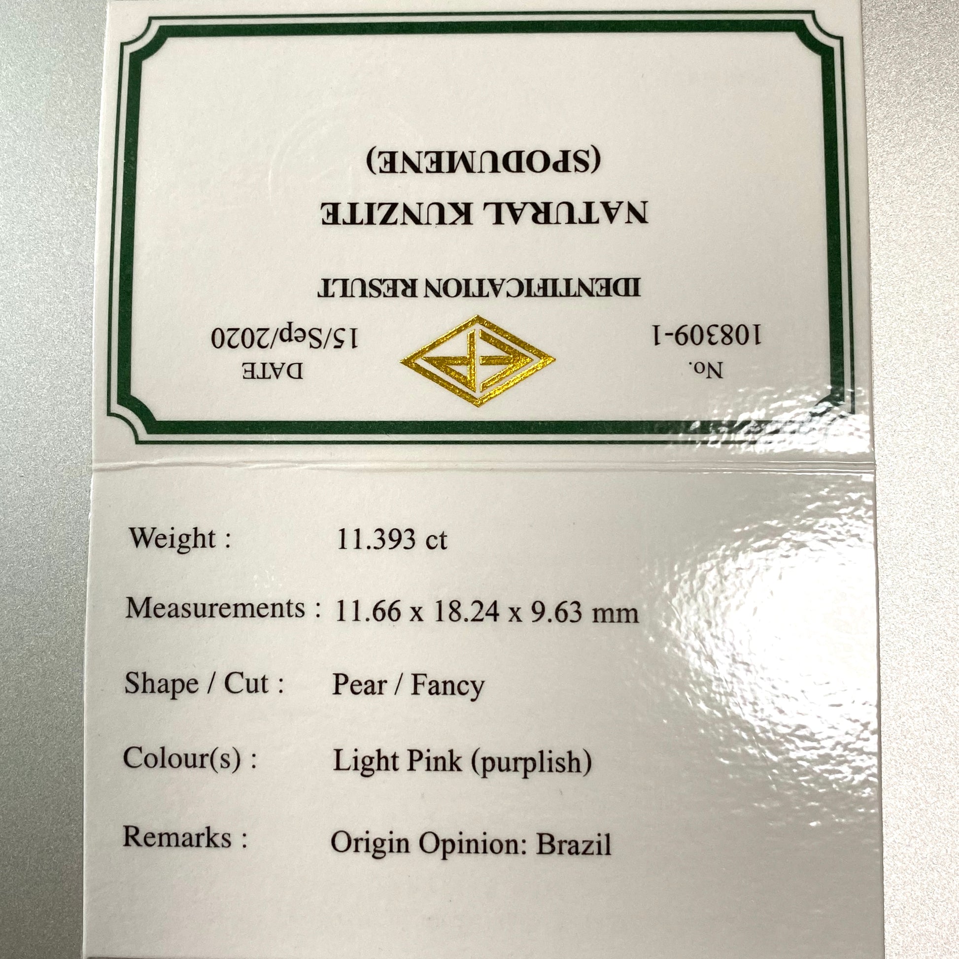 新たに完成❗️魅惑のキラキラペアシェイプ💎アディダス監督作品クンツァイト11.393ct✨秋の“新作大放出祭り🍁”