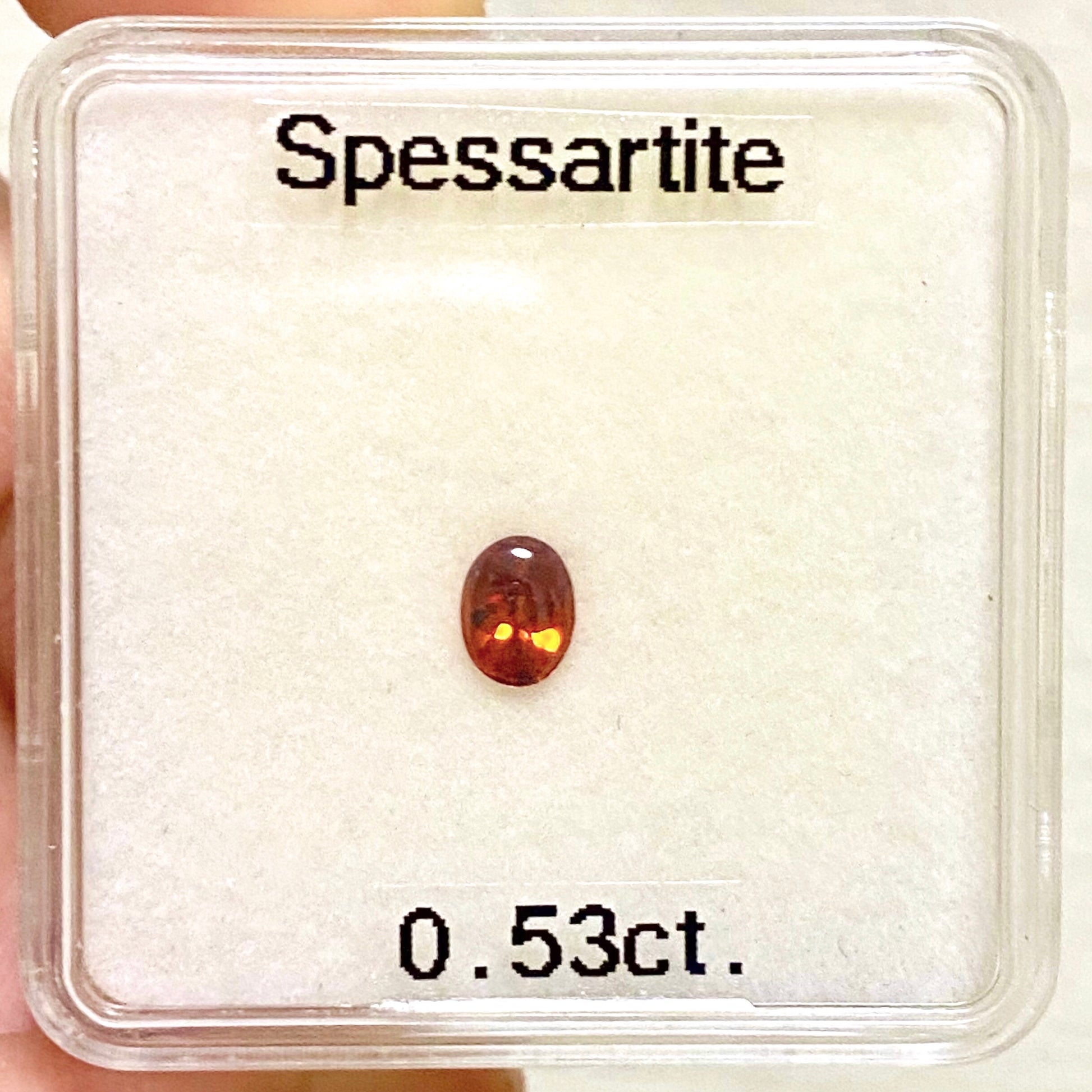 濃いオレンジが美しく、スペサタイトの割にインクルージョンは少なくアイクリーン(肉眼でキレイ)で、なかなか良い品質のスペサタイトといえると思います。