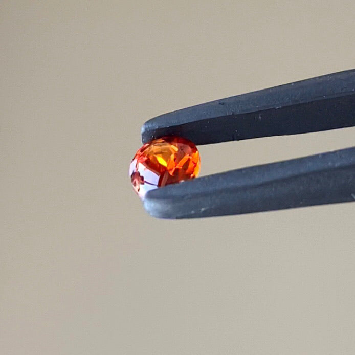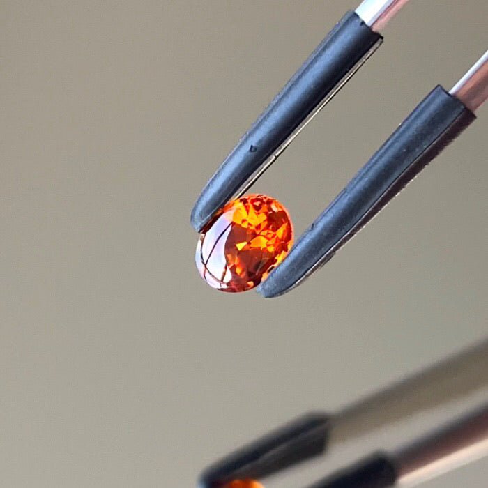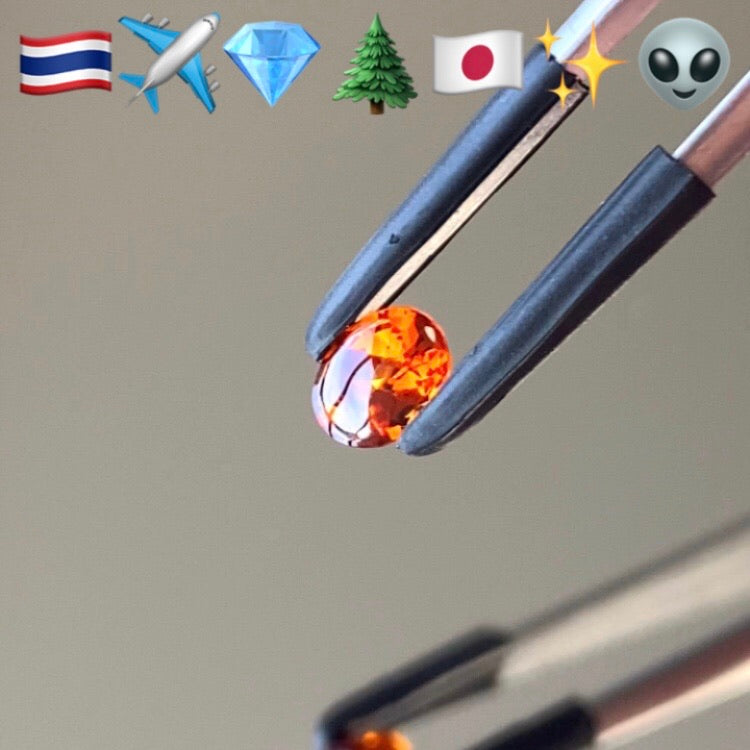 パビリオン側のカットとバフトップのツルツル感によって、通常のカット石のキラキラッとした煌めきとは違い、オレンジがメラメラっと燃えているの炎のように感じる、美しくて面白い表情を見せる一石です。