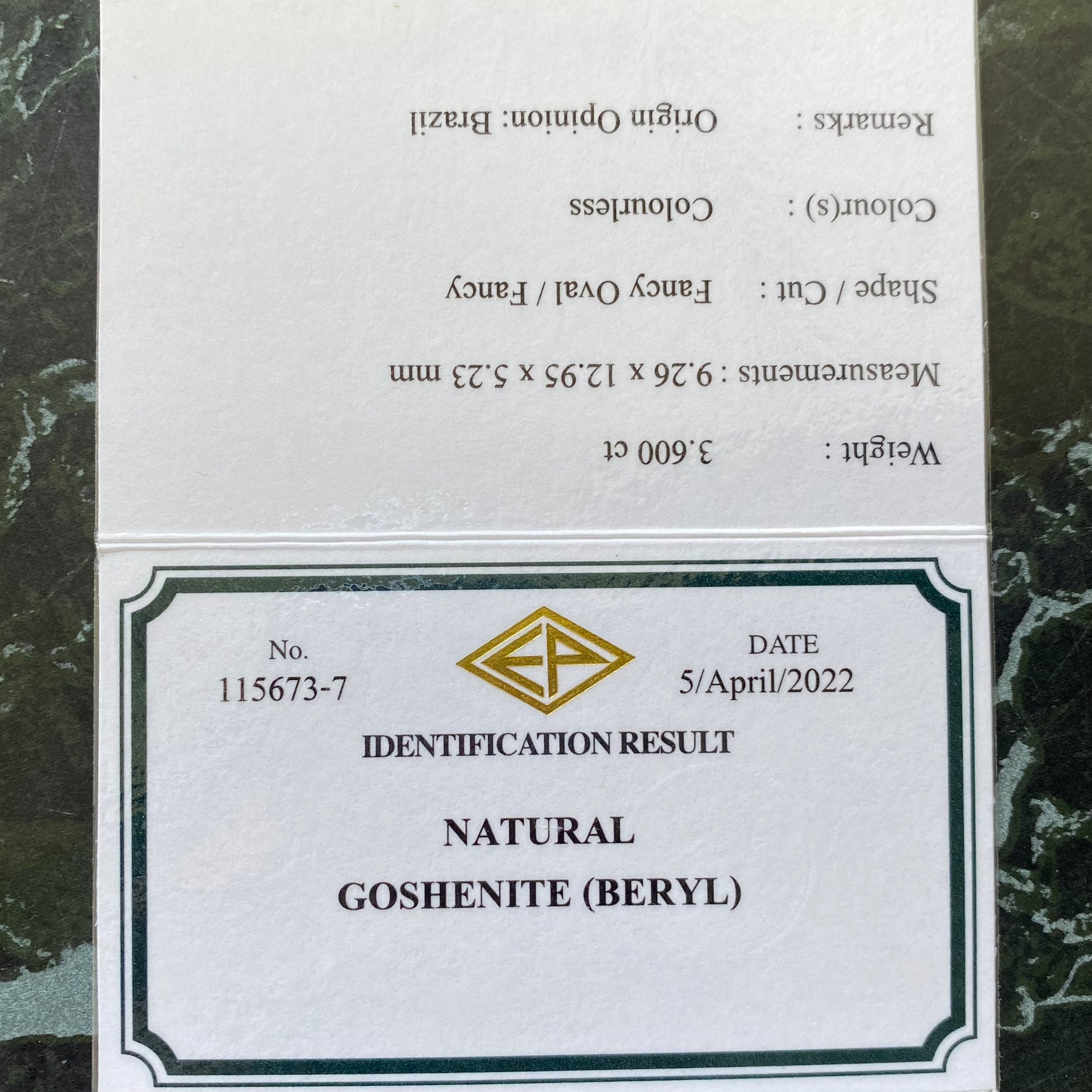 最高のクラリティから放たれる凄まじい輝きの抜群カット★ゴッシェナイト3.600ct ピアッちゃん作品