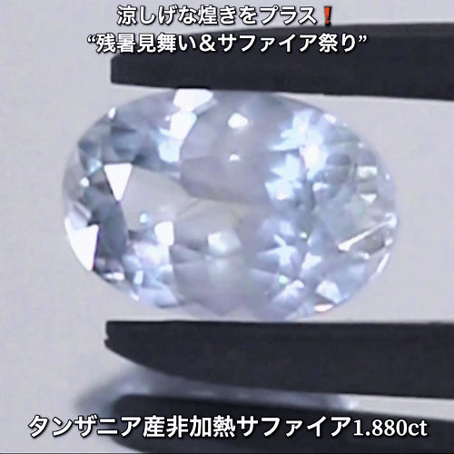 氷のような煌き1.880ctタンザニア産非加熱サファイア💎“涼しげな煌き”をプラスした“サファイア祭り”✨魅力的な即決価格を付けてオークションでご紹介❗️こちらは本日「22時15分終了」となります⏰