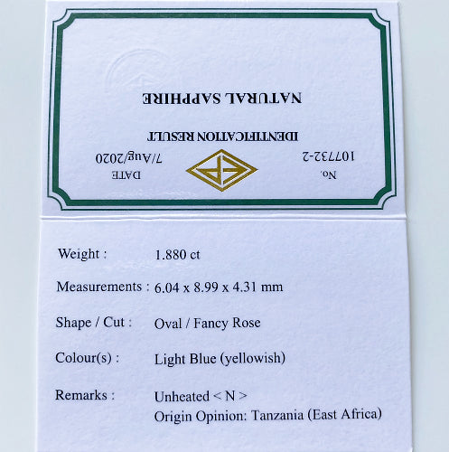 氷のような煌き1.880ctタンザニア産非加熱サファイア💎