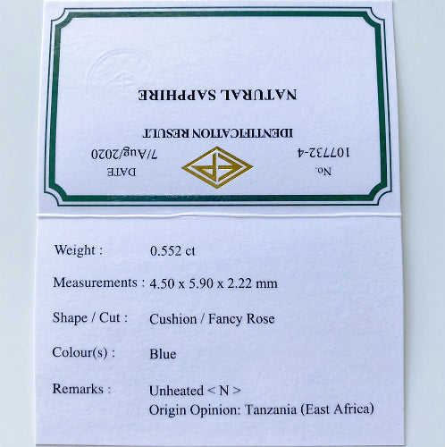 独特ブルー0.552ctタンザニア産非加熱サファイア💎