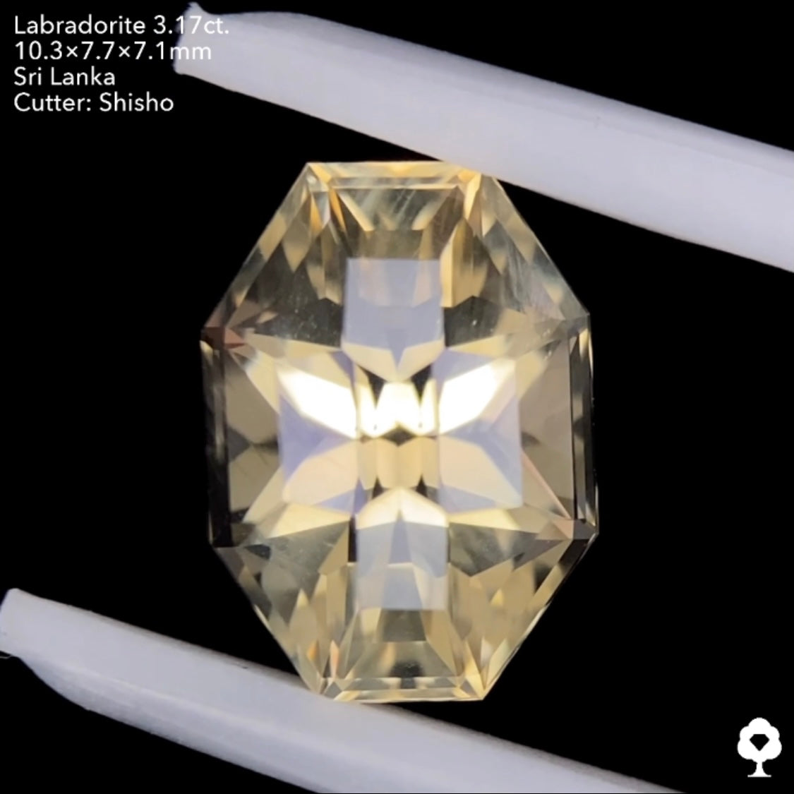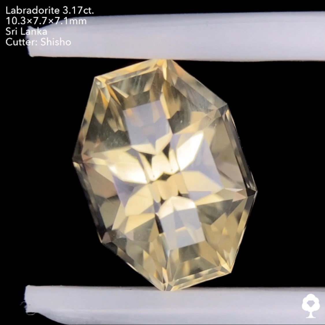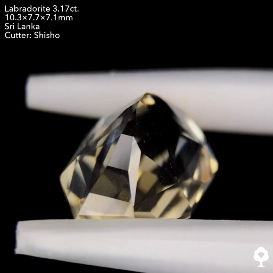 【このカット残り1石】盾のようなテーブルなしの独創的カット★ゴールデンラブラドライト3.17ct. 師匠作品