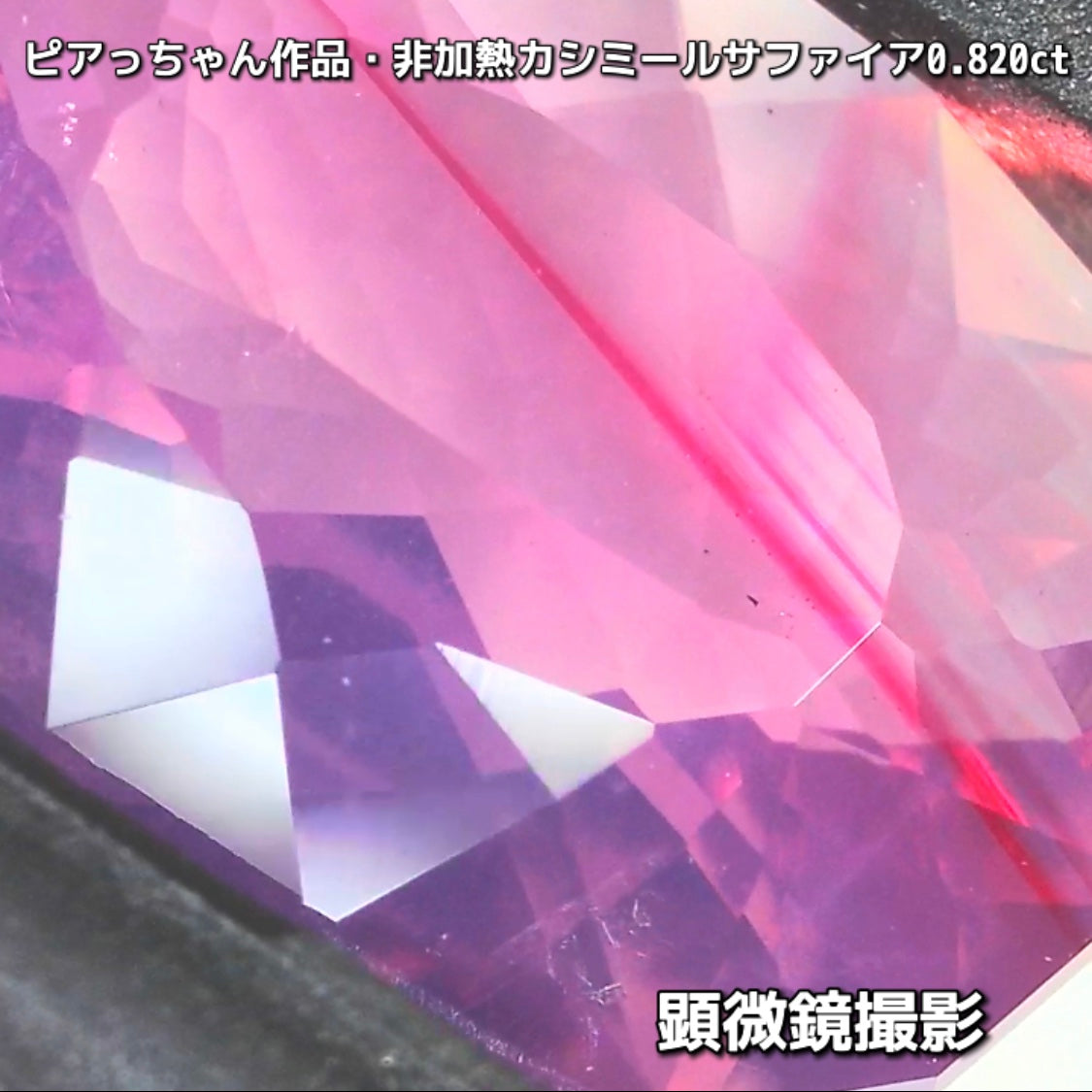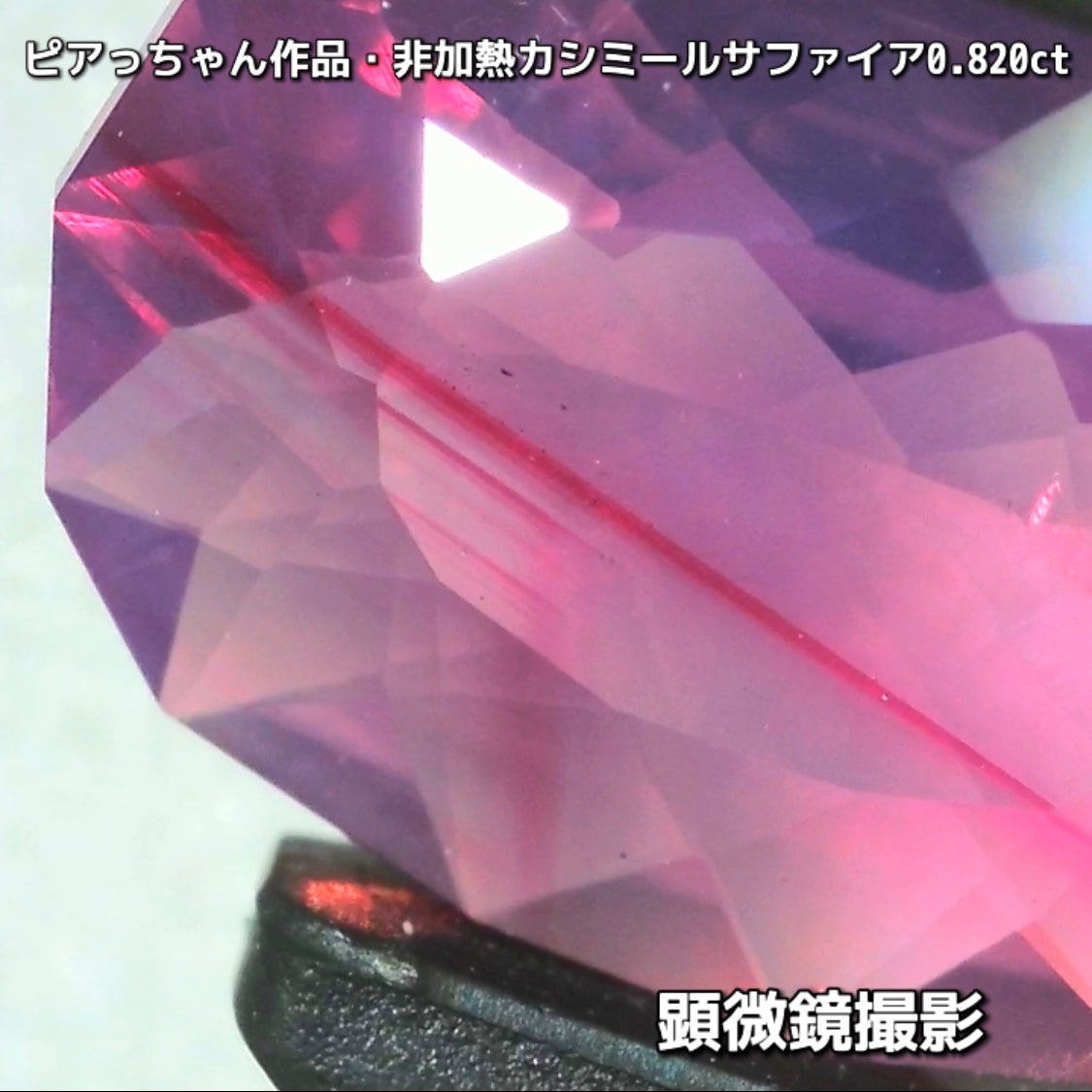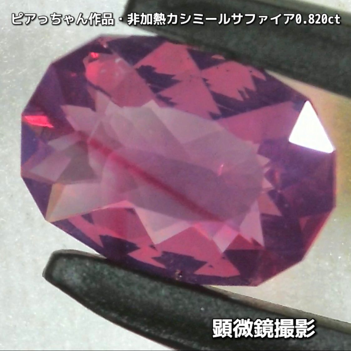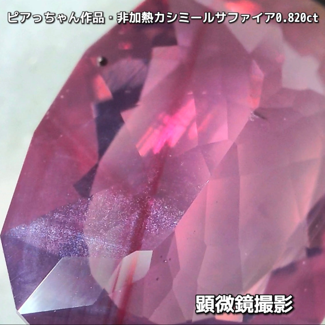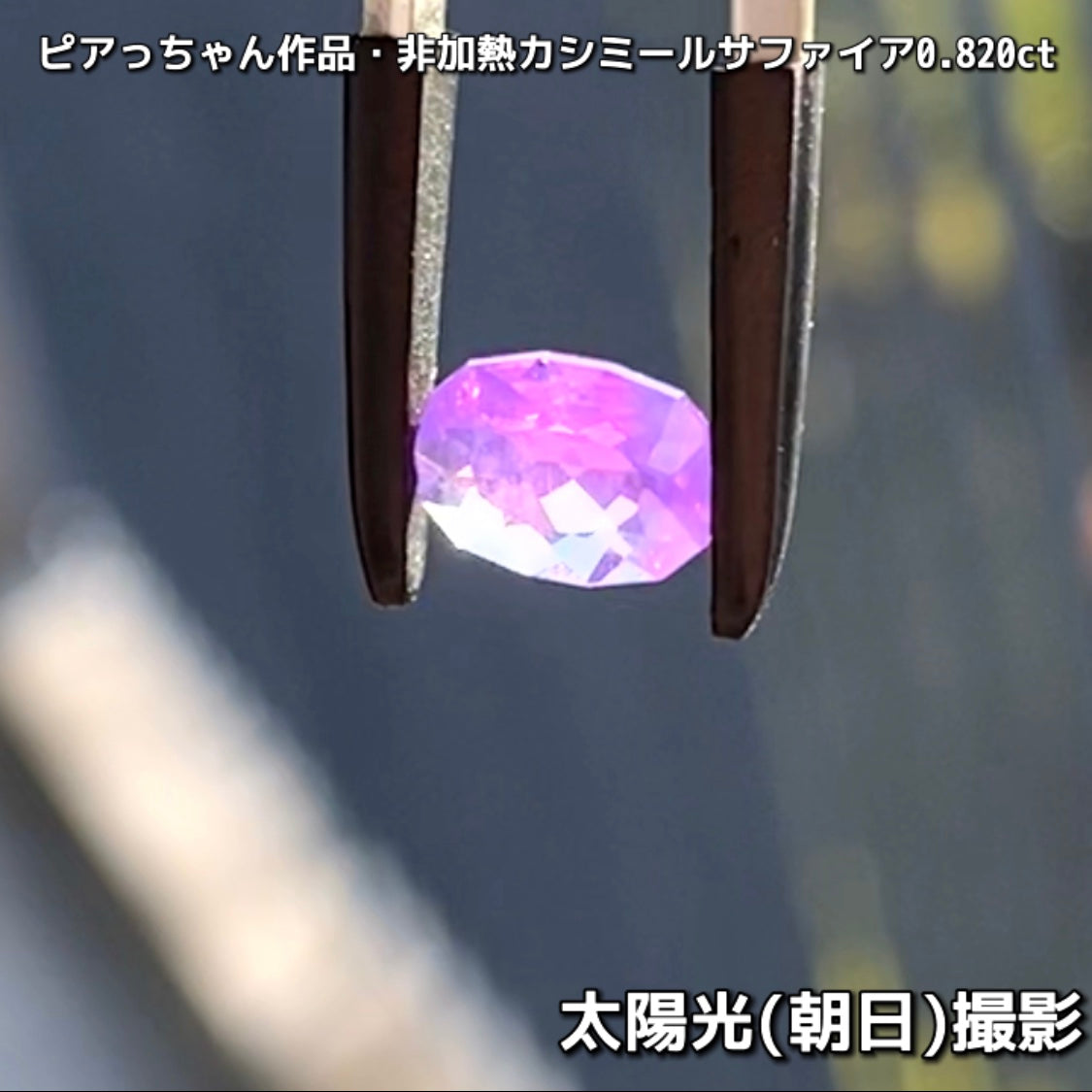 こちらは、赤いカラーバンドが走る非加熱カシミールサファイアになります。