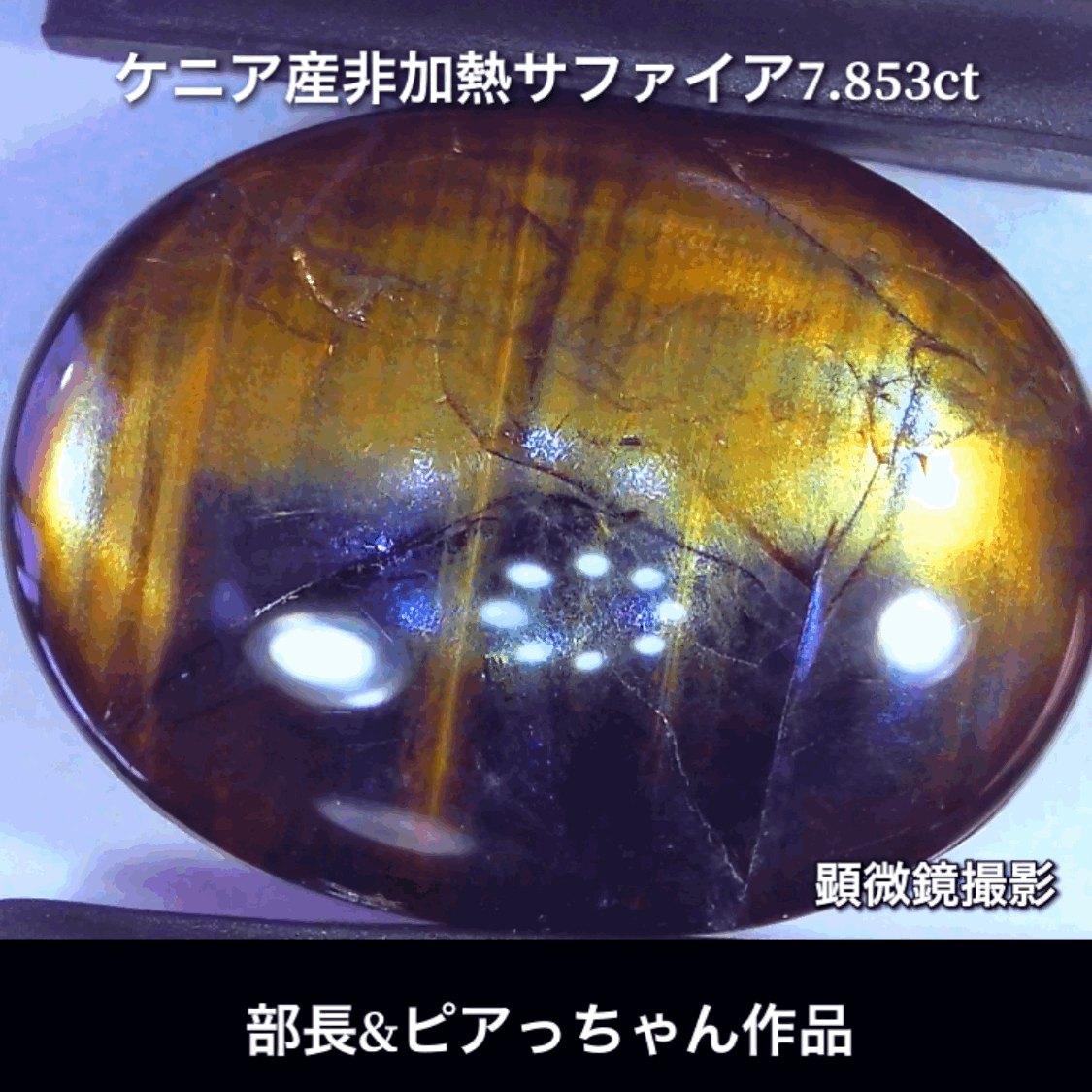 美色ブルーとゴールドシーンのバイカラー✨部長&ピアっちゃん共同作品💎ケニア産非加熱スターサファイア7.853ct💎