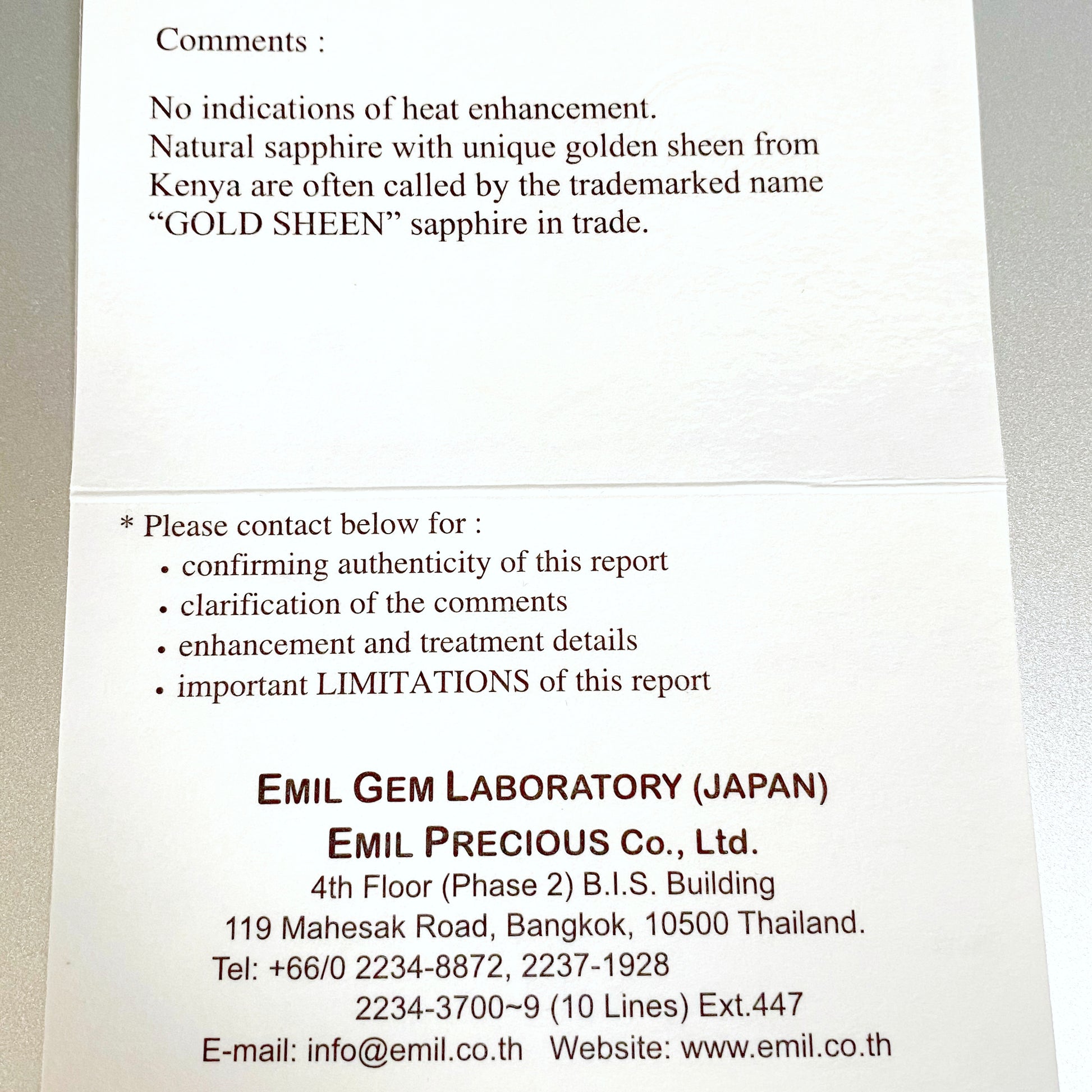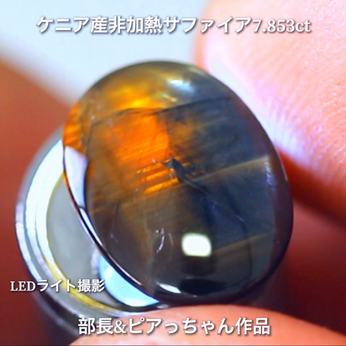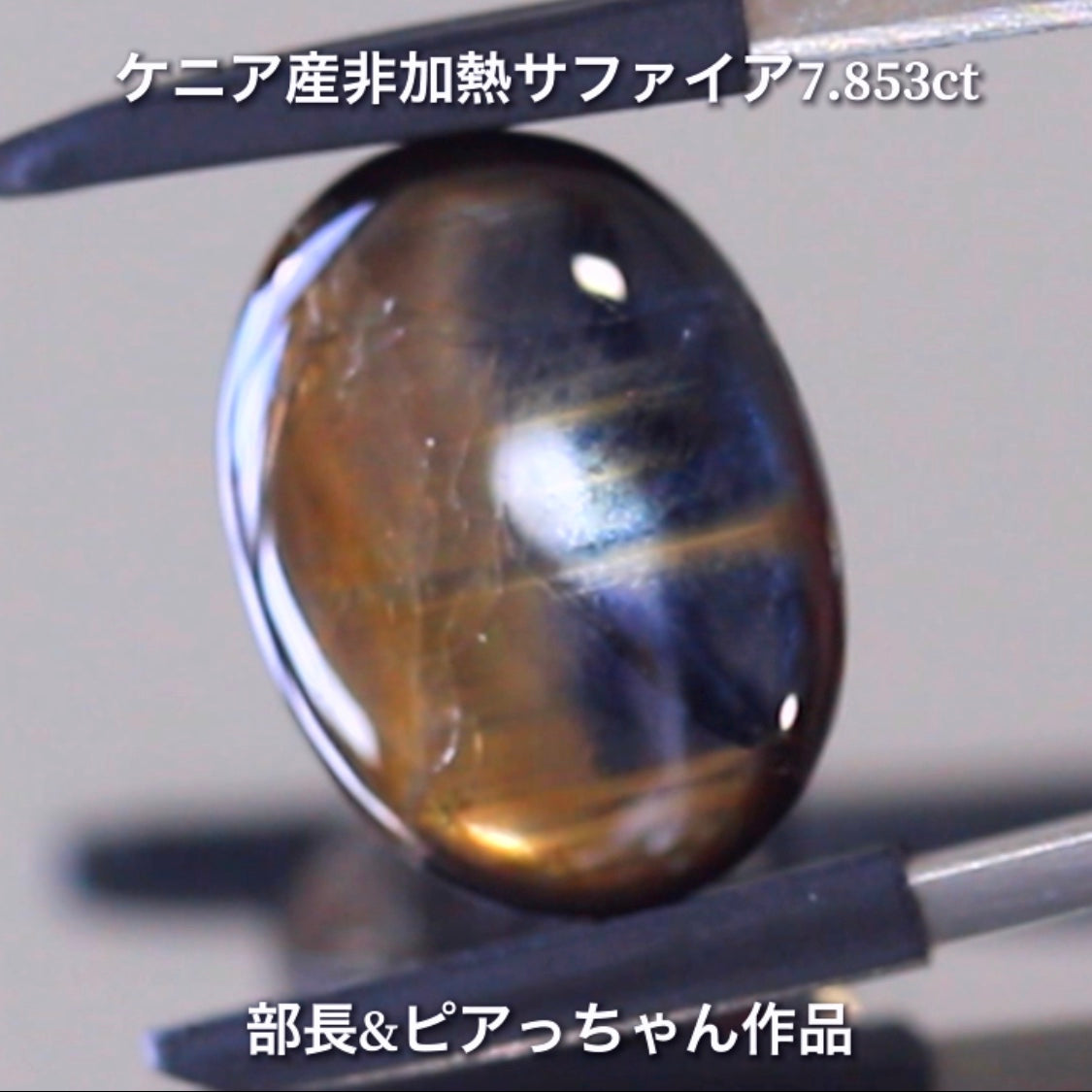 メタリックな美色ブルーと、白光りするようなゴールドシーンとのバイカラーが、なんとも魅力で美しいケニア産非加熱サファイア7.853ct。