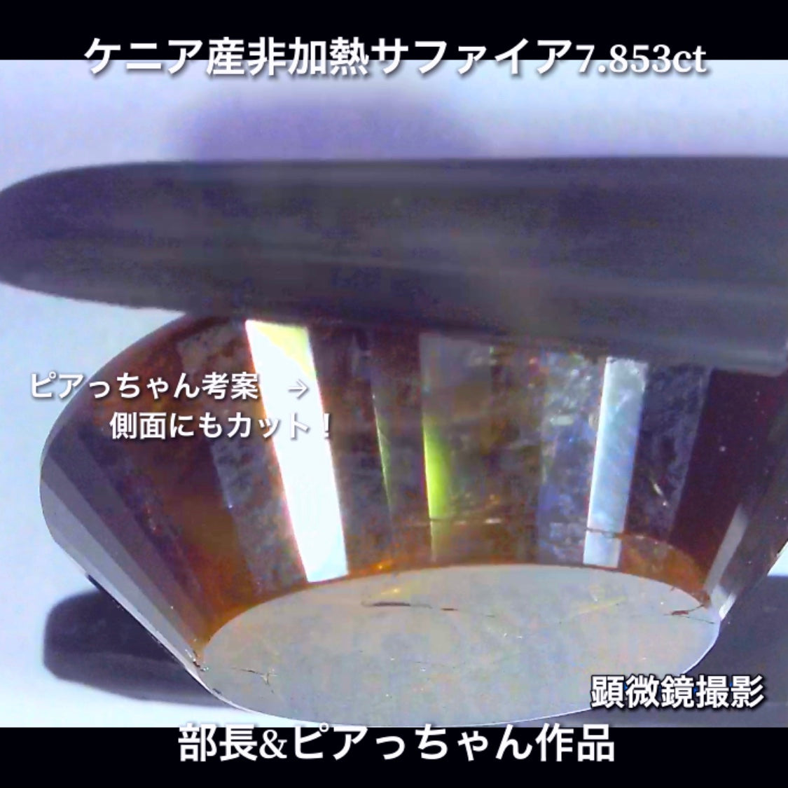 こちらのルースは、カット職人集団の中の一人、通称「部長」が入手してきたもので、自らカットをし仕上げましたが、最終的にはピアっちゃんのカット(側面)も加わりましたので、二人の共同作品となります💎