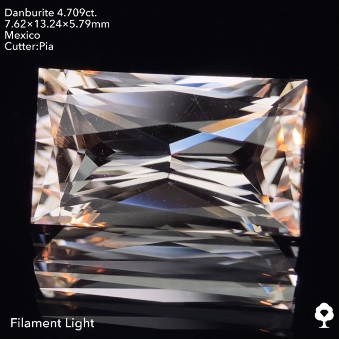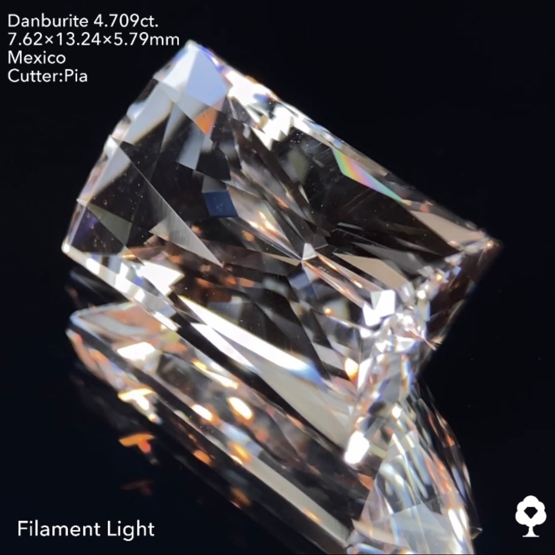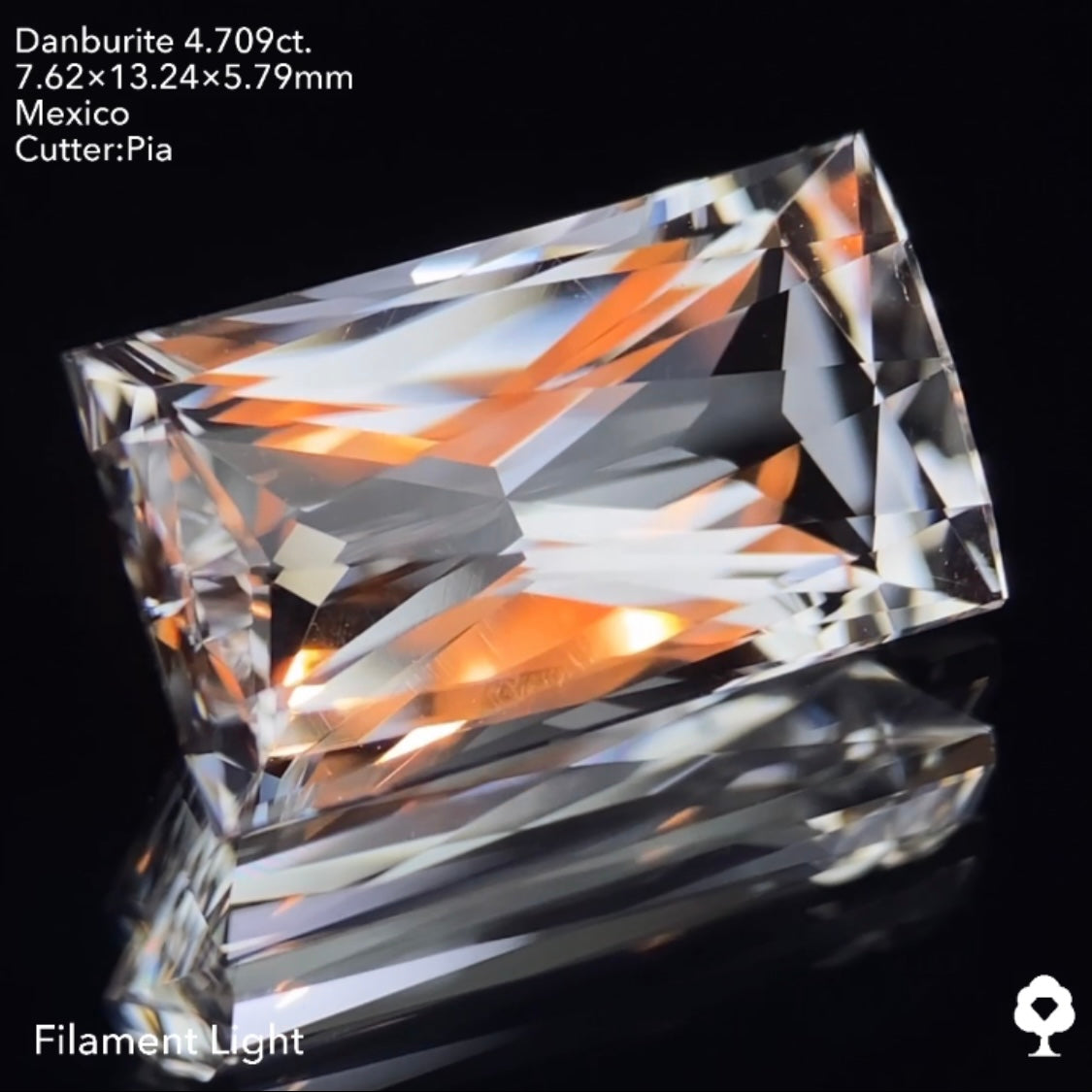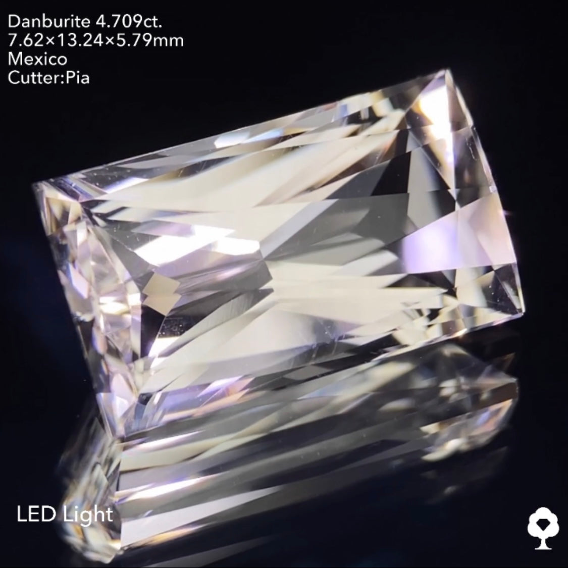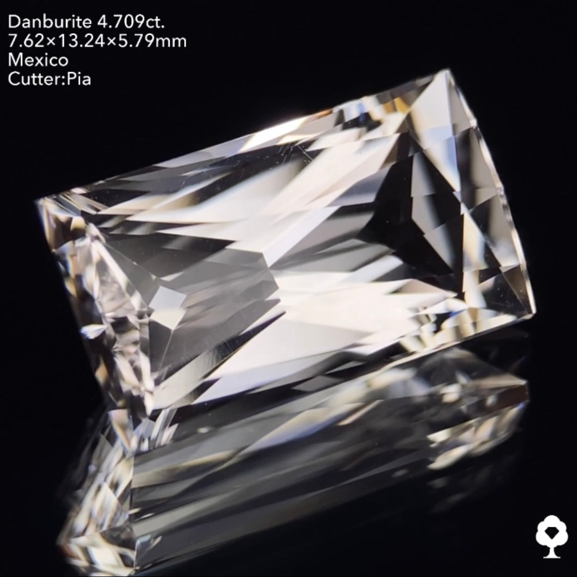 鋭い輝きが折り重なるアヤトリカットのピアッ進化版★カラーレスダンビュライト4.709ct ピアッちゃん作品