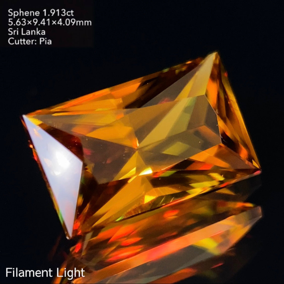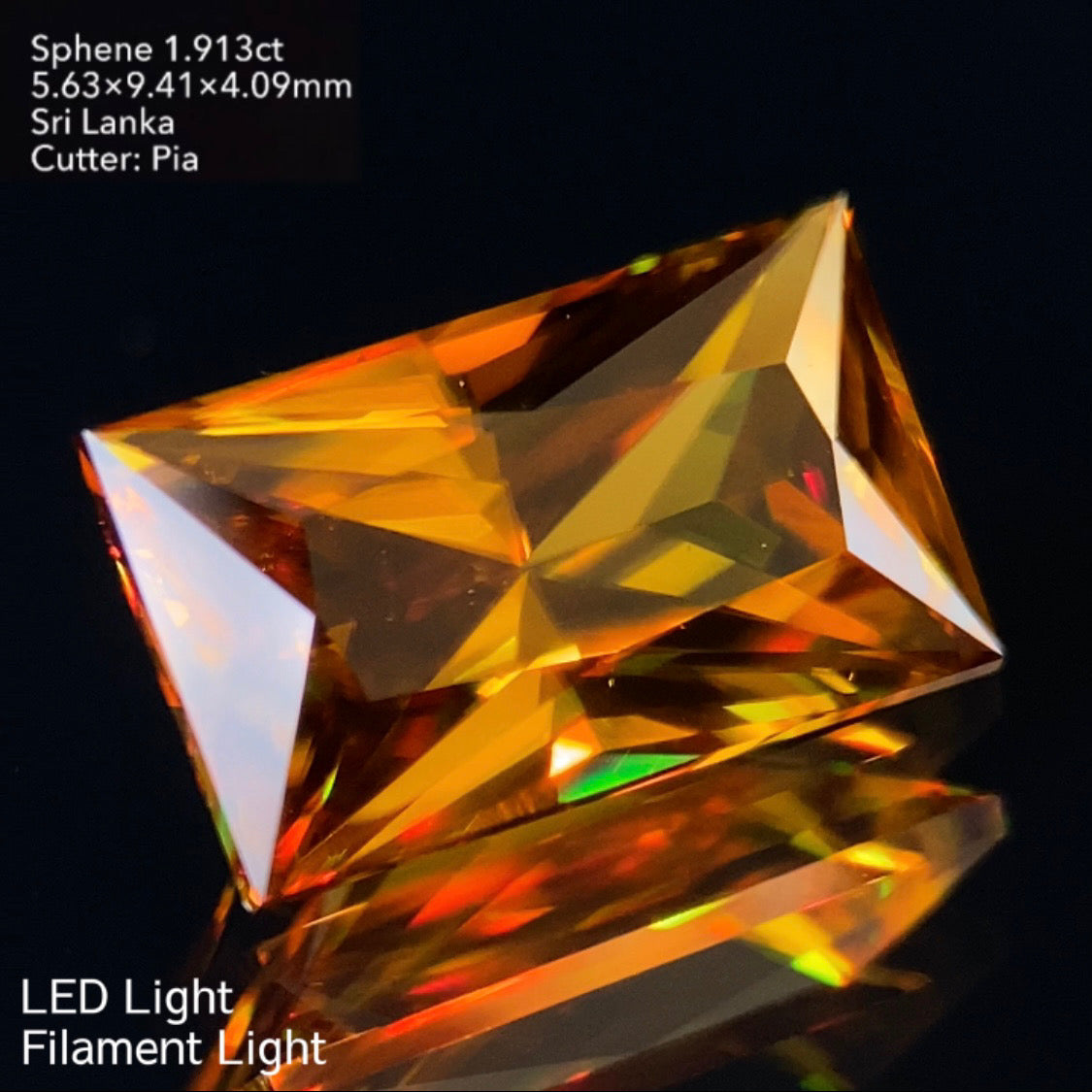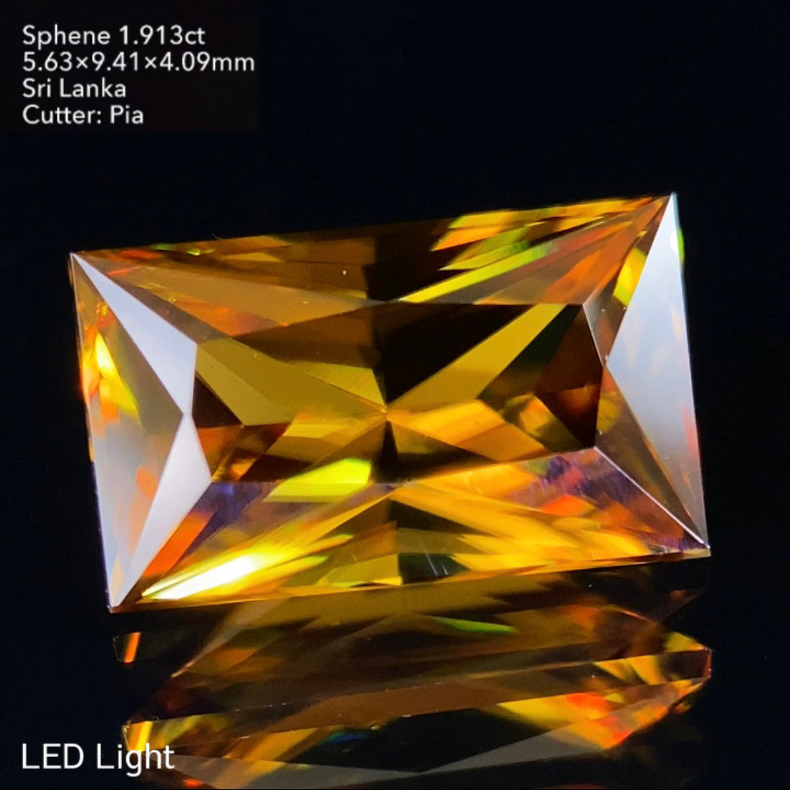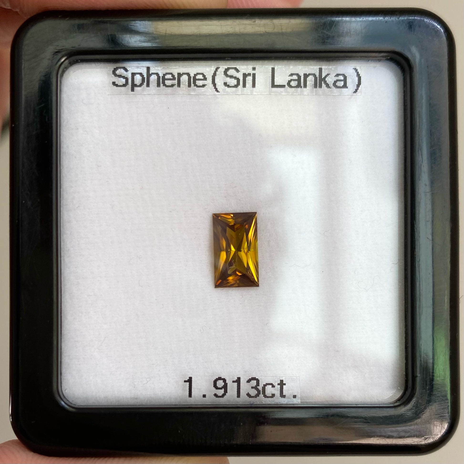 【ご落札者さま専用★1発入札オークション】鋭いカットの強い輝きに燃えるファイアーのバゲット★スフェーン1.913ct ピアッちゃん作品