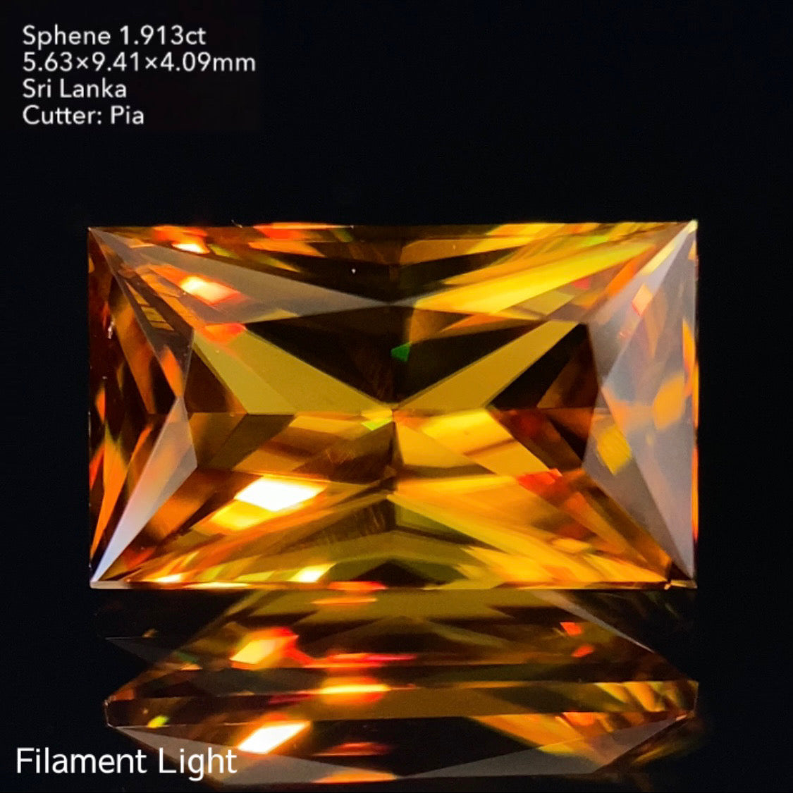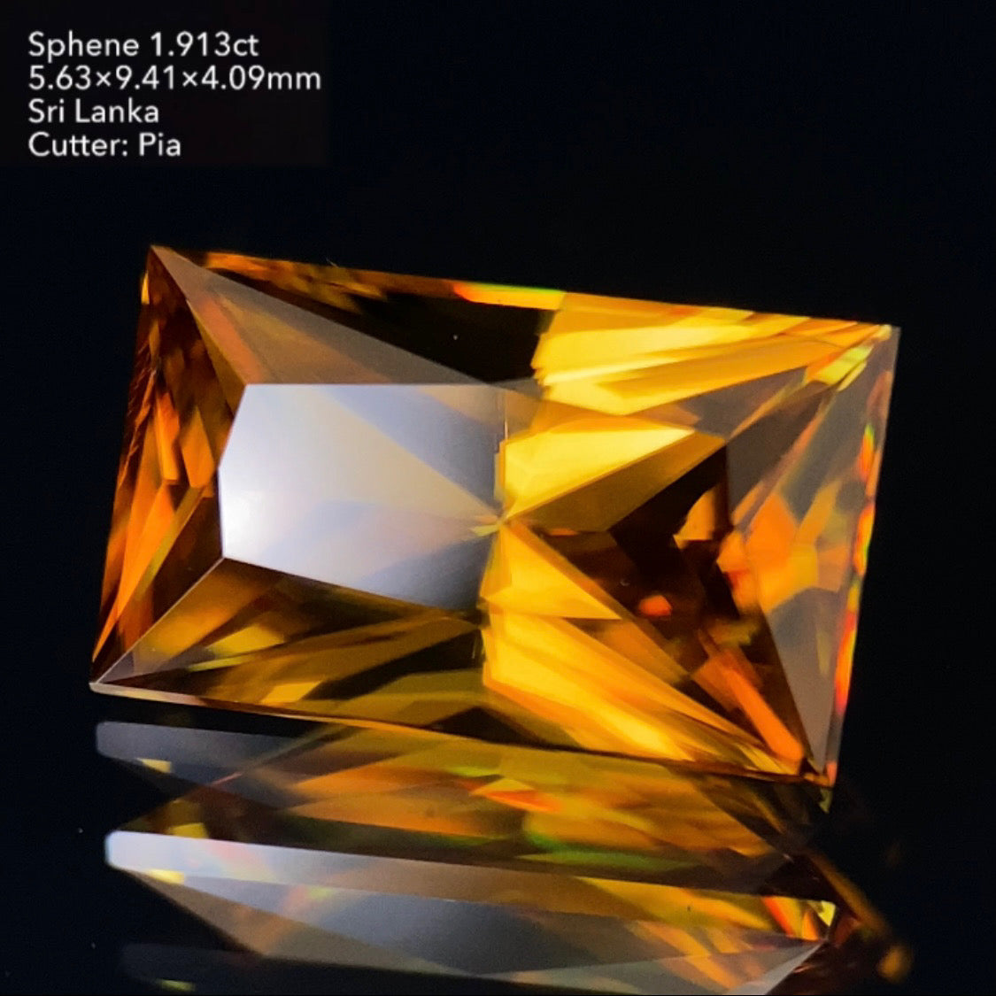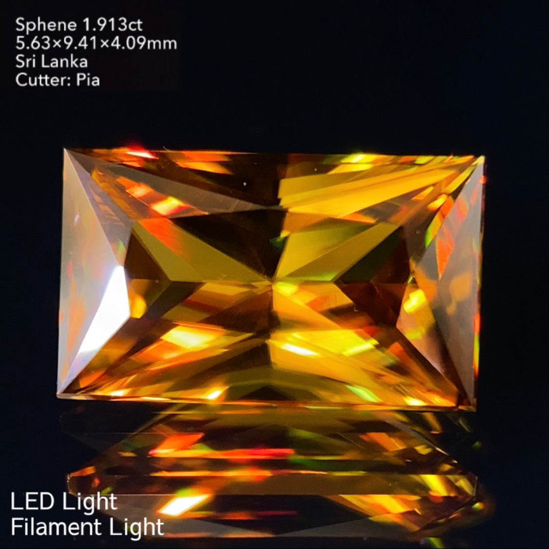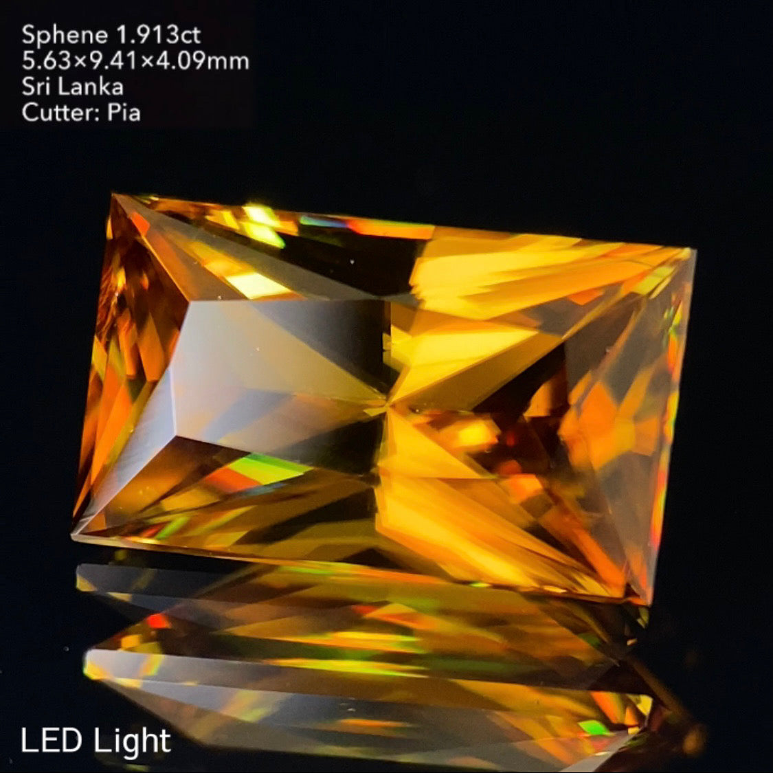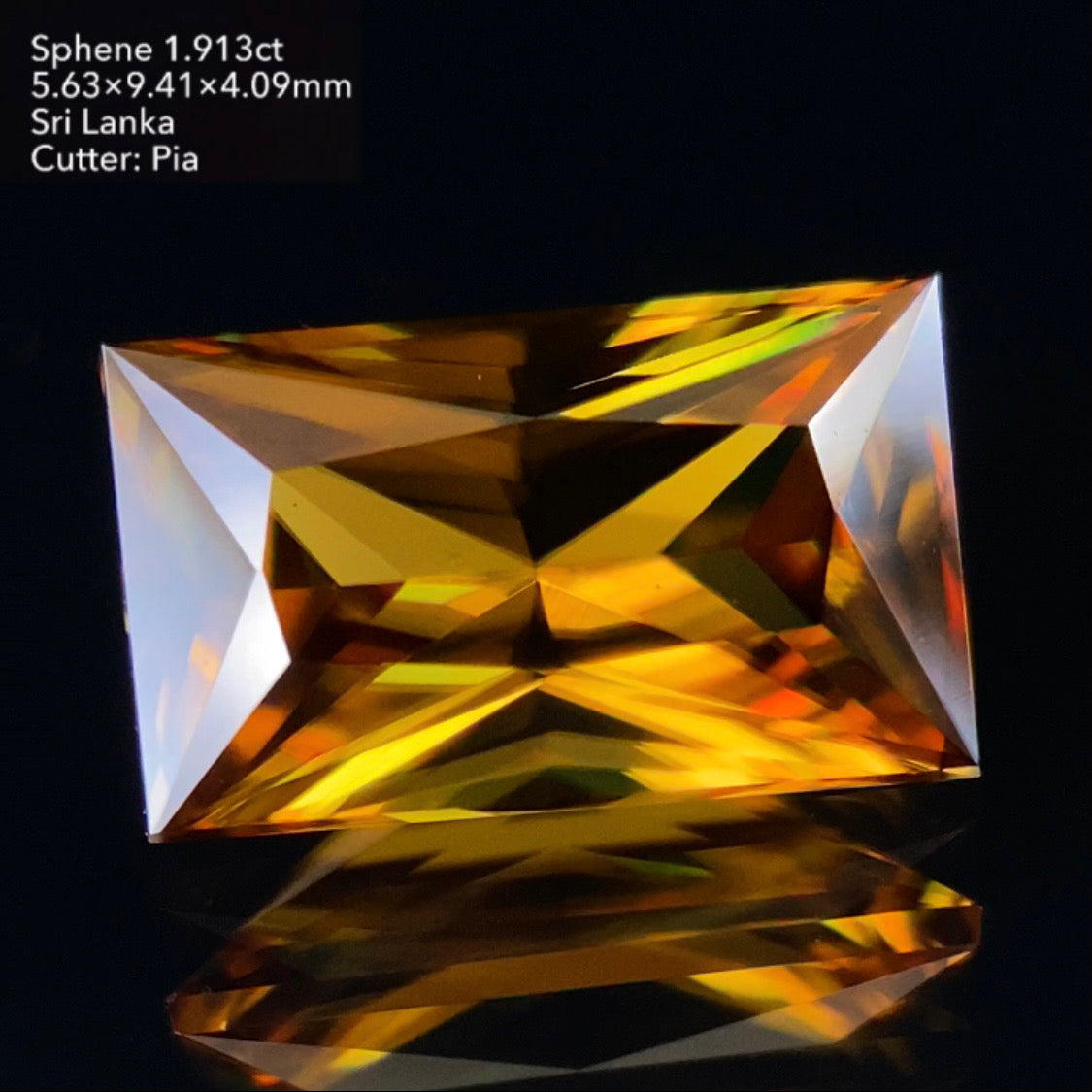 【ご落札者さま専用★1発入札オークション】鋭いカットの強い輝きに燃えるファイアーのバゲット★スフェーン1.913ct ピアッちゃん作品