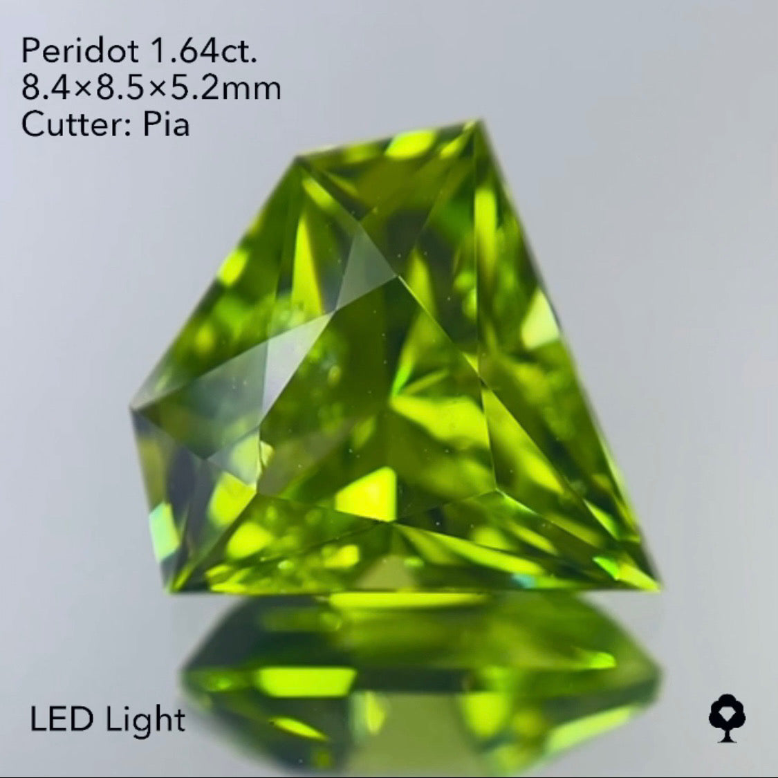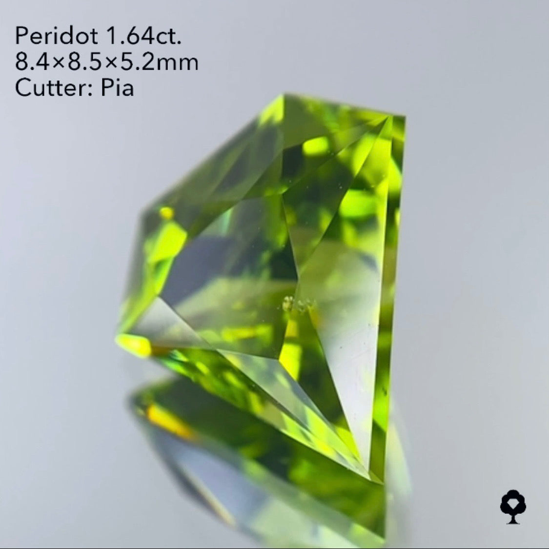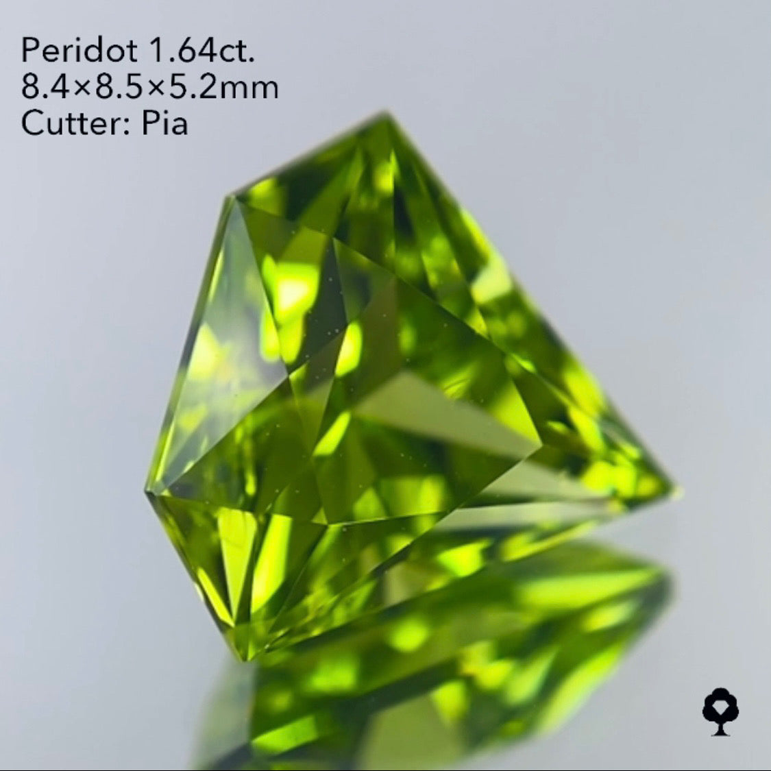 GTJメインカッターの【ピアッちゃん】が大人気の宝石型カットに仕上げた、美色グリーンのペリドットをご紹介いたします!
