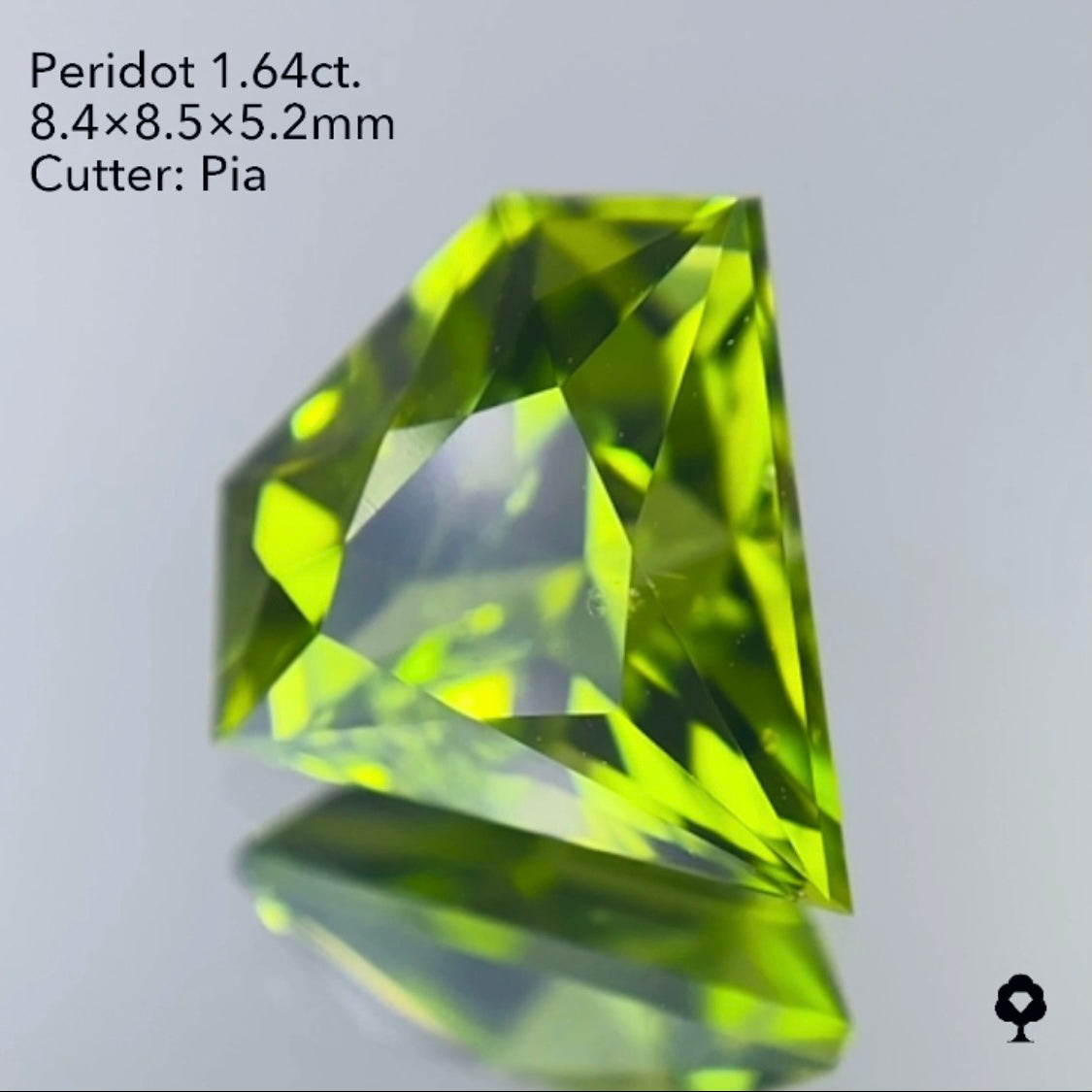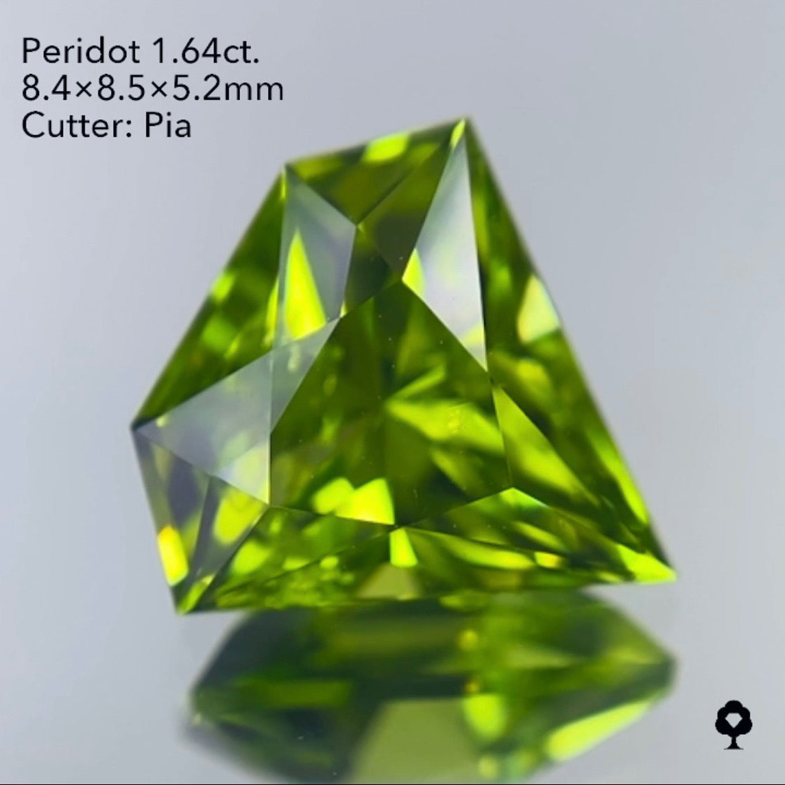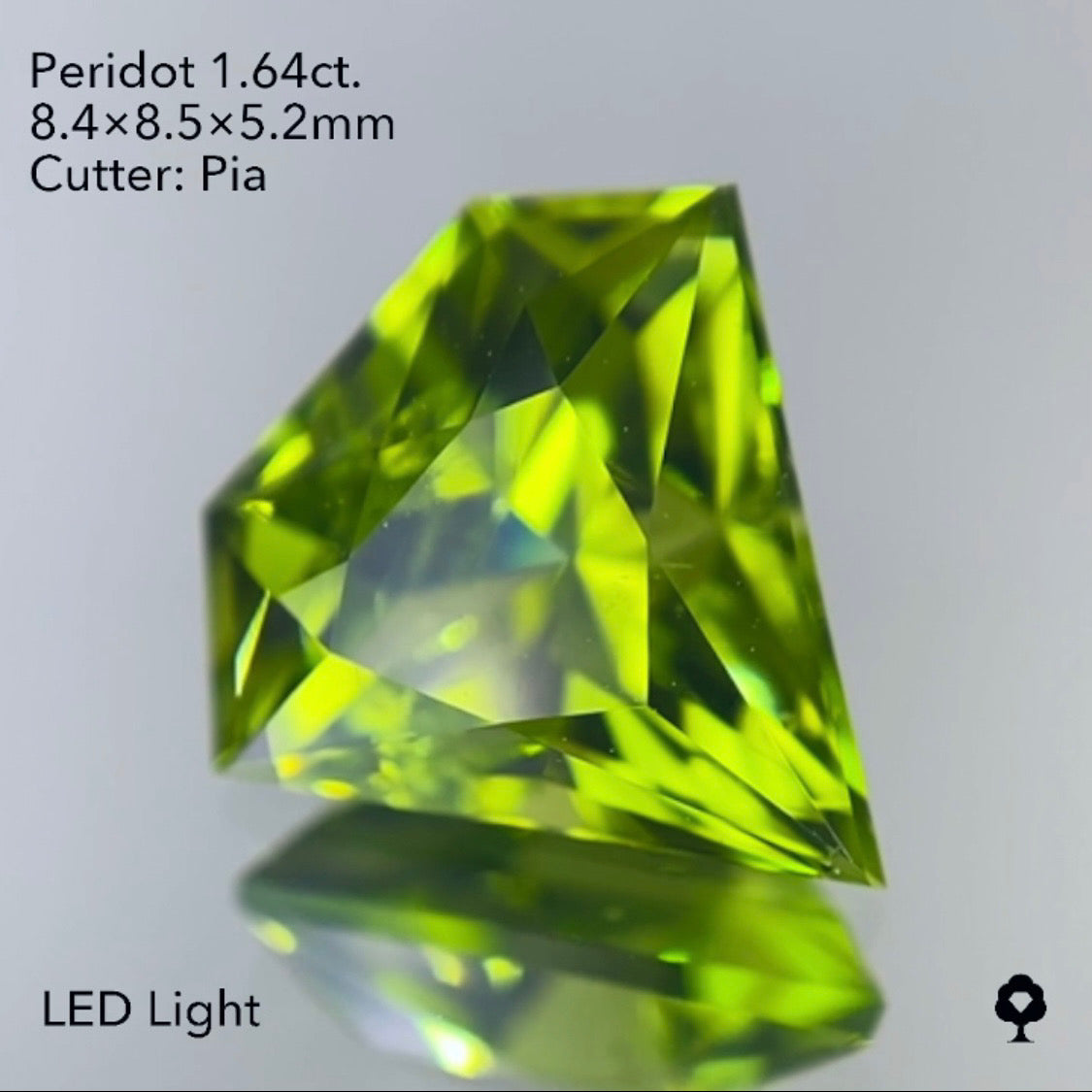 GTJメインカッターの【ピアッちゃん】が大人気の宝石型カットに仕上げた、美色グリーンのペリドットをご紹介いたします!