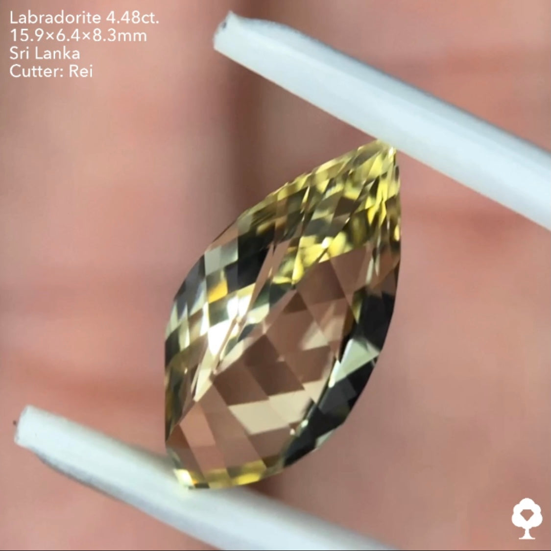 お客さま専用【このカット残り2石】全方向から美しい4面隅切りスクリューカット★ゴールデンラブラドライト4.48ct. レイちゃん作品
